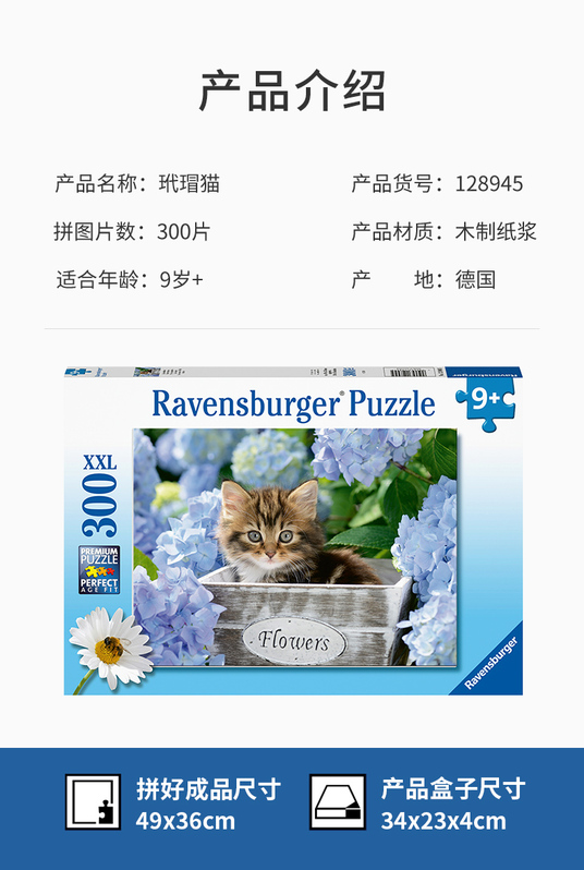 【员工内购】Ravensburger拼图睿思平面拼图300片 玳瑁猫128945