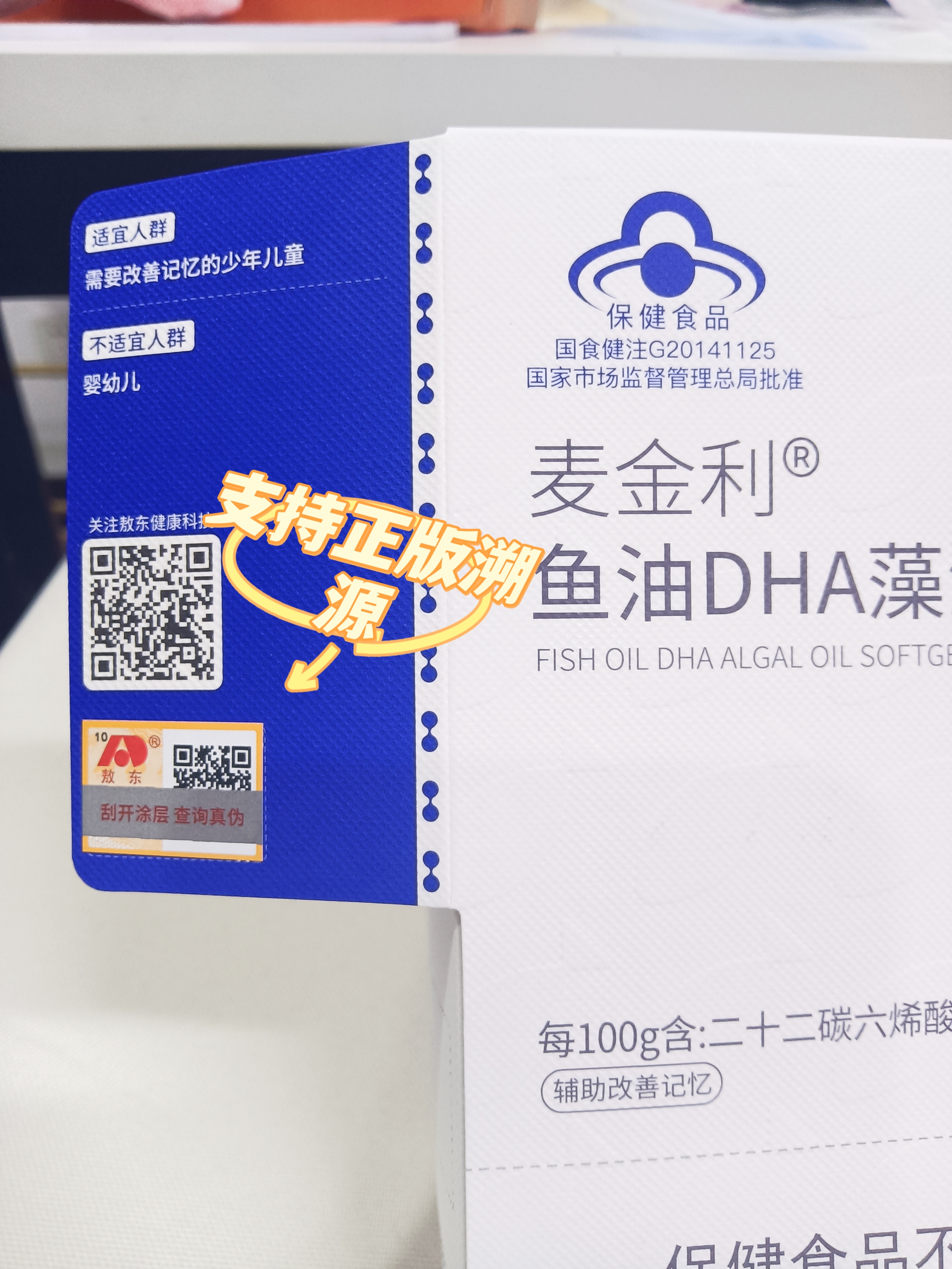 辅助改善记忆力【蓝帽认证 敖东】麦利金 鱼油DHA藻油软胶囊 62粒/盒 有效辅助改善记忆力!脑黄金DHA,被全世界180+国家认定为儿童“必备营养”