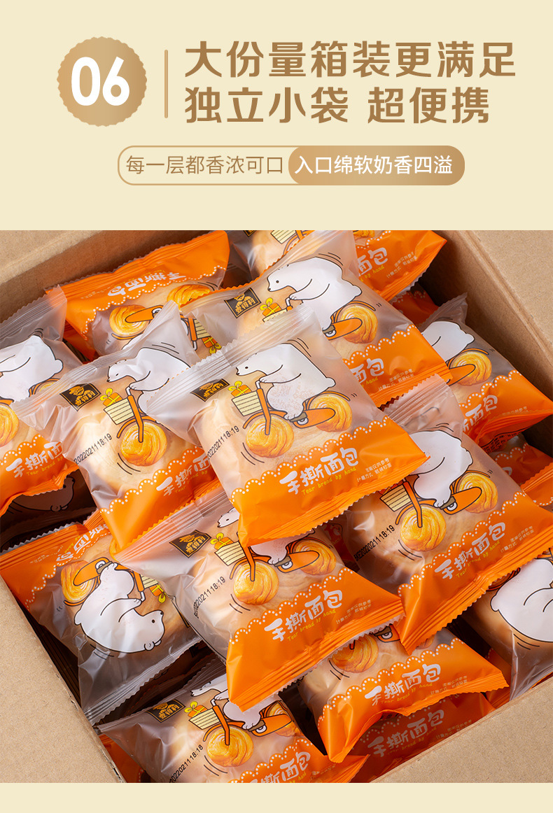 【秒杀❗️9.9抢整箱🔥奶香手撕面包】入口绵软,奶香四溢,营养健康代餐早网红学生零食吐司欧包蛋糕点食品开学季
