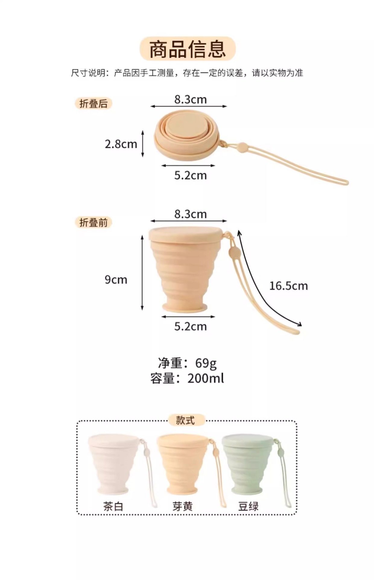杯食品级杯子露营漱口便携式硅胶旅行水杯压缩随行折叠户外牙杯