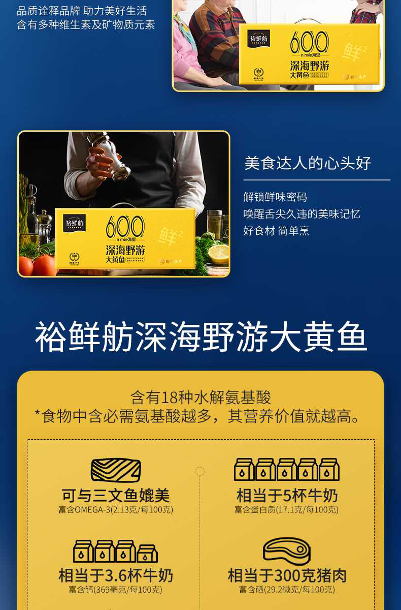 裕鲜舫 600海里大黄鱼礼盒 大黄鱼原条500g*2条礼盒 1kg