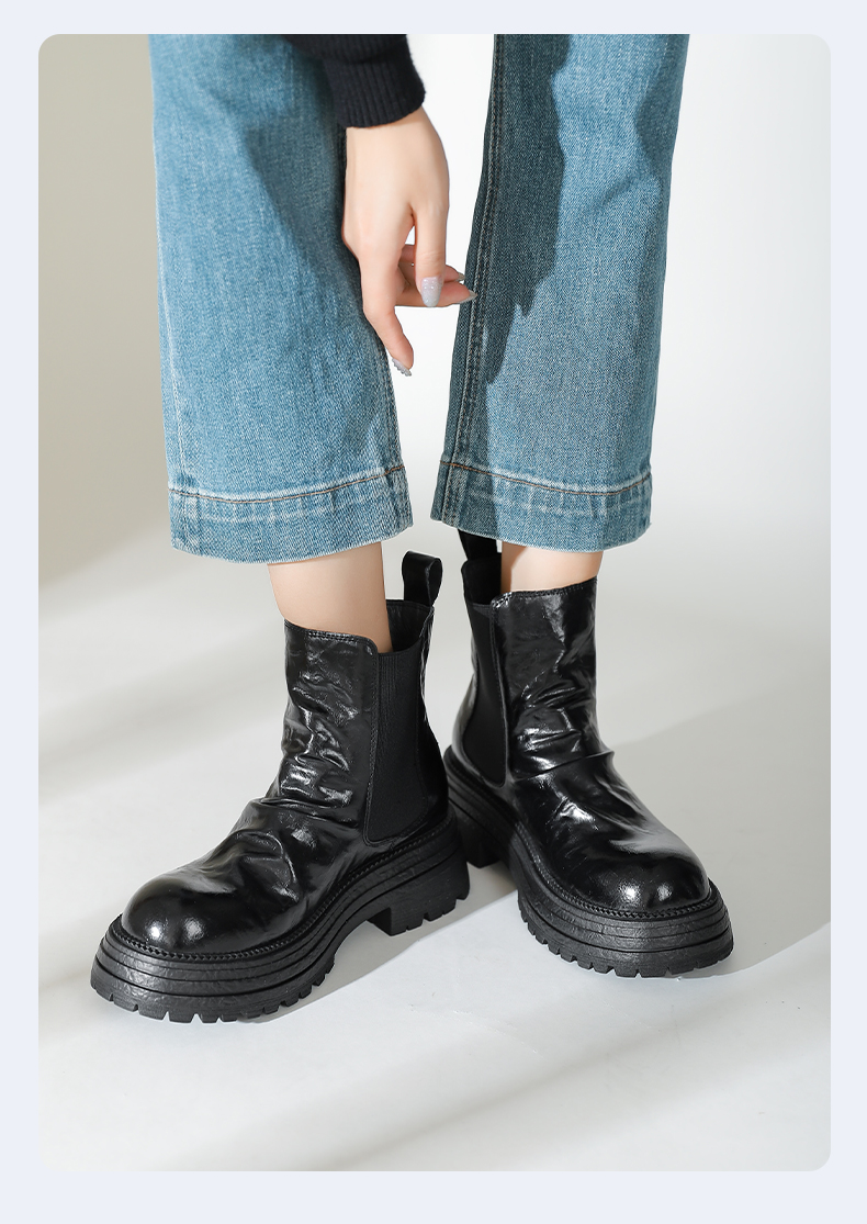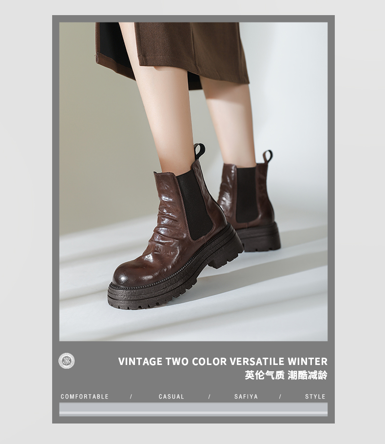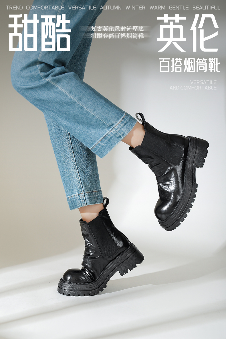 Safiya/索菲娅2024秋冬复古英伦风时尚厚底粗跟套筒百搭烟筒靴 SF44116409