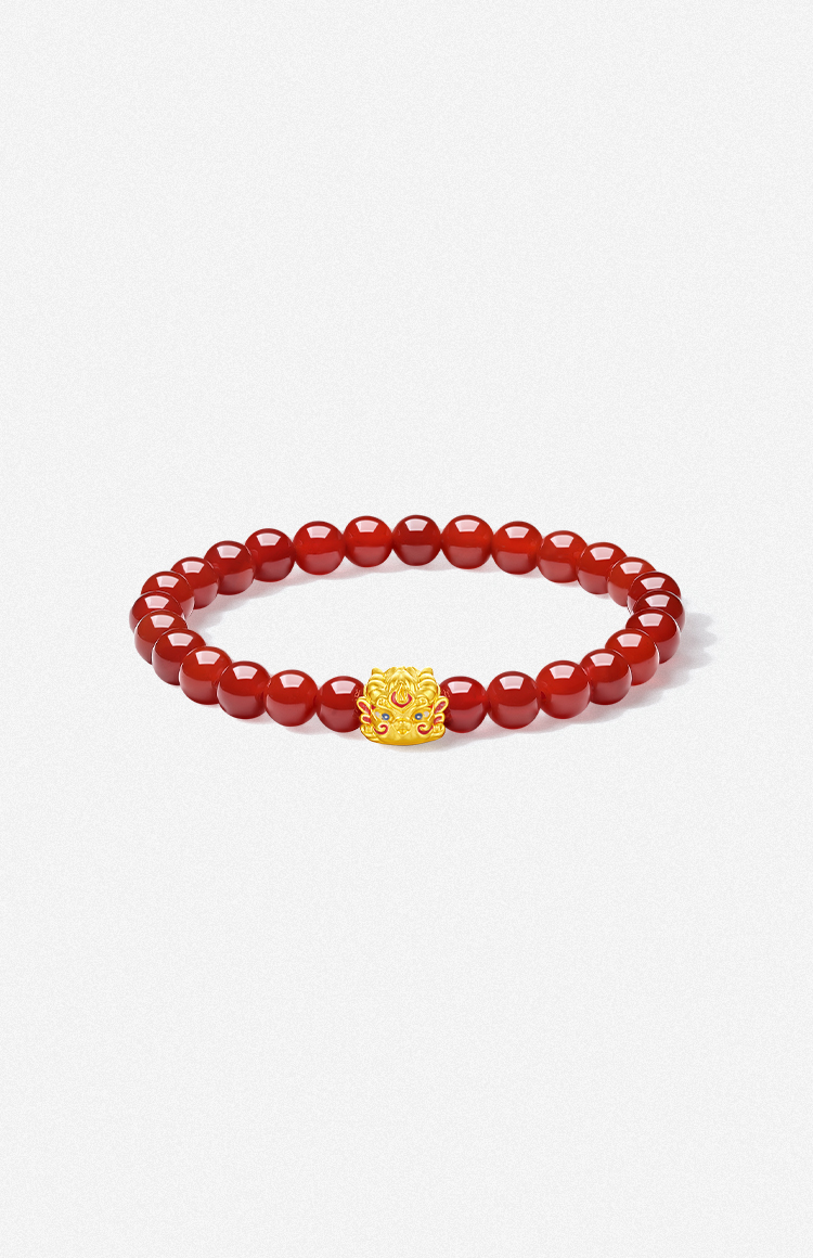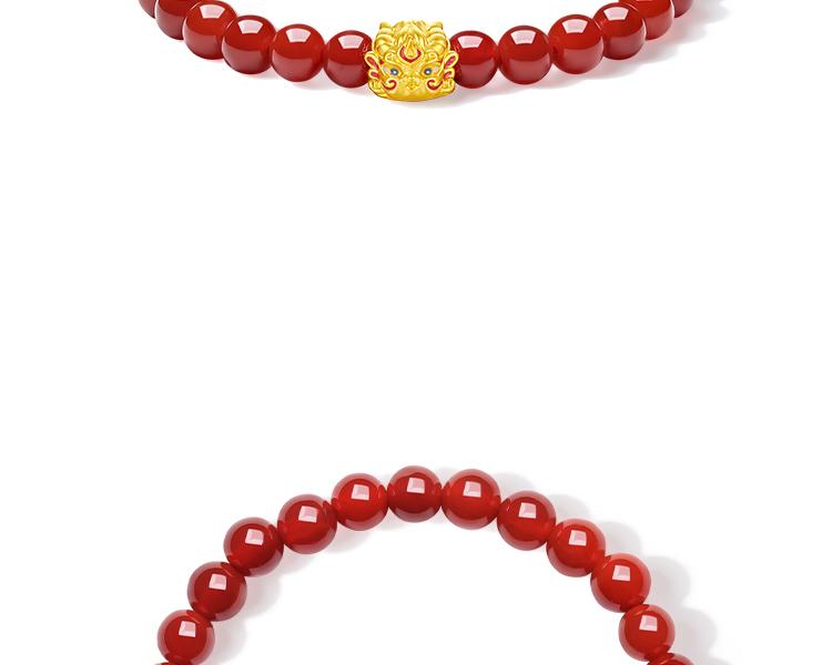 周六福黄金手串女款5d硬金红玛瑙珐琅貔貅招财春节礼物