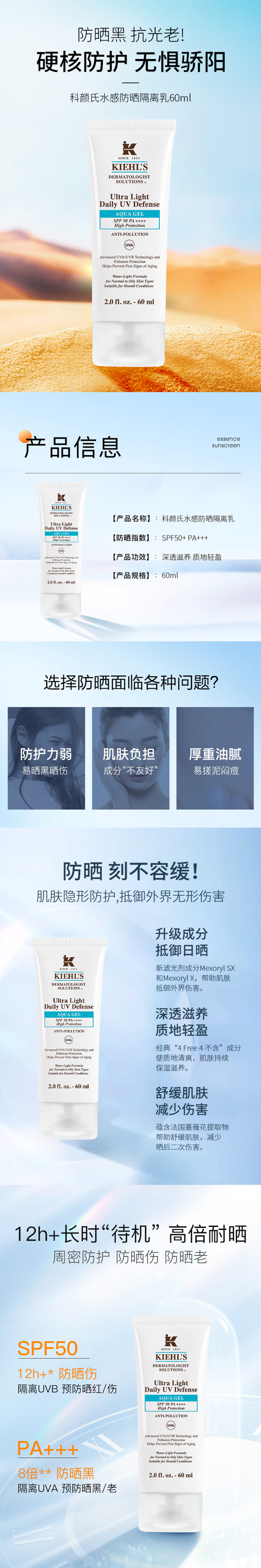 科颜氏清爽水感防晒隔离乳60ml
