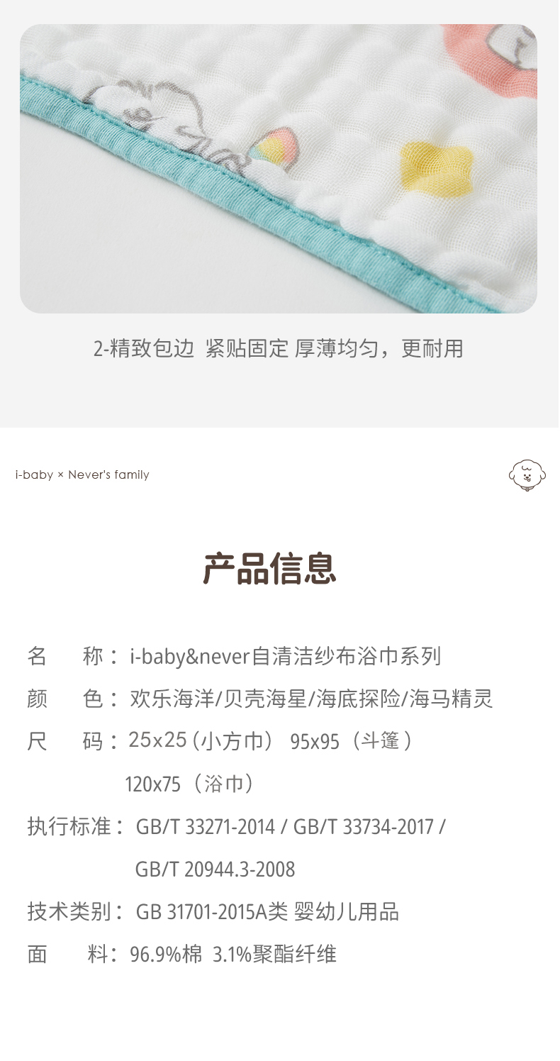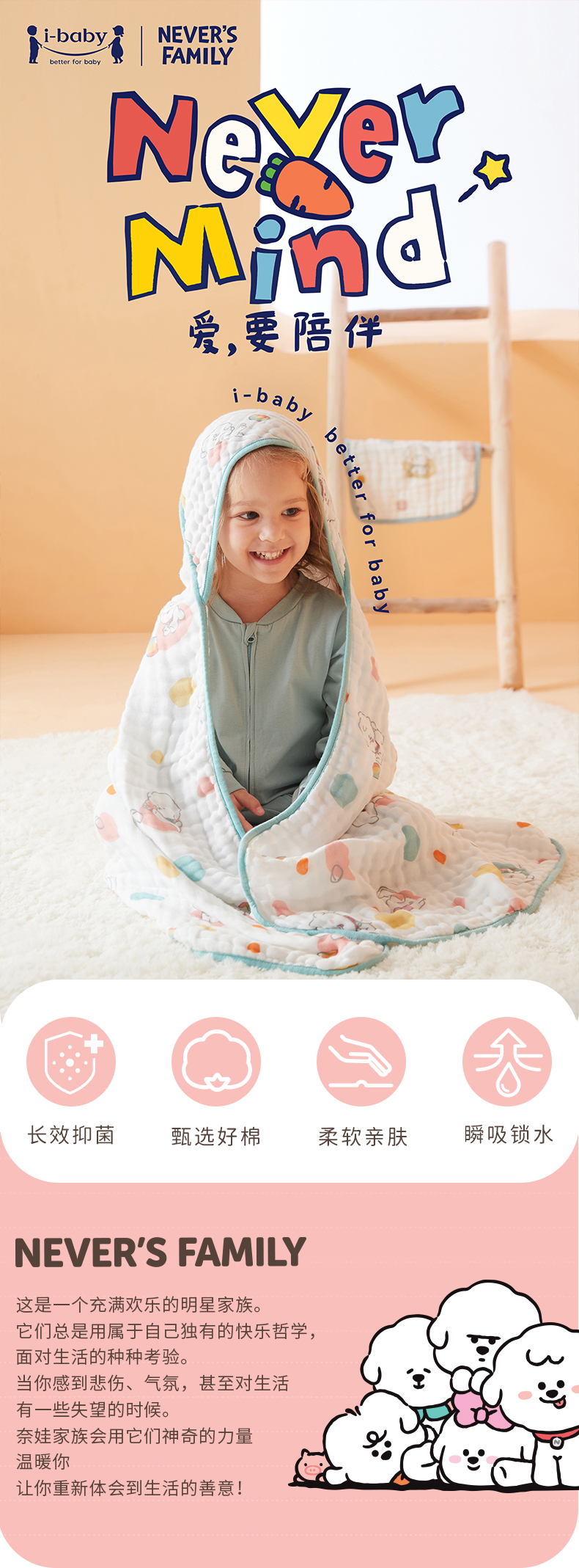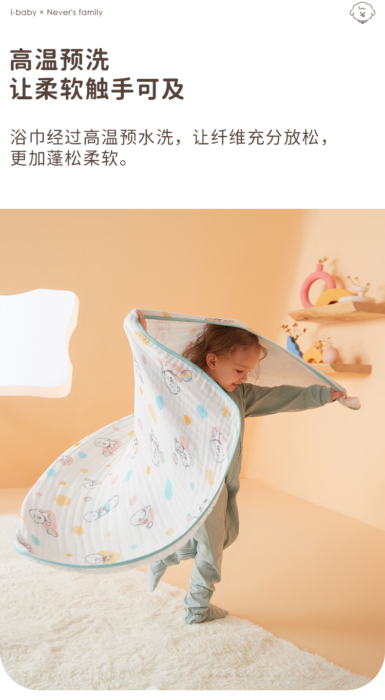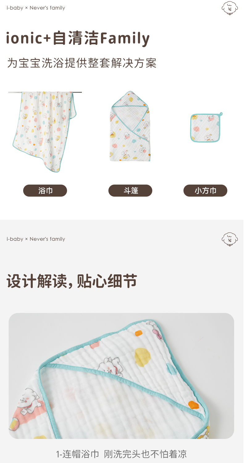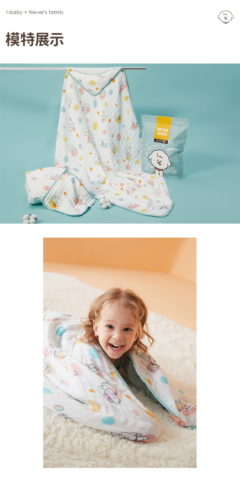 【秒杀39元】i-baby&奈娃联名ip宝宝纱布浴巾新生儿厚款棉纱布斗篷浴袍非质量问题不退不换