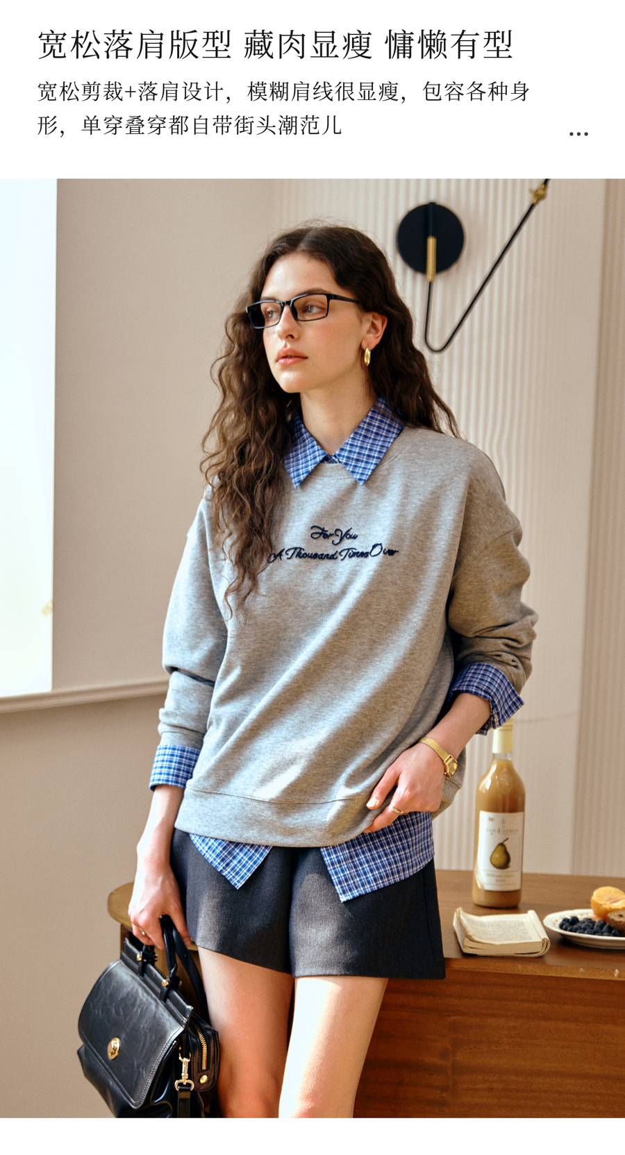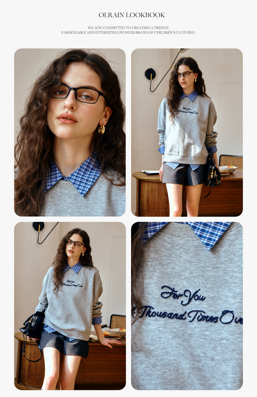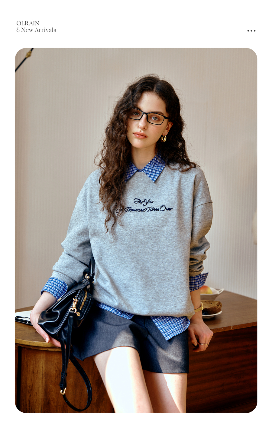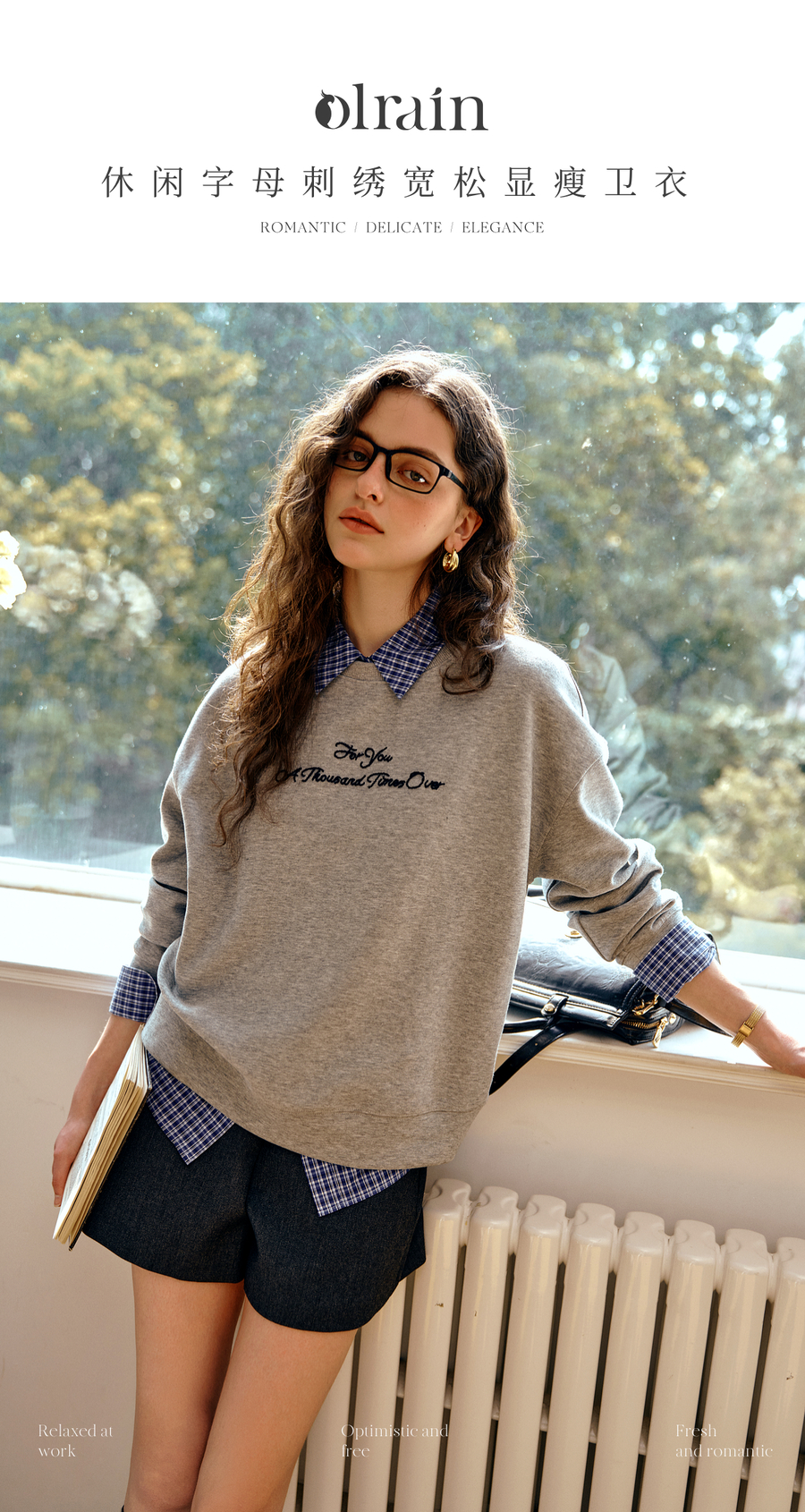 OLrain欧芮儿休闲字母刺绣宽松显瘦卫衣女秋季2025新款圆领上衣