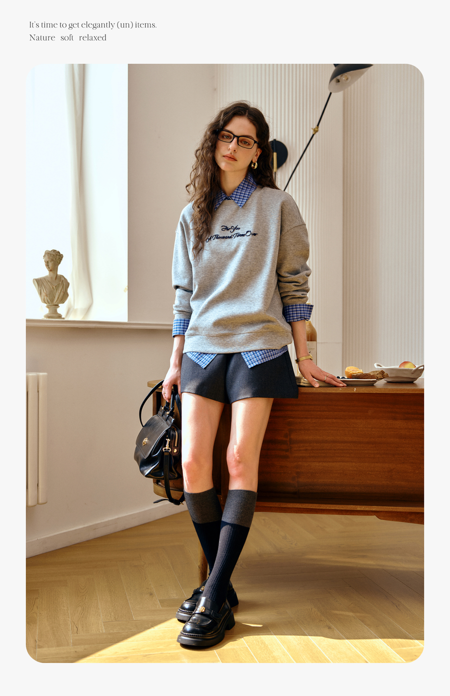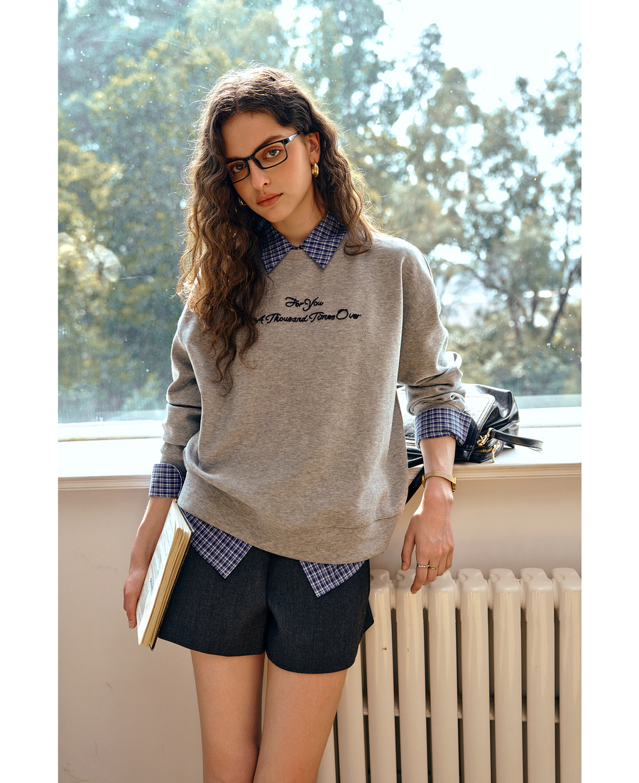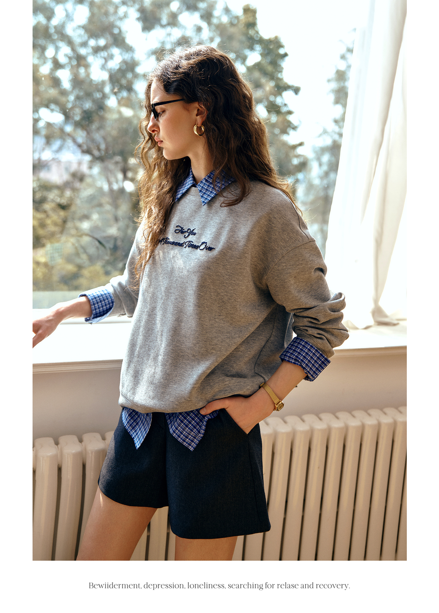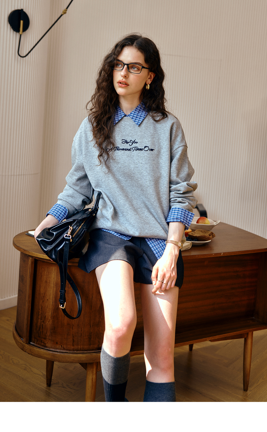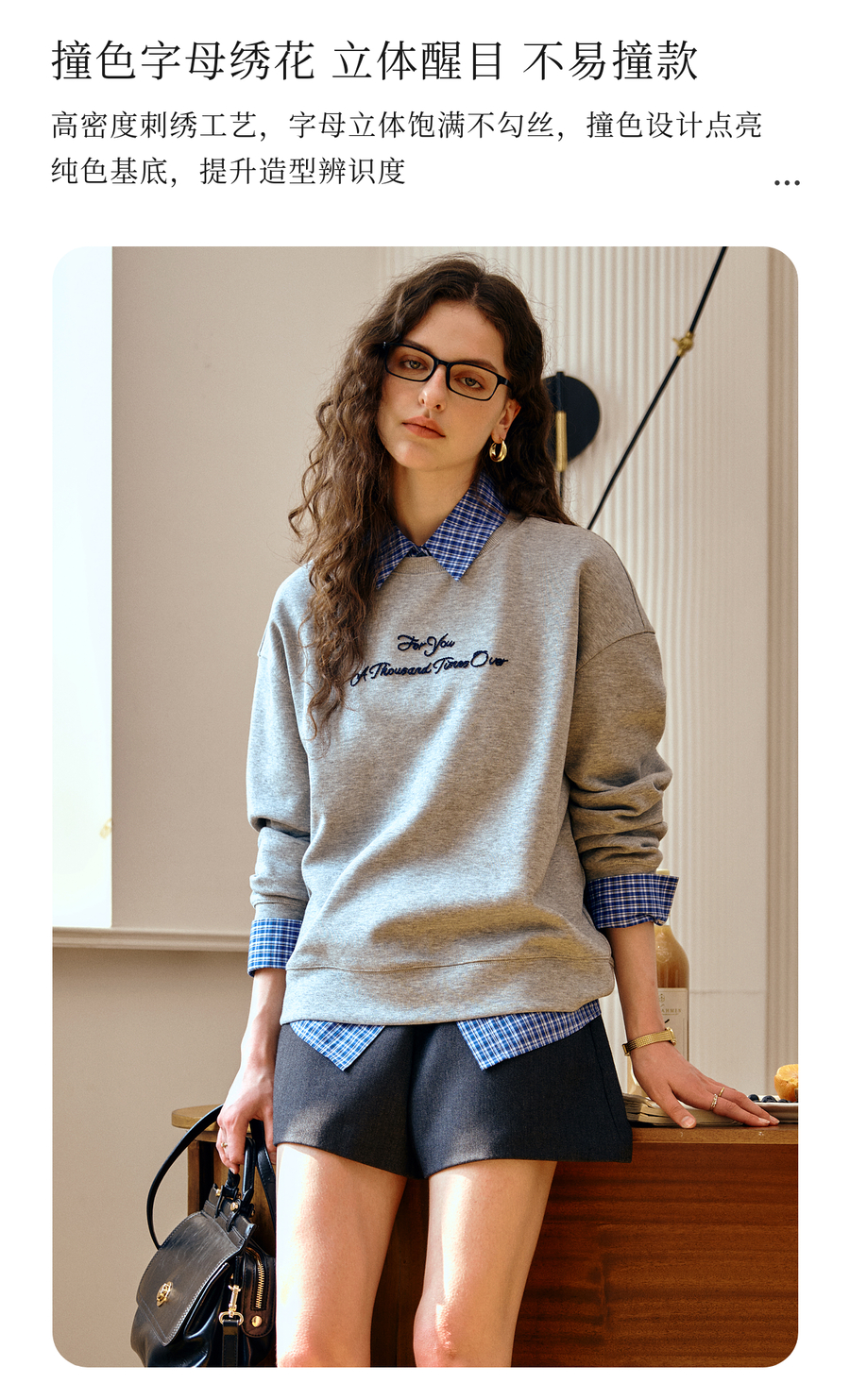 OLrain欧芮儿休闲字母刺绣宽松显瘦卫衣女秋季2025新款圆领上衣