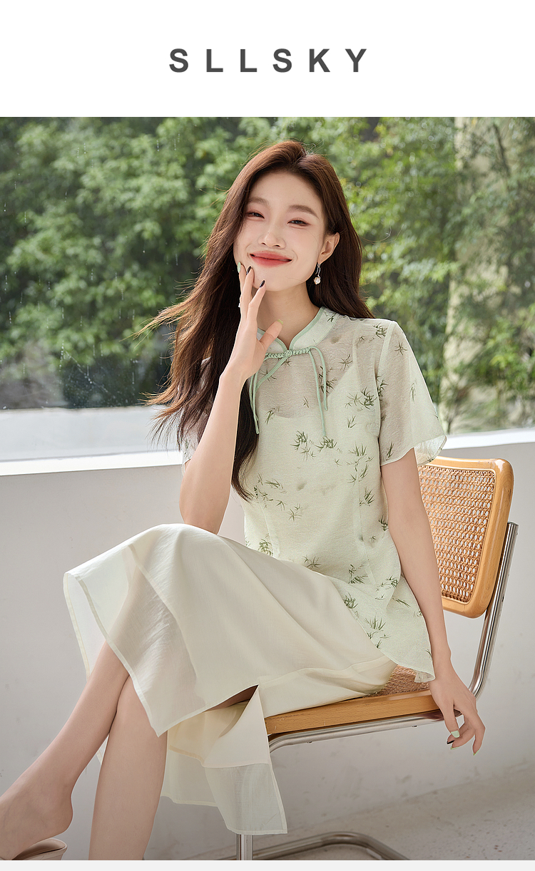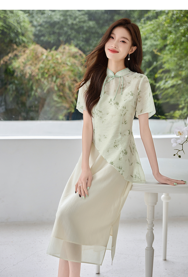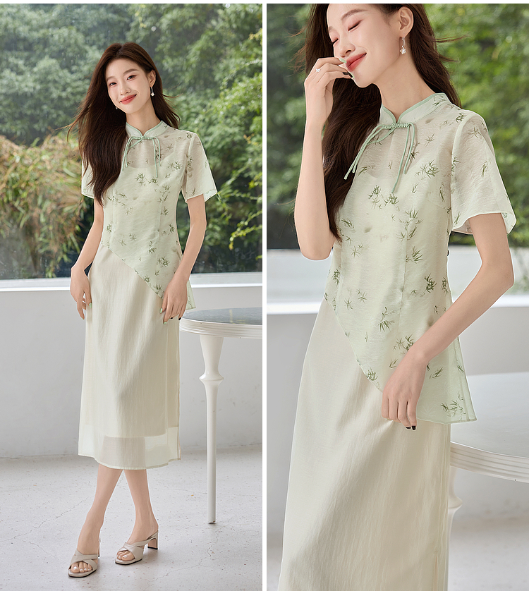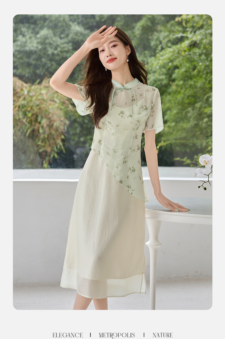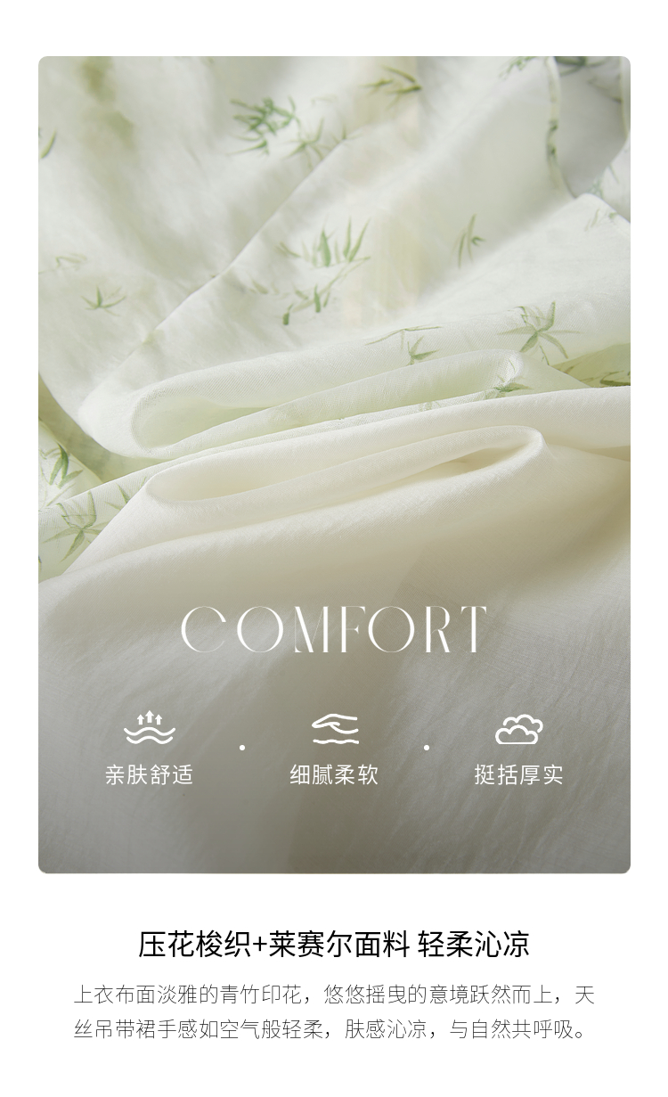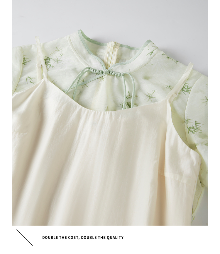 【专属特价】熙世界新中式天丝连衣裙套装夏季盘扣印花上衣吊带裙国风两件套