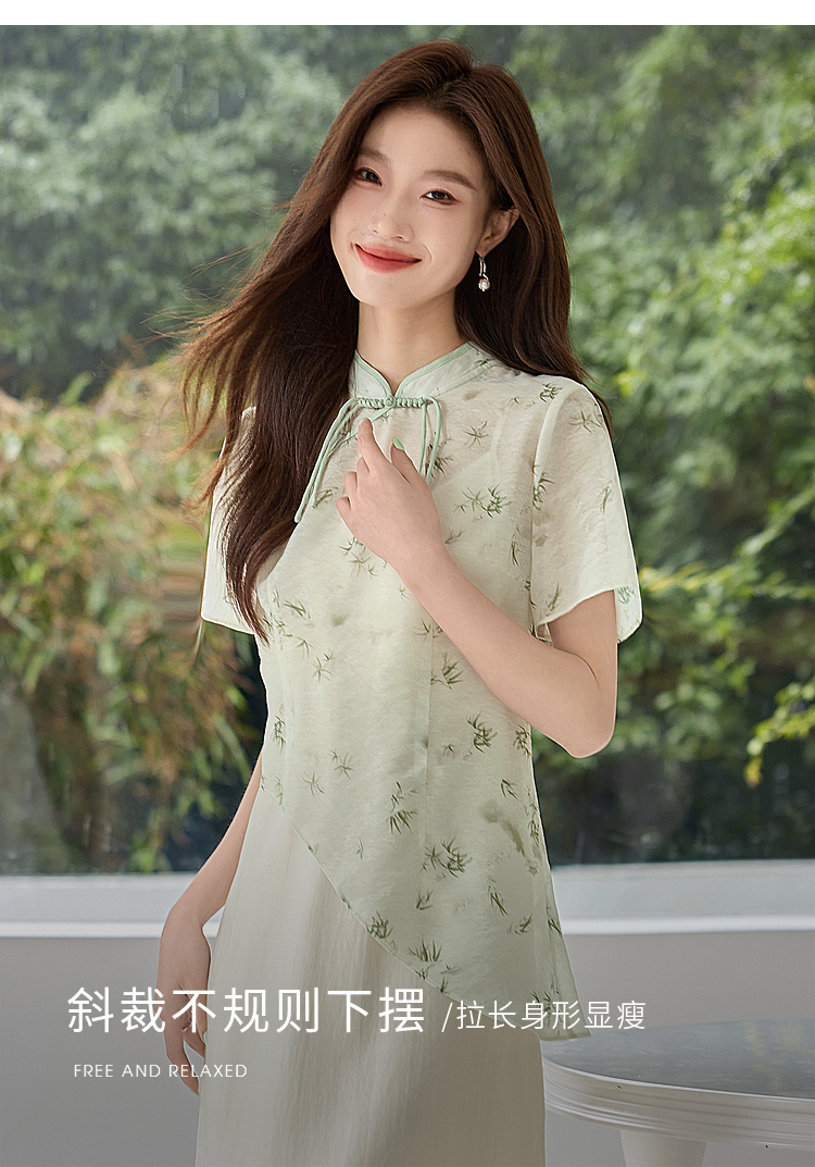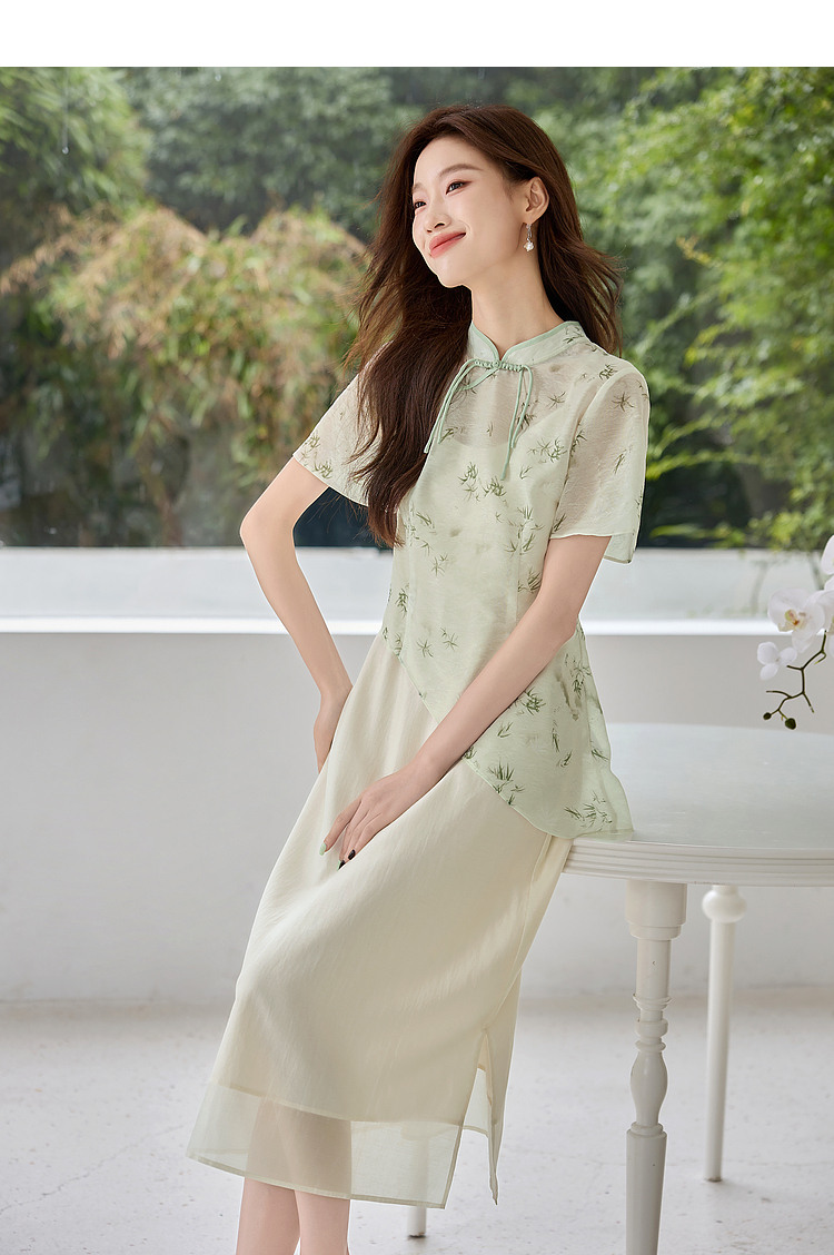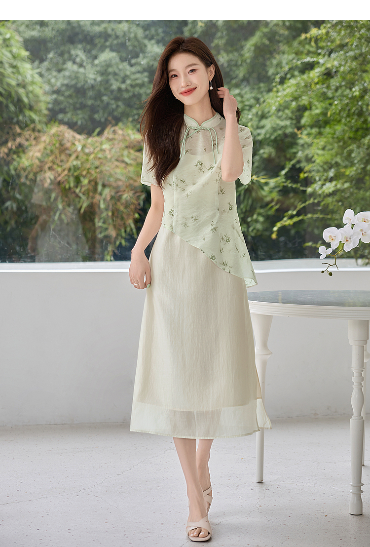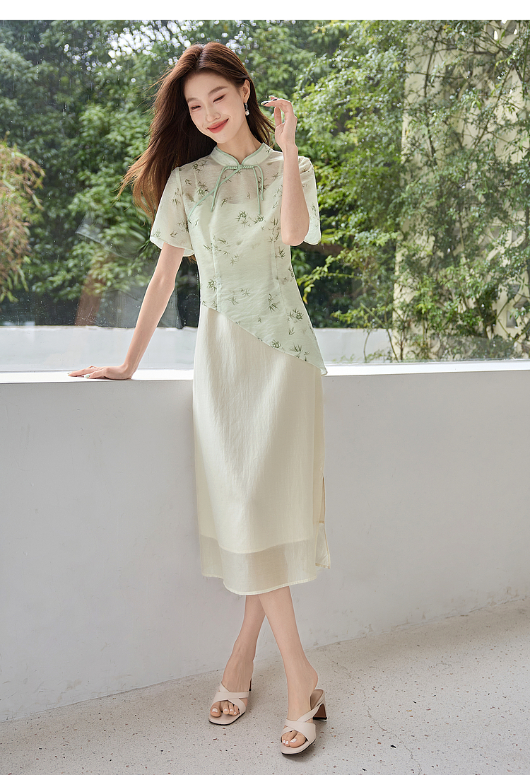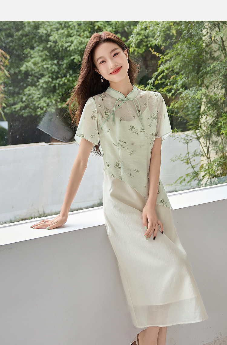 【专属特价】熙世界新中式天丝连衣裙套装夏季盘扣印花上衣吊带裙国风两件套