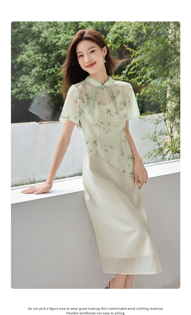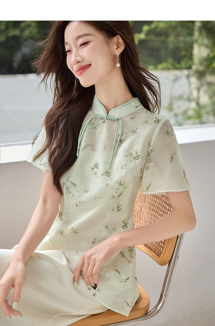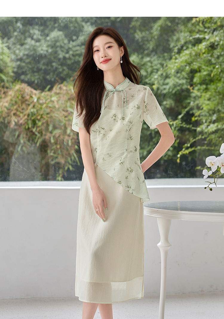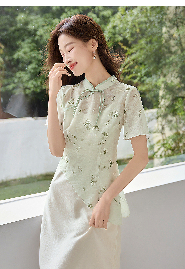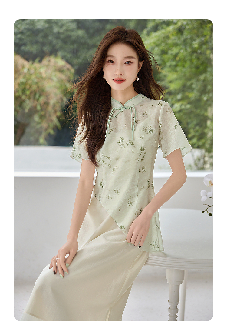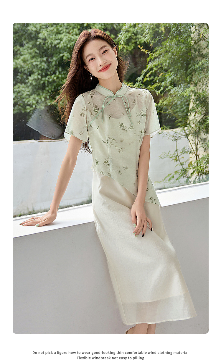 【专属特价】熙世界新中式天丝连衣裙套装夏季盘扣印花上衣吊带裙国风两件套