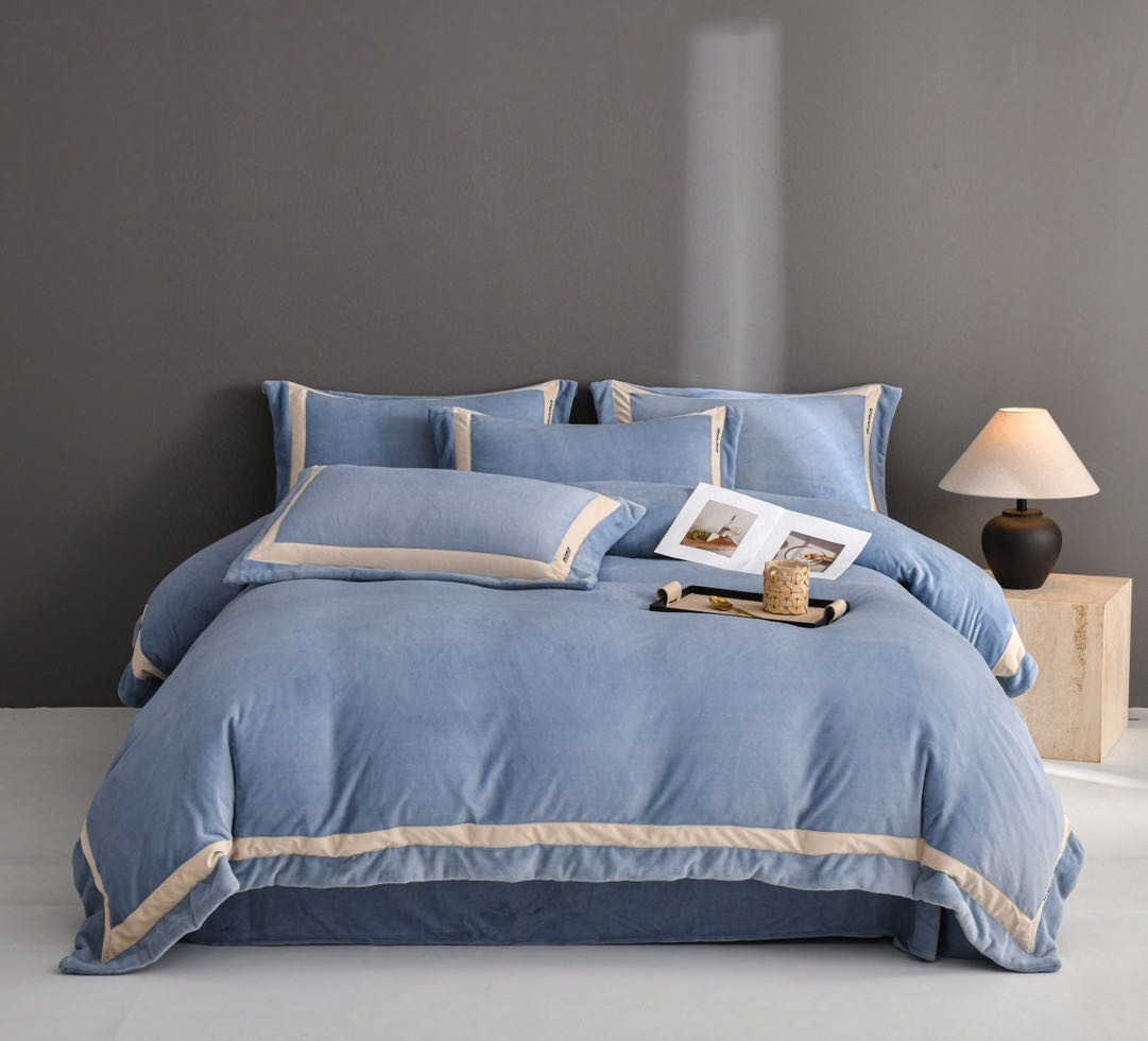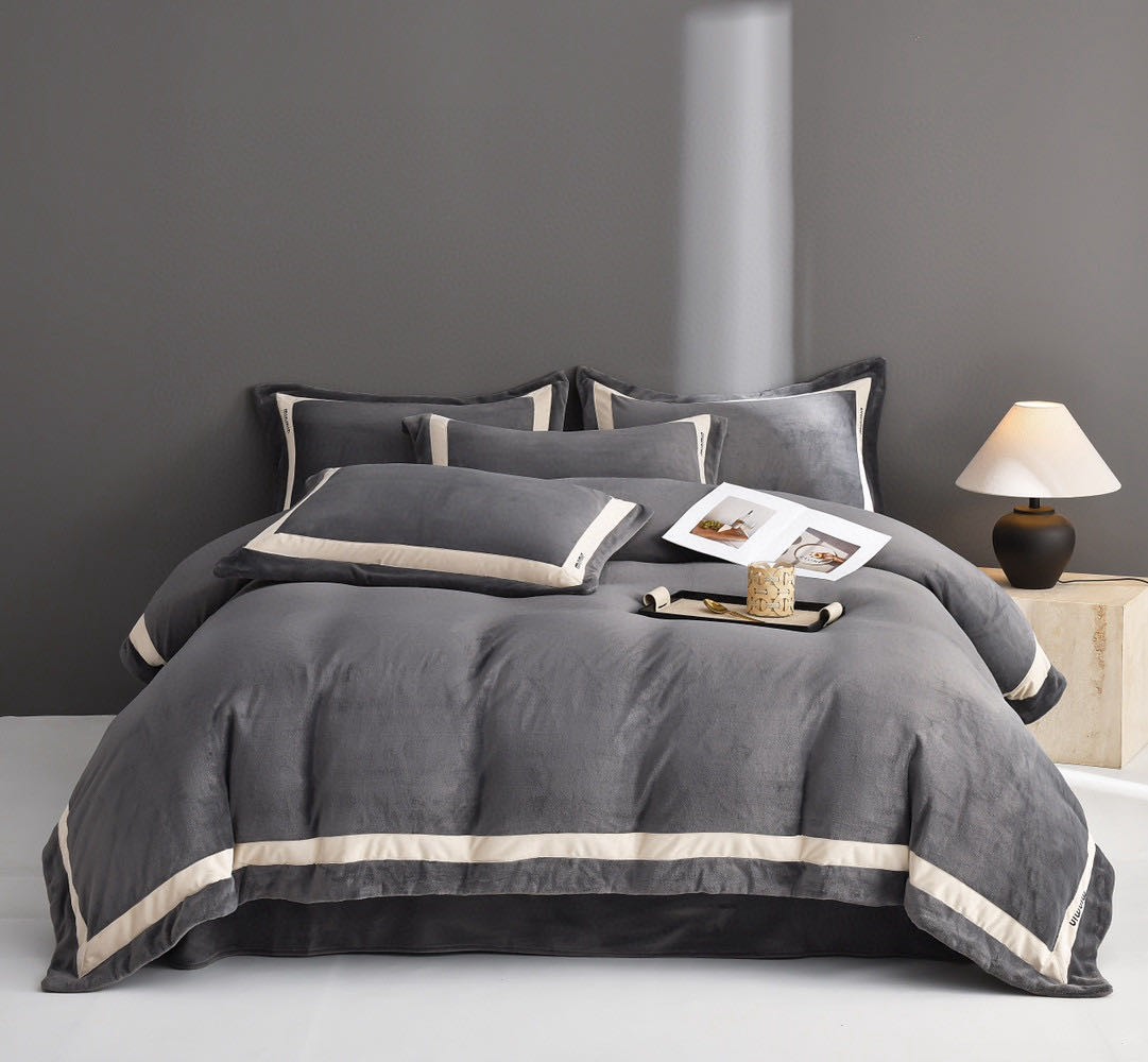 简约minmin牛奶绒刺绣四件套