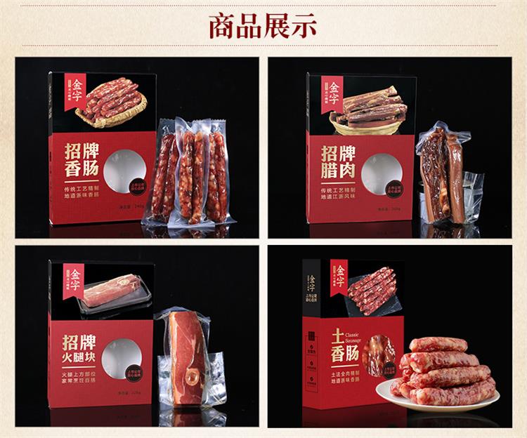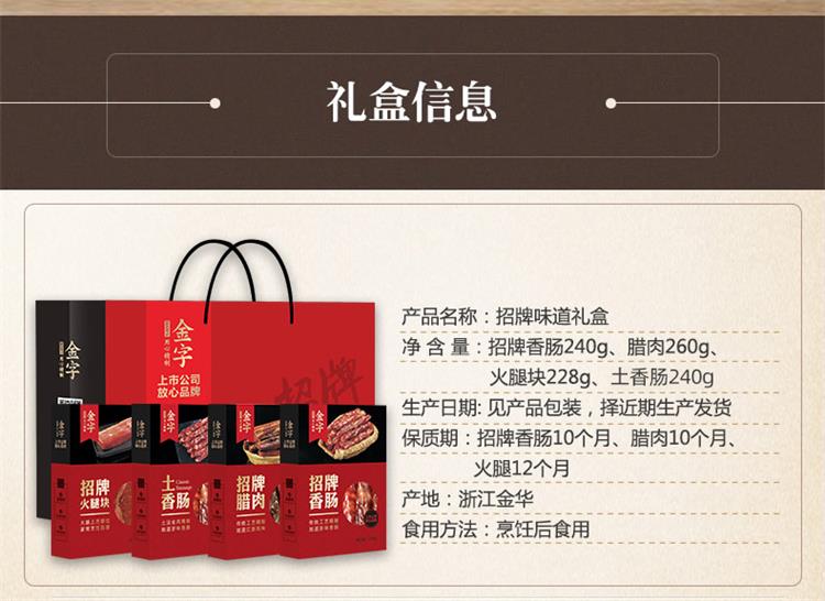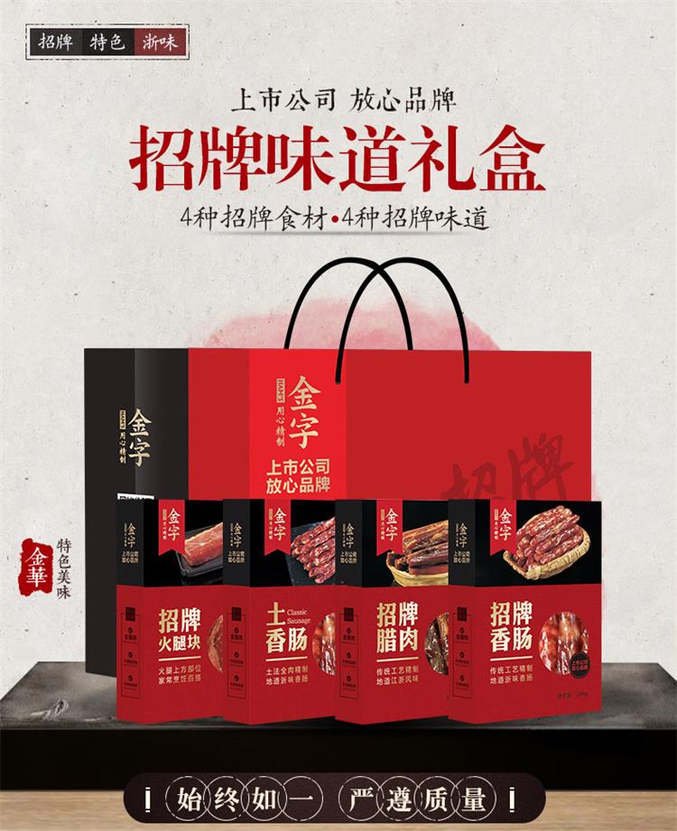 金字招牌味道浙江特产火腿香肠腊肉腊味礼盒 4盒装配礼袋