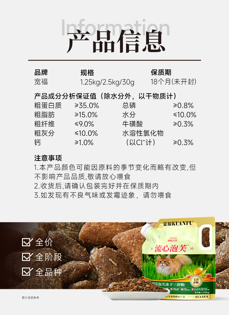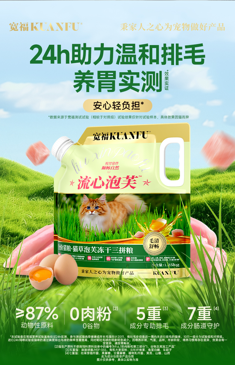 【仅限3天 第2件0元】猫草泡芙冻干三拼猫粮 5重黄金美毛配比 7重肠道守护 帮助促进猫咪化毛排毛 角蛋白酶酶解毛发 助力降低毛球滞留风险