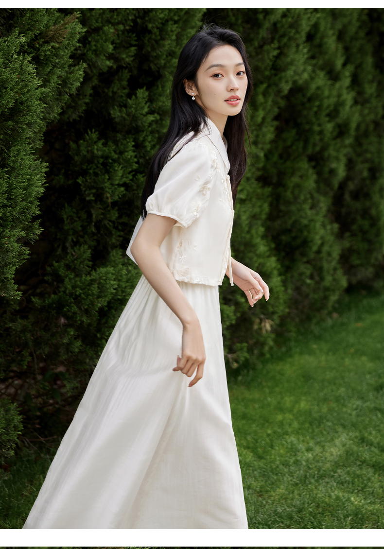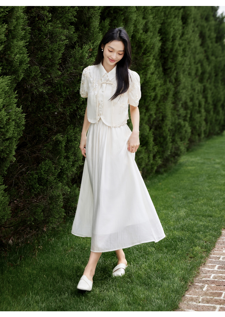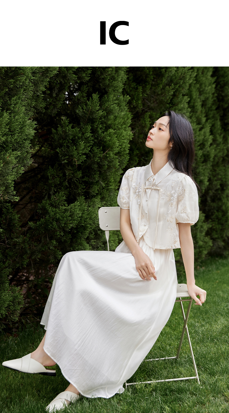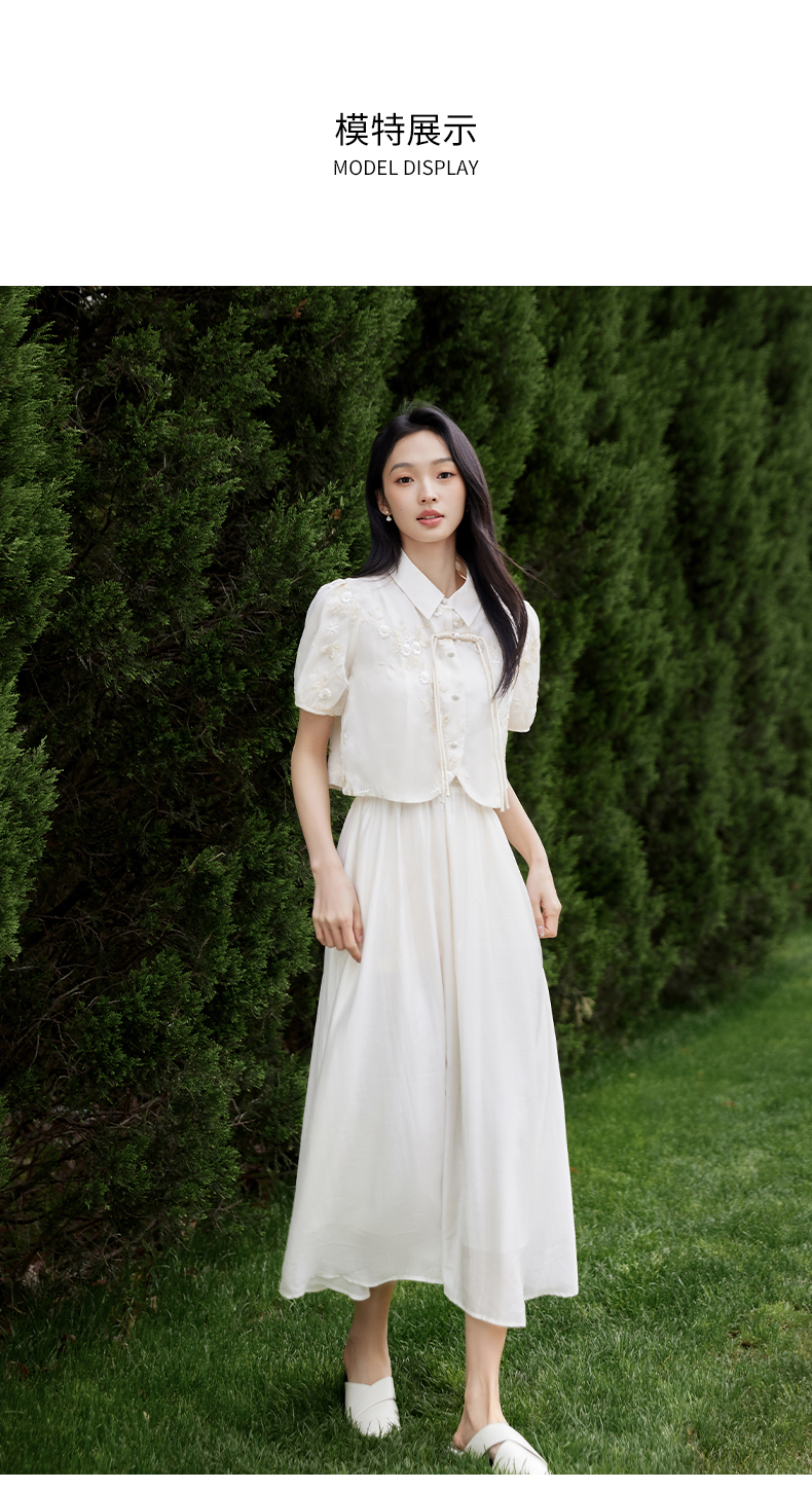 *IC新中式国风盘扣两件套连衣裙短袖t恤女中长款半身裙休闲套装