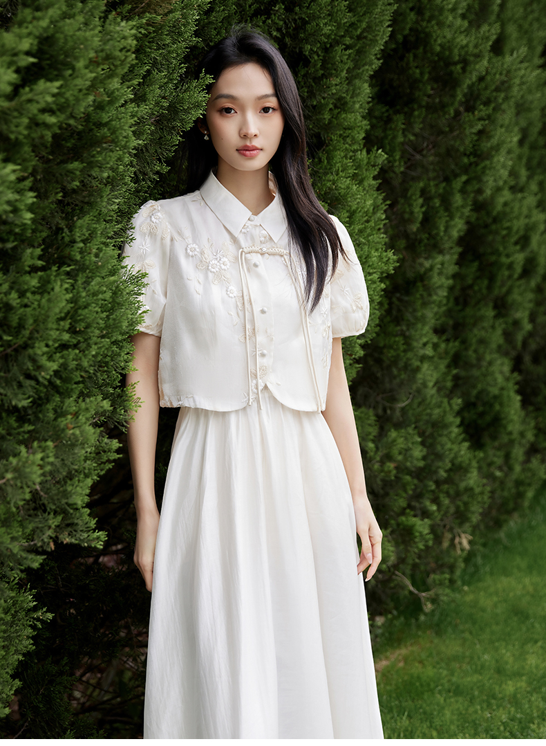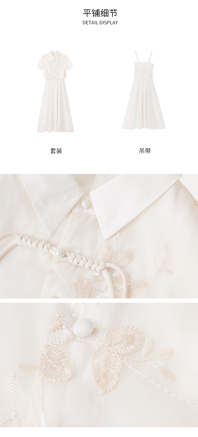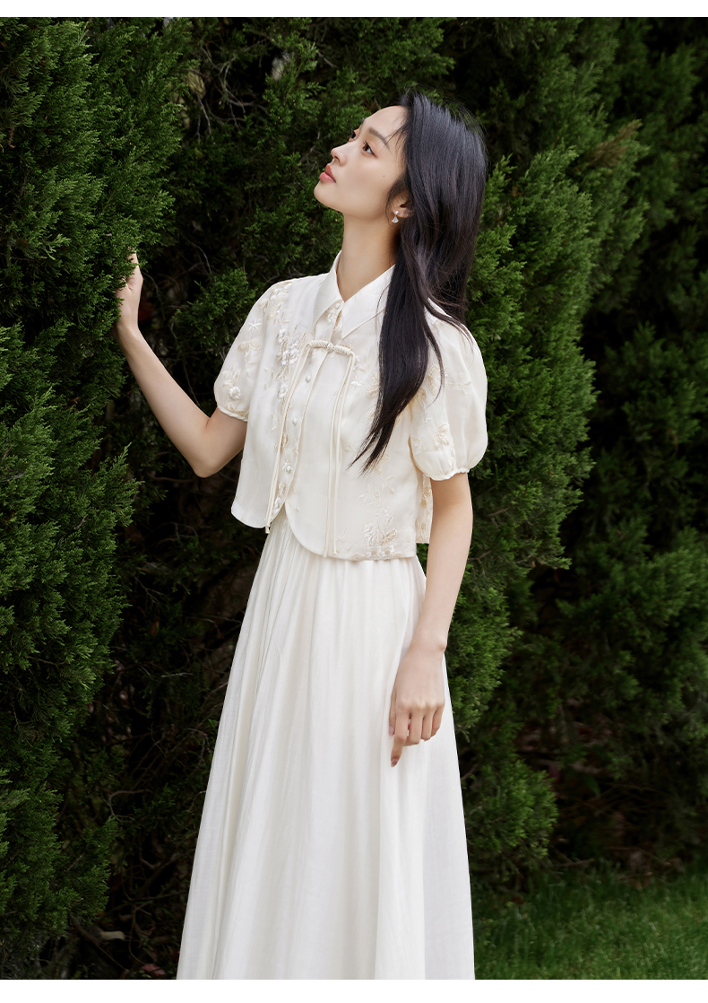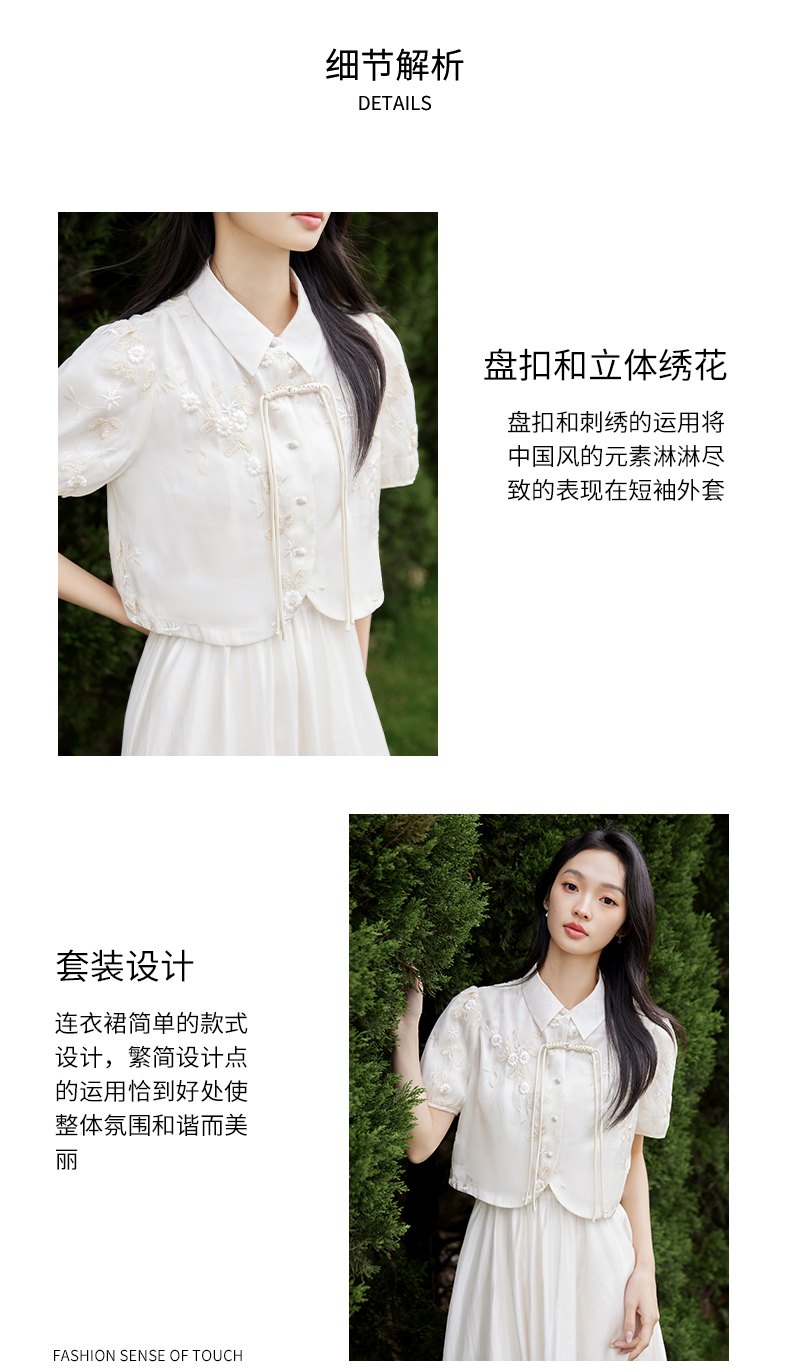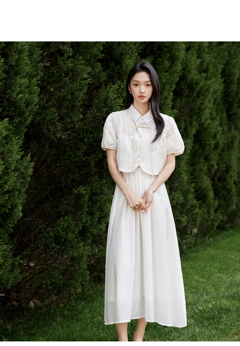 *IC新中式国风盘扣两件套连衣裙短袖t恤女中长款半身裙休闲套装