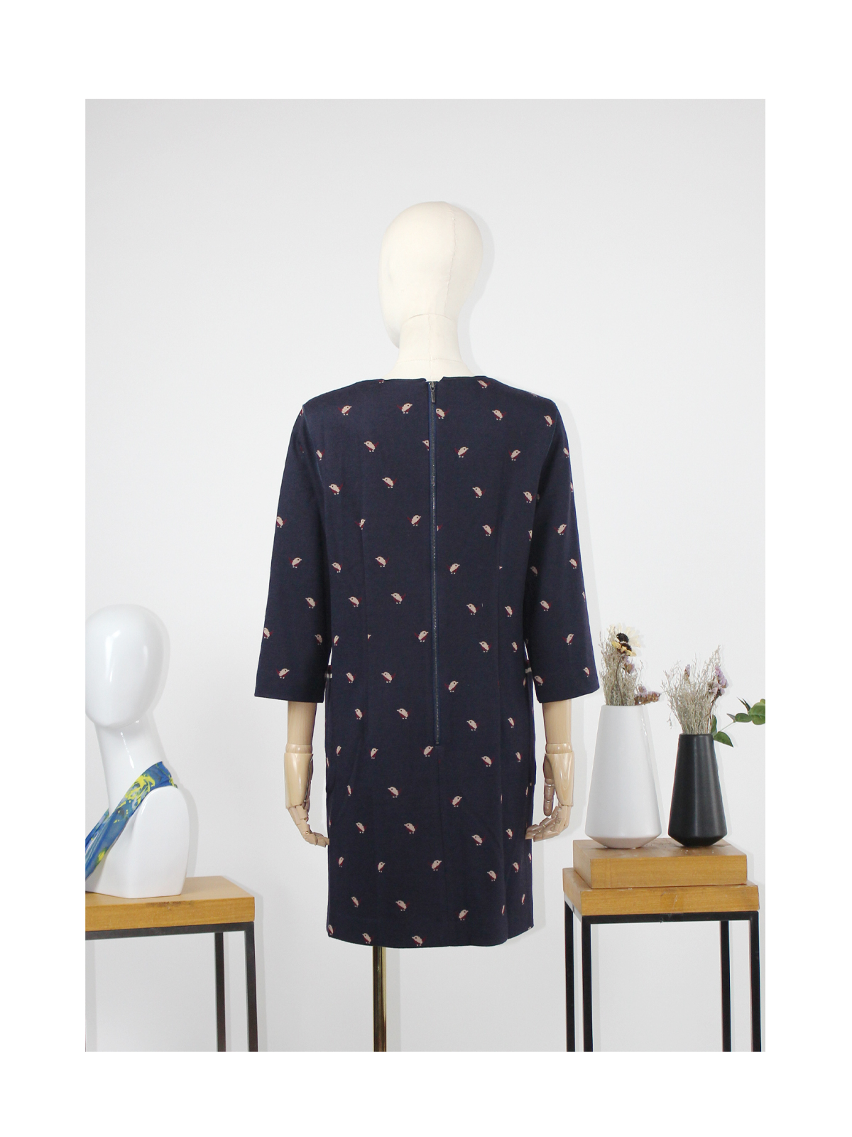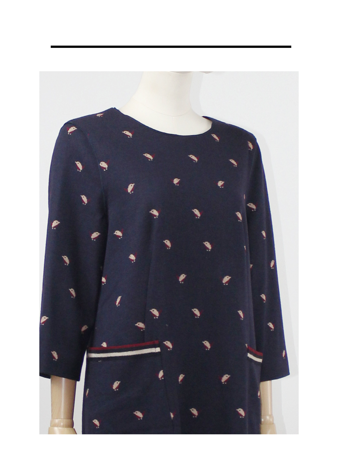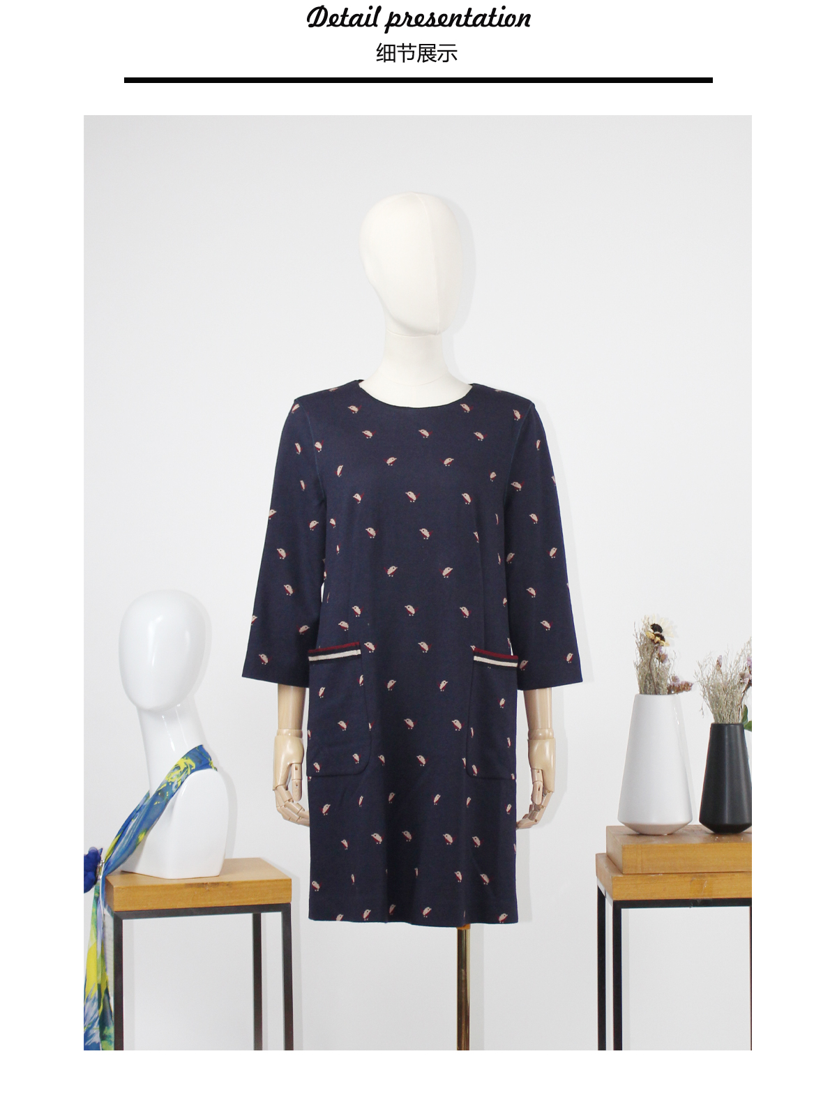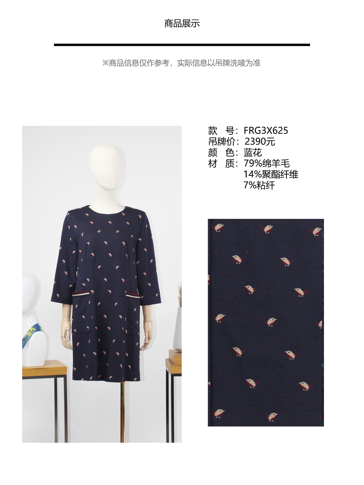 FOCALS福柯斯新款通勤圆领七分袖针织提花中长款连衣裙FRG3X625BV