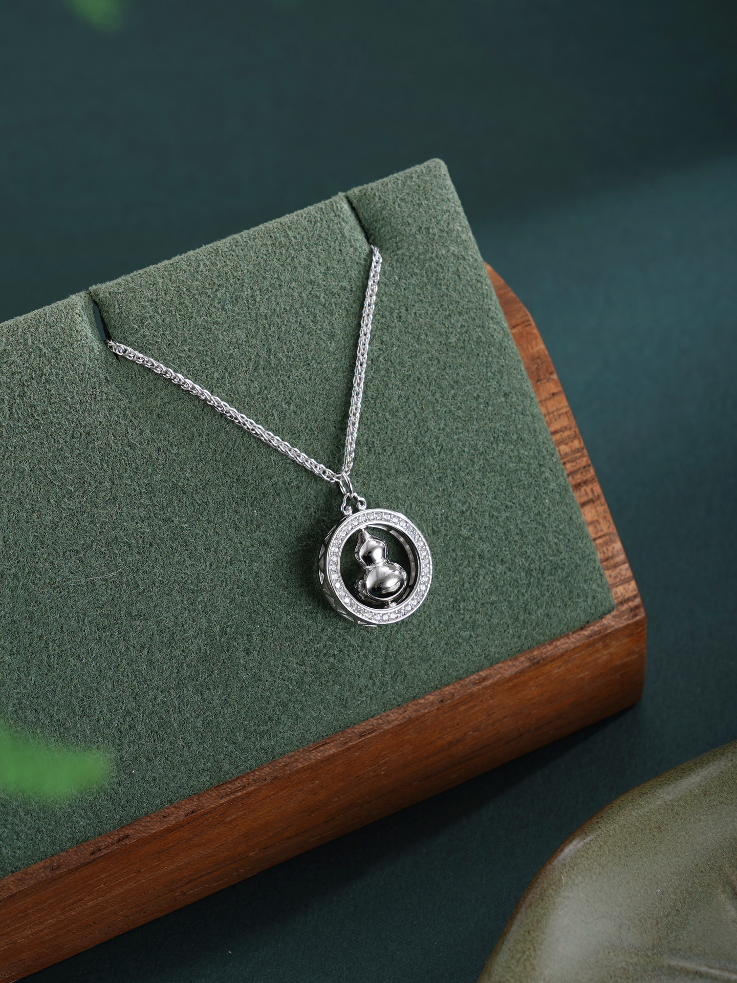 【寓意】:纯银精铸葫芦吊坠,增添清欢之境,亦象征人生福泽绵长。可转动设计,寓意在时光流转中收获幸福安康。