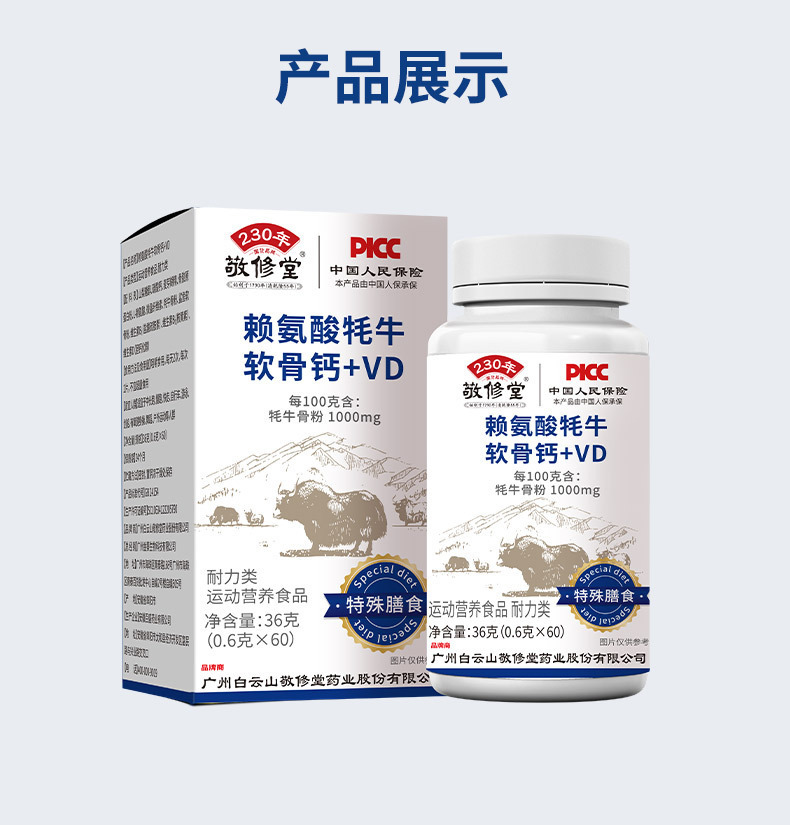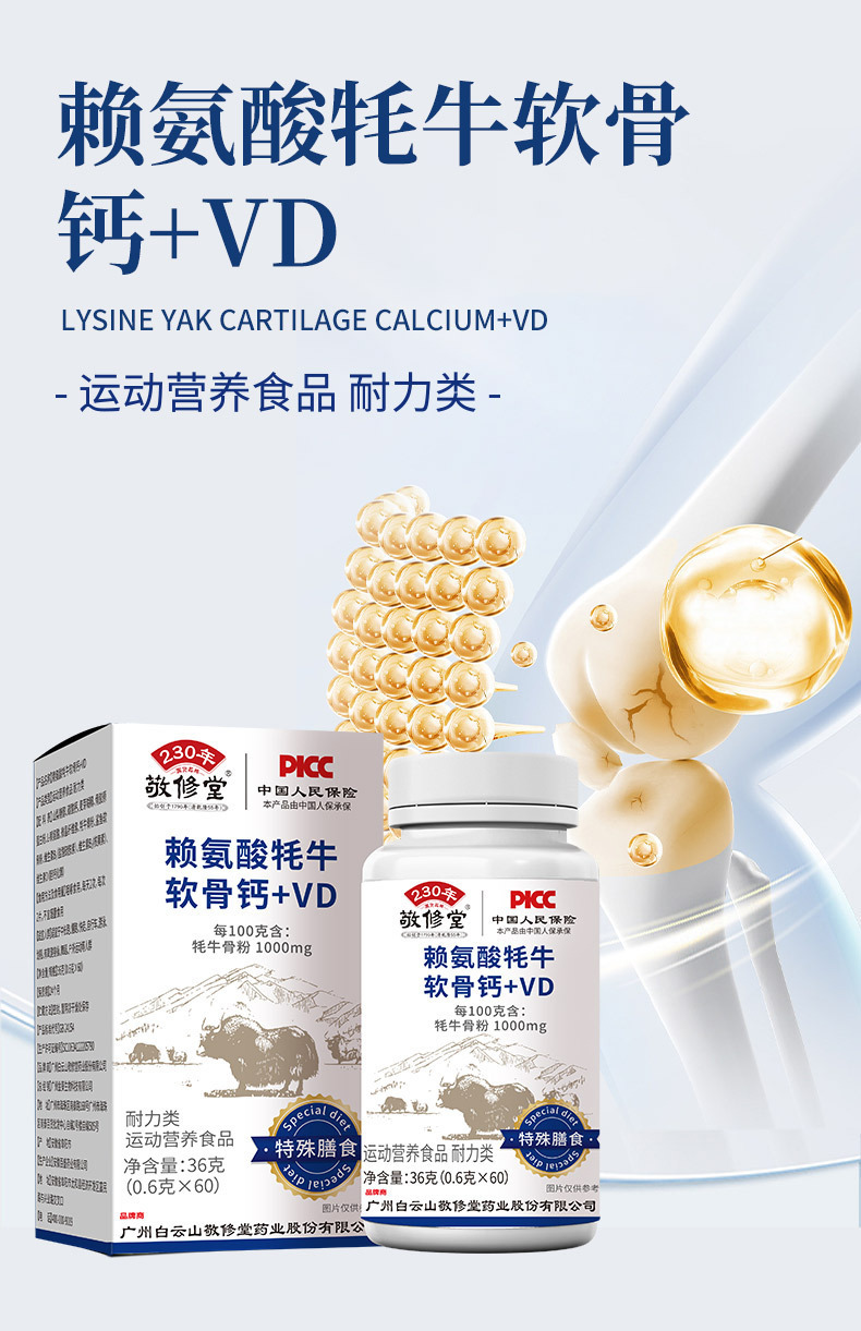 敬修堂赖氨酸牦牛软骨钙+VD钙片60粒