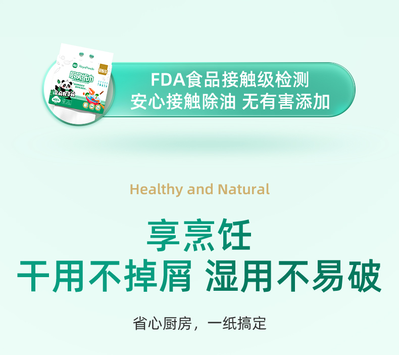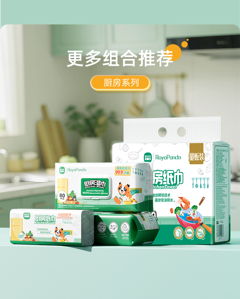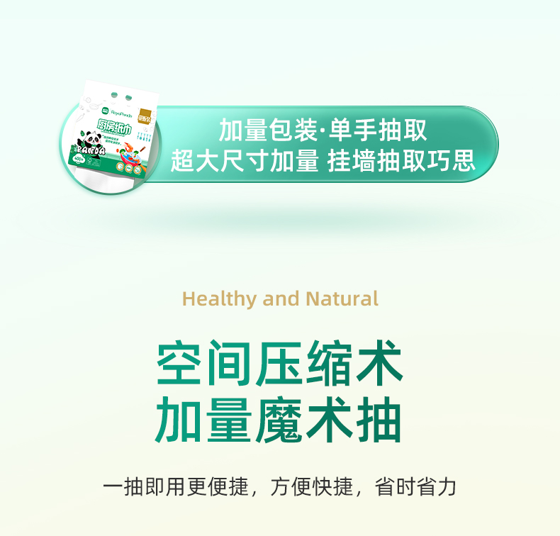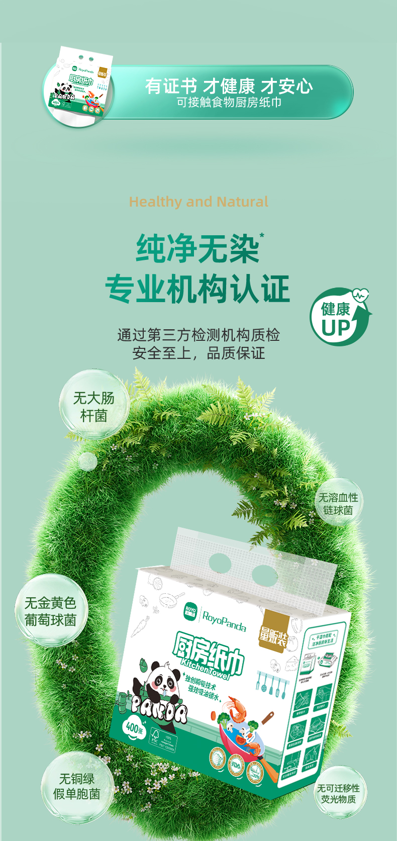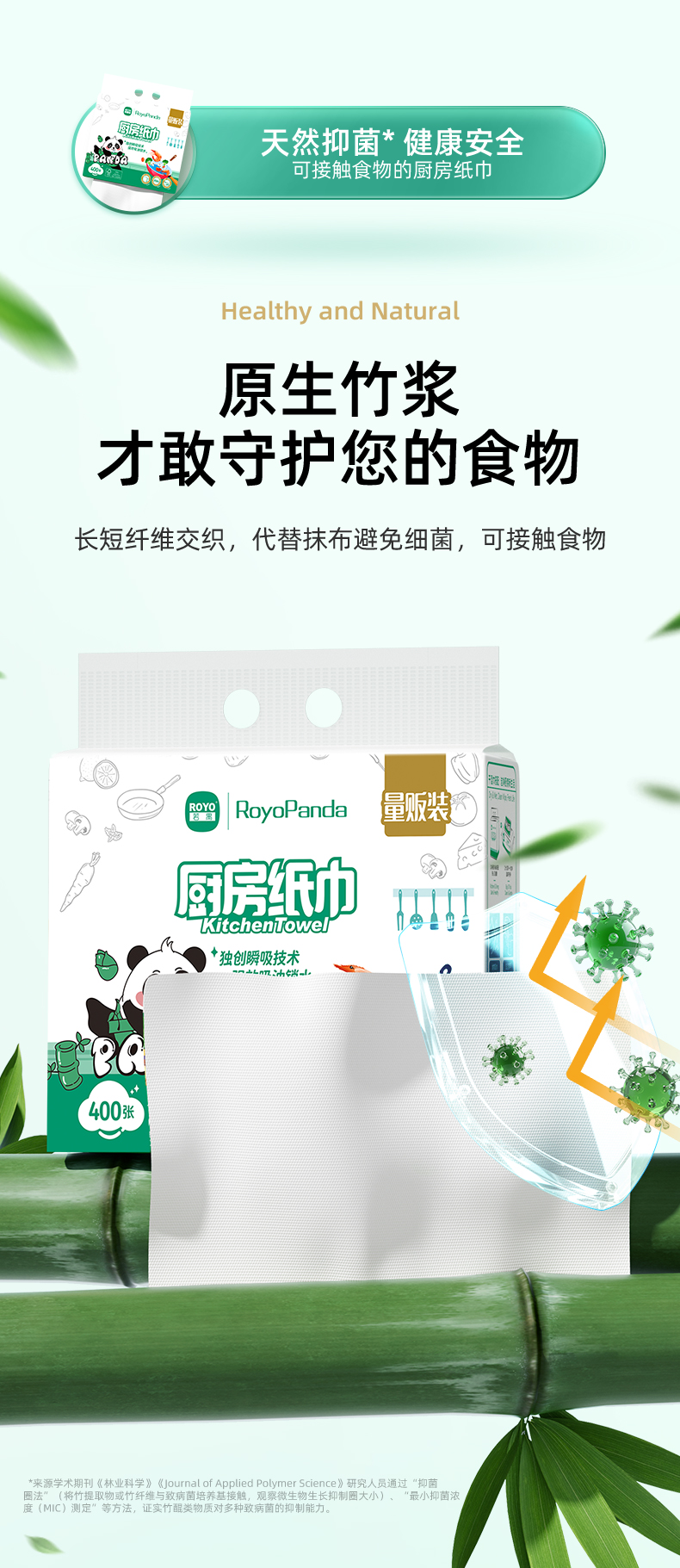 若禺RoyoPanda厨房纸双层加大加厚400张/提便捷挂式装原生竹浆吸油吸水1件4提RK1902