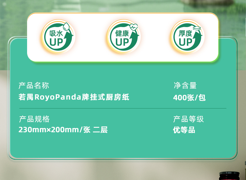 若禺RoyoPanda厨房纸双层400张挂式厨房抽纸1件1提RK1903-B01
