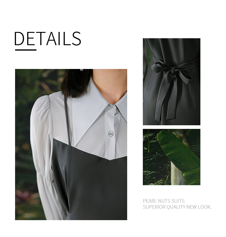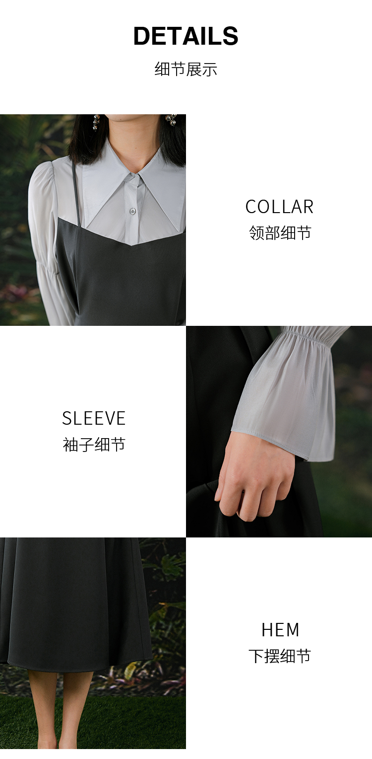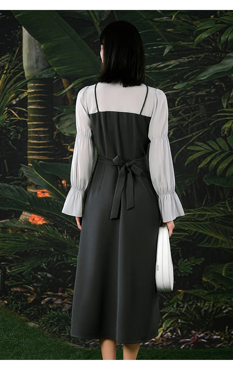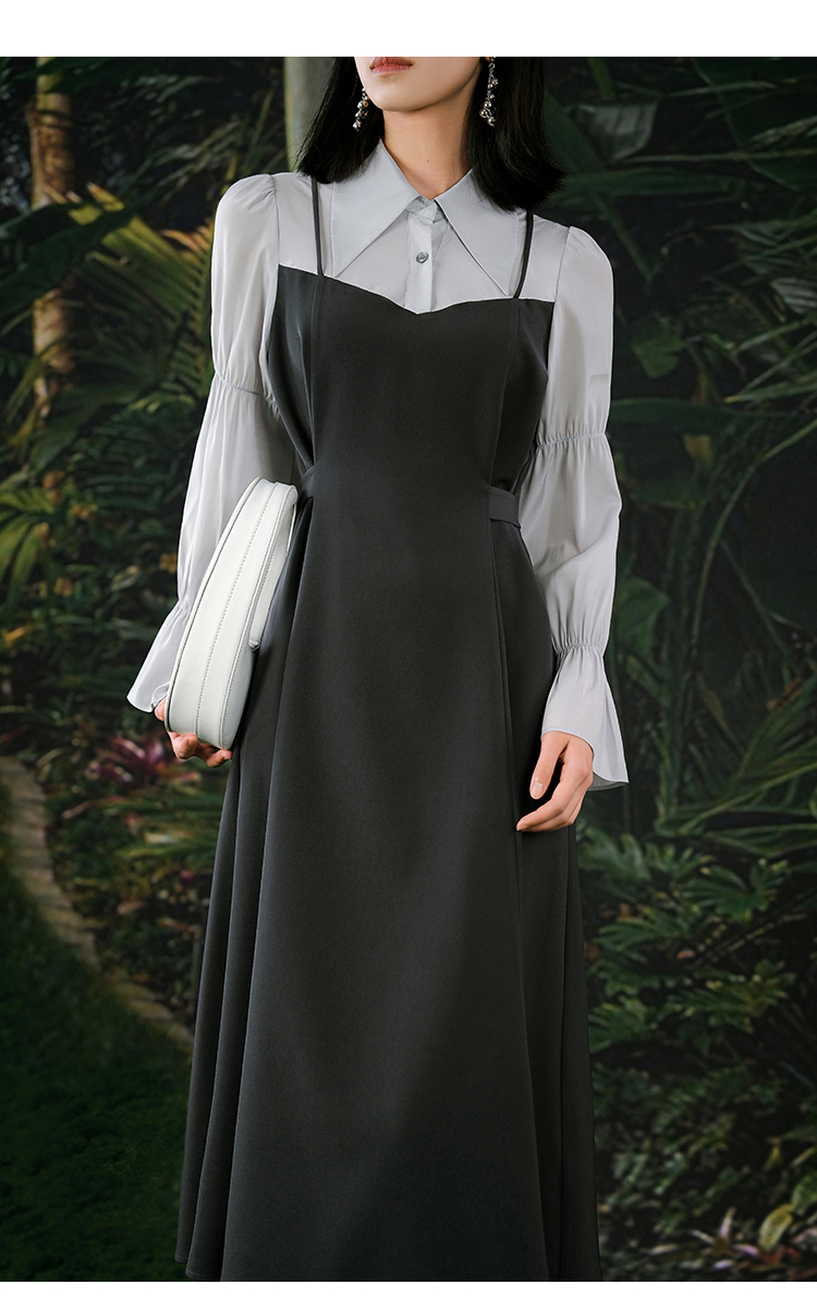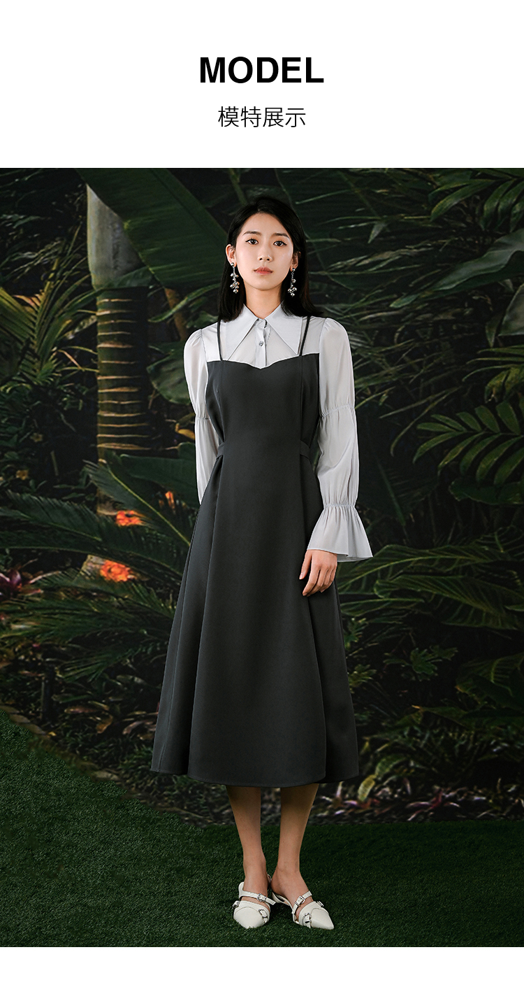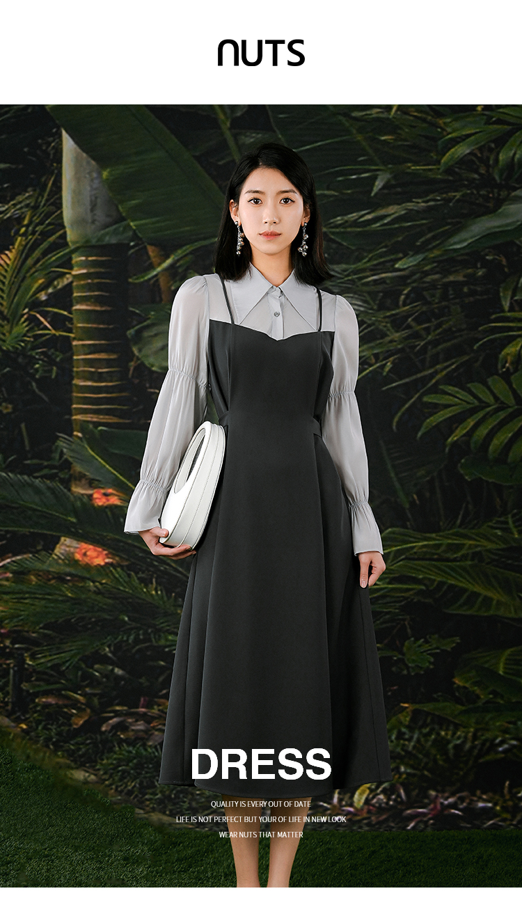 NUTS春秋季新款气质拼接高腰通勤A字中长款连衣裙女412101126