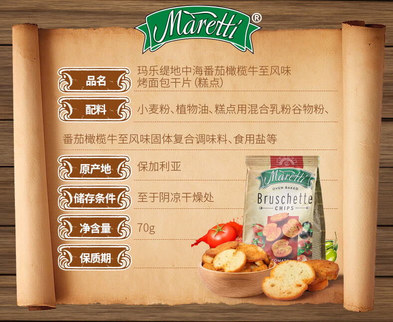 【分仓直发包邮】玛乐缇进口饼干烤面包干3种口味拼组70g/袋(番茄橄榄牛至口味+地中海披萨口味+地中海蔬菜口味)