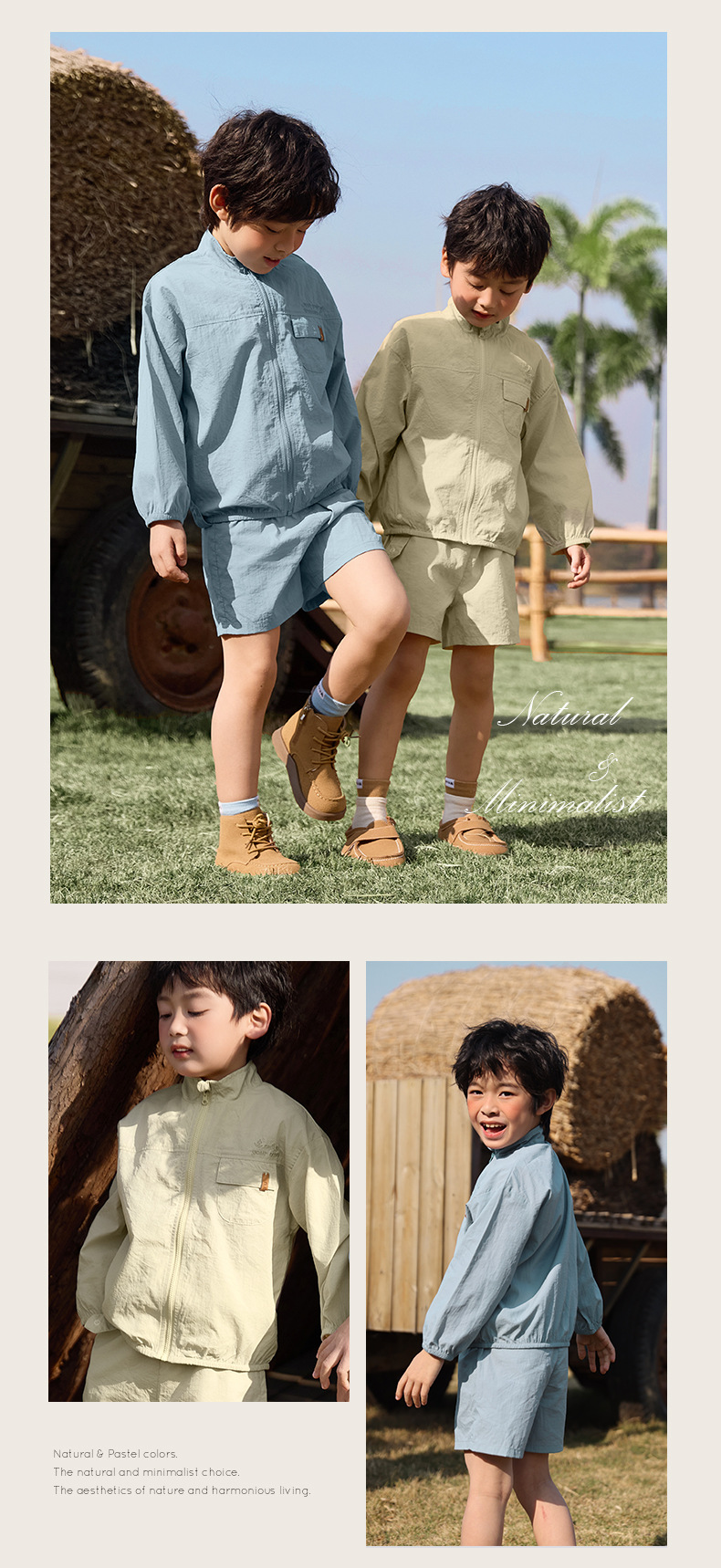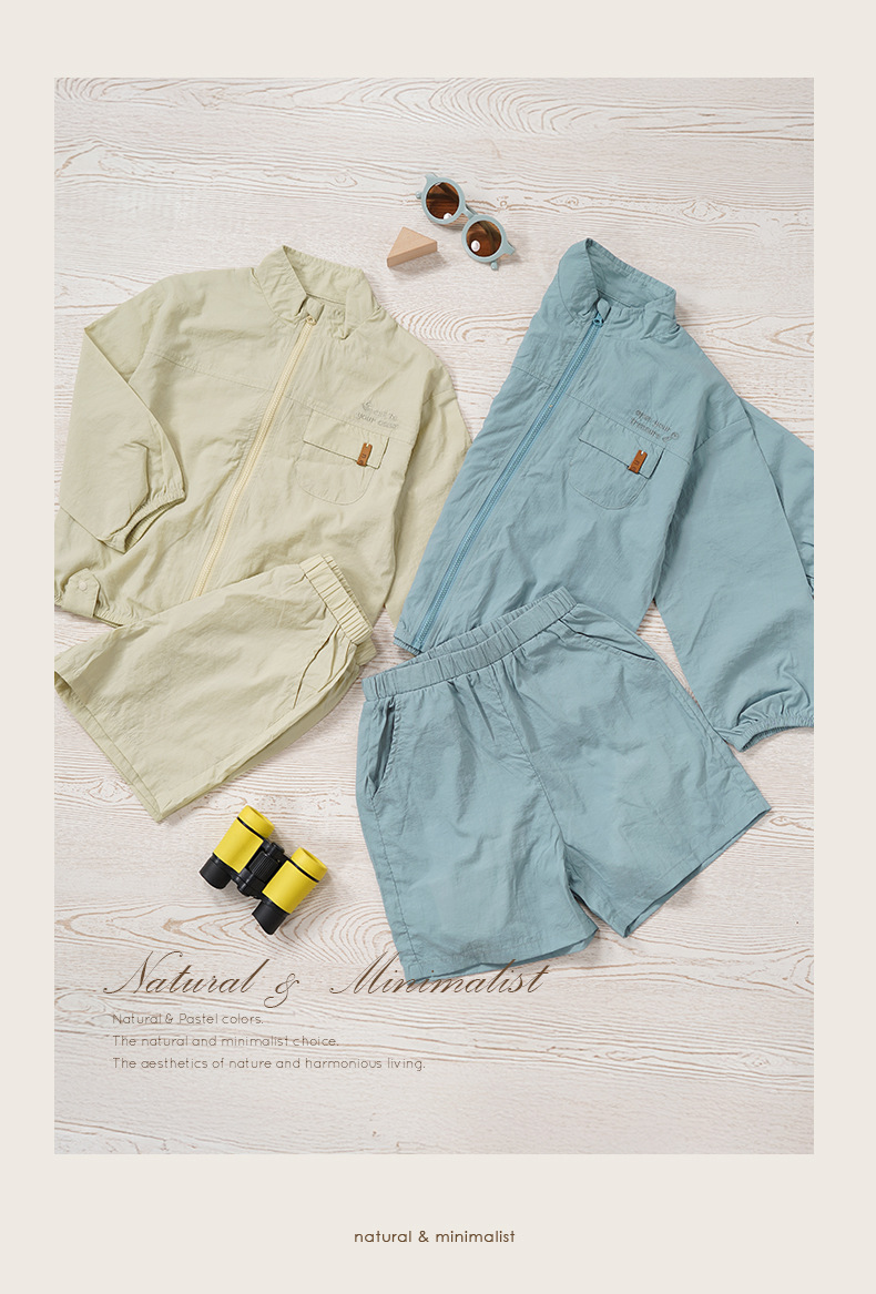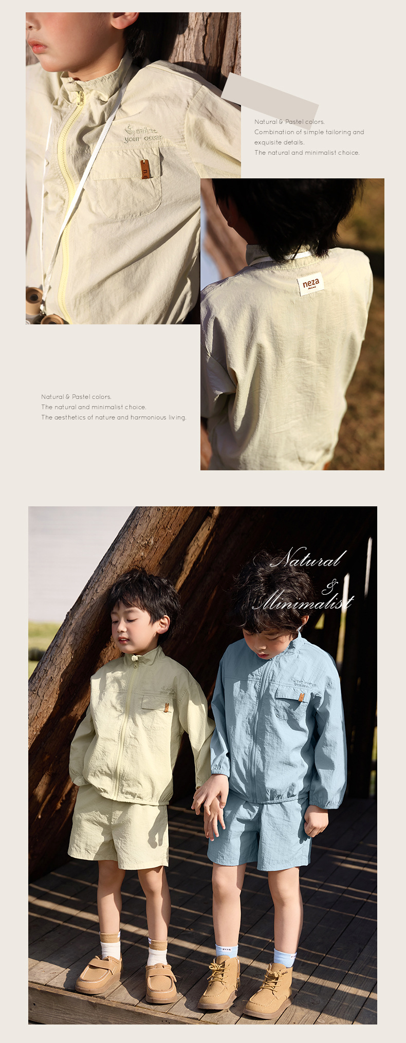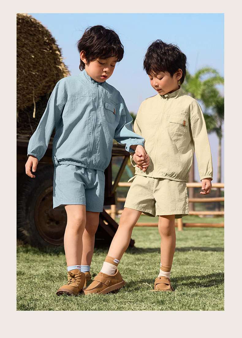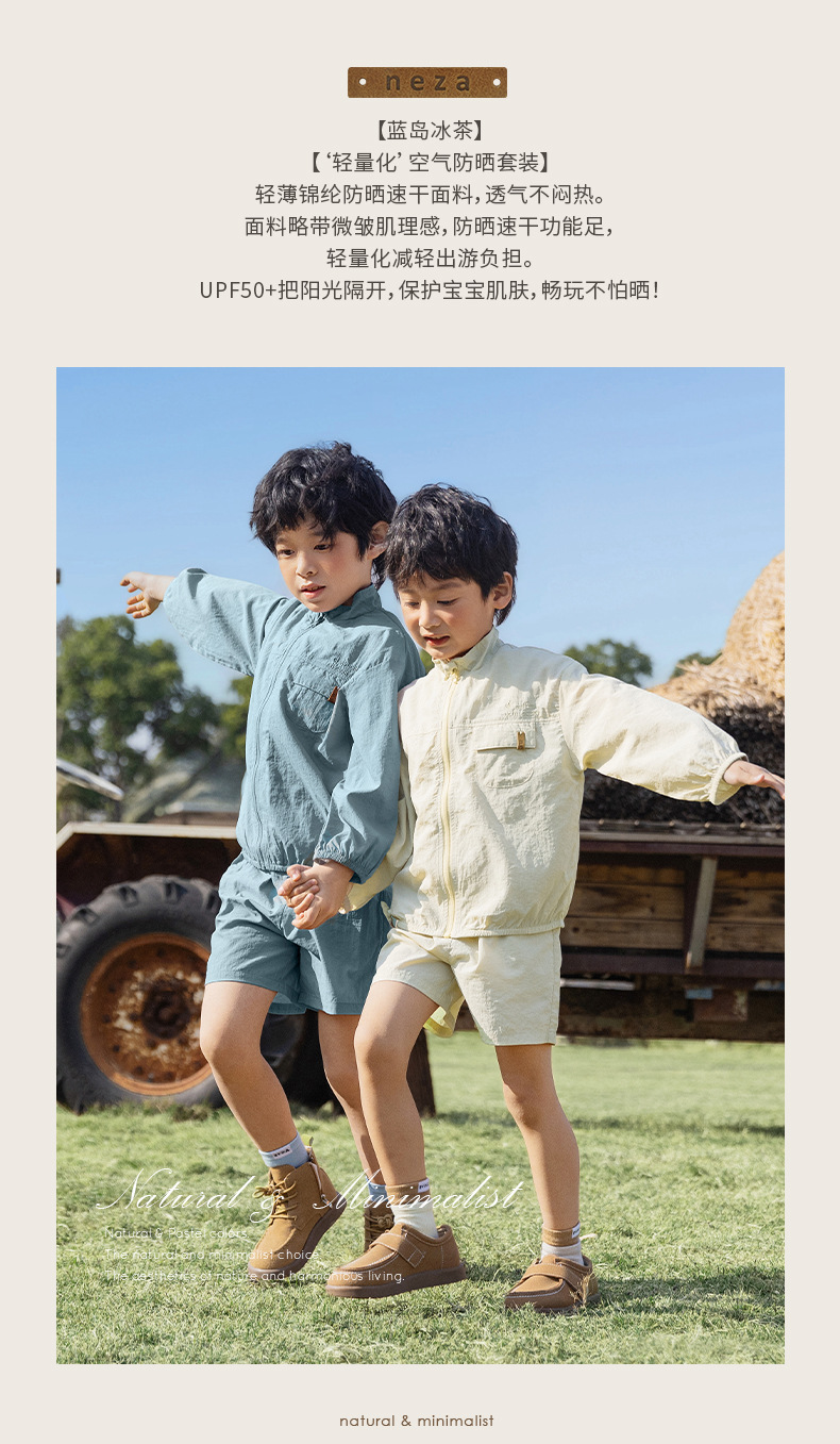 minizone-neza【蓝岛冰茶】儿童防晒套装男宝轻薄防晒速干外套女童短裤两件YN5914
