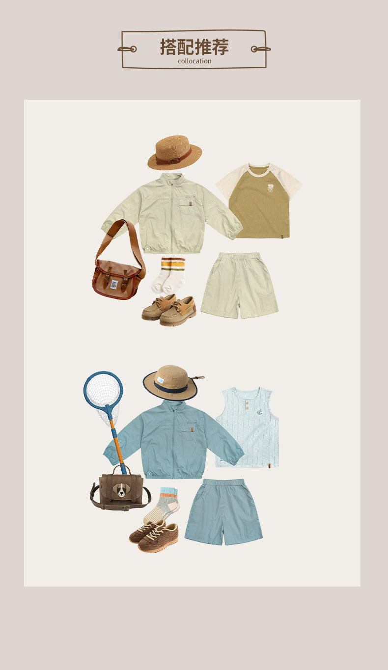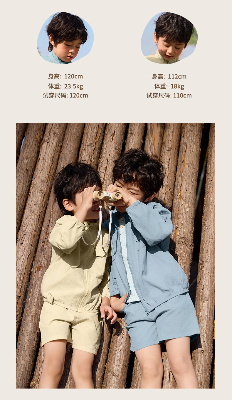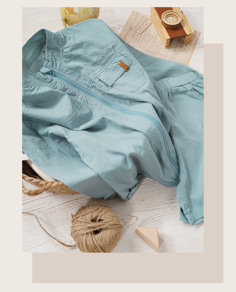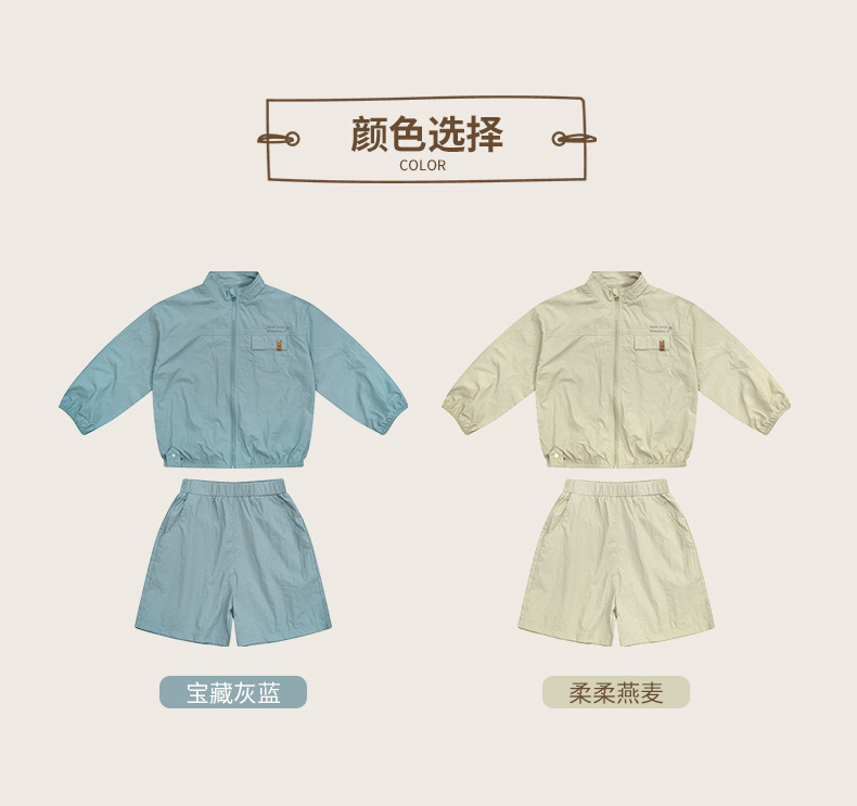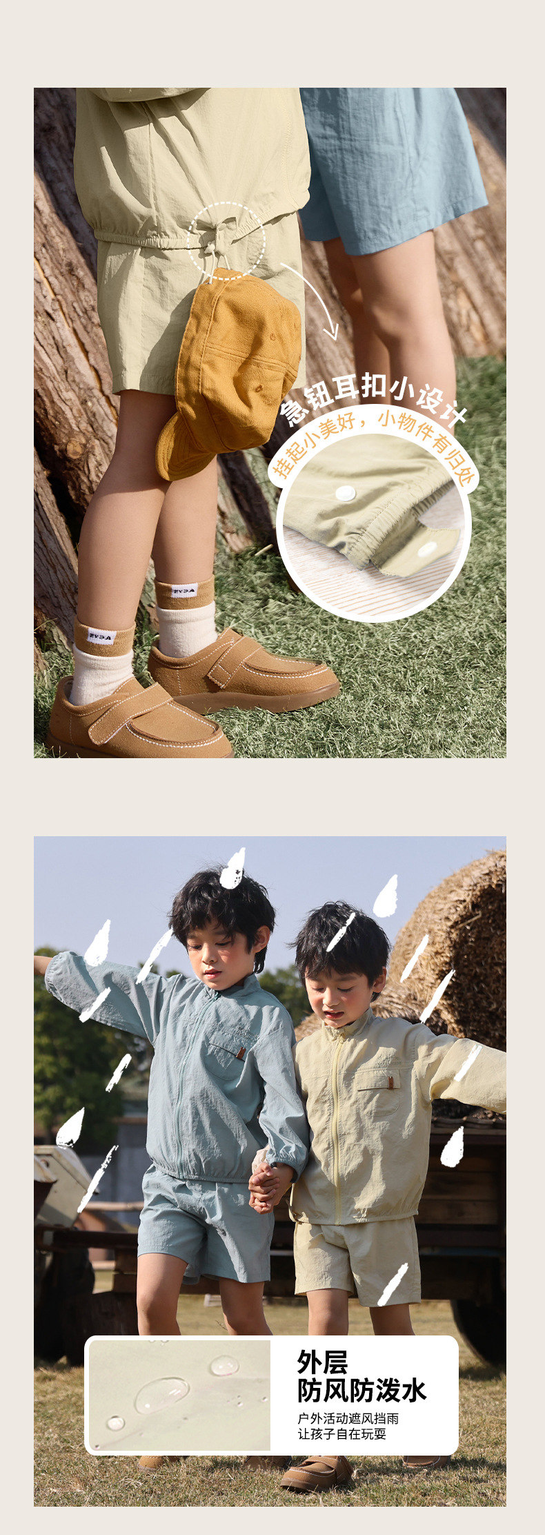 minizone-neza【蓝岛冰茶】儿童防晒套装男宝轻薄防晒速干外套女童短裤两件YN5914