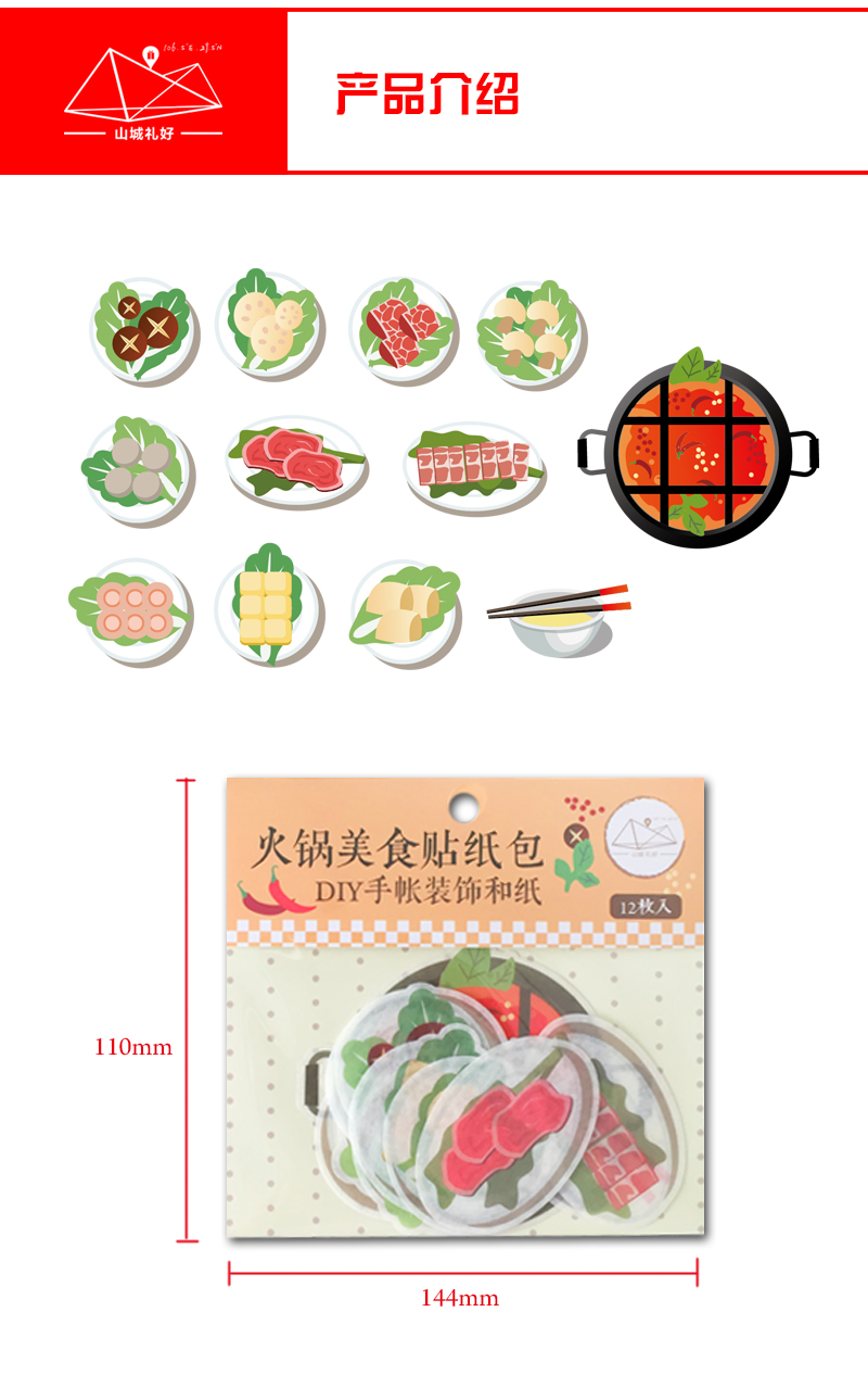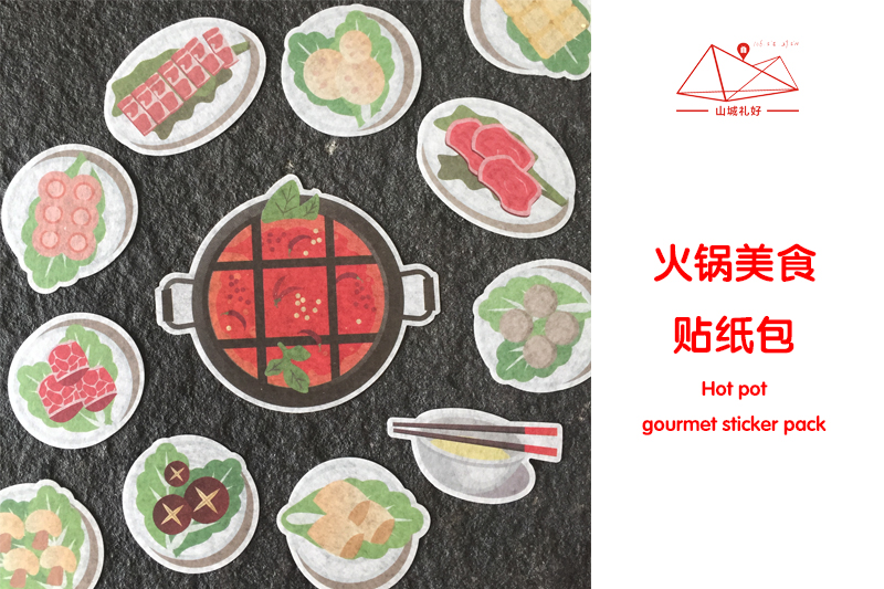 山城火锅美食贴纸包12张/贴纸包/重庆原创伴手礼/旅游纪念品