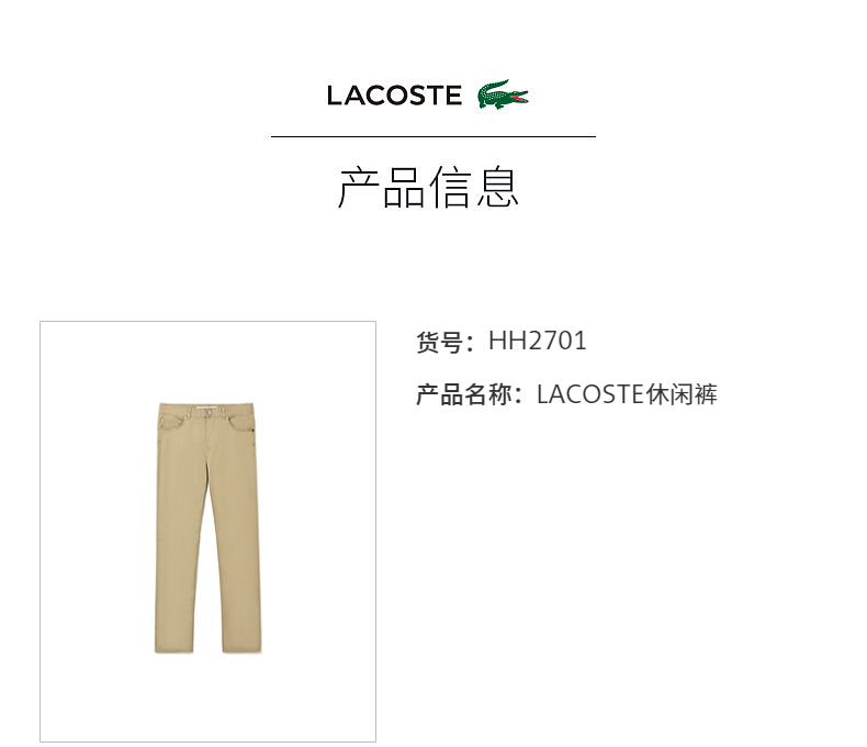 【海南专供价】Lacoste法国鳄鱼男装新款纯色简约商务休闲裤长裤HH2701-98