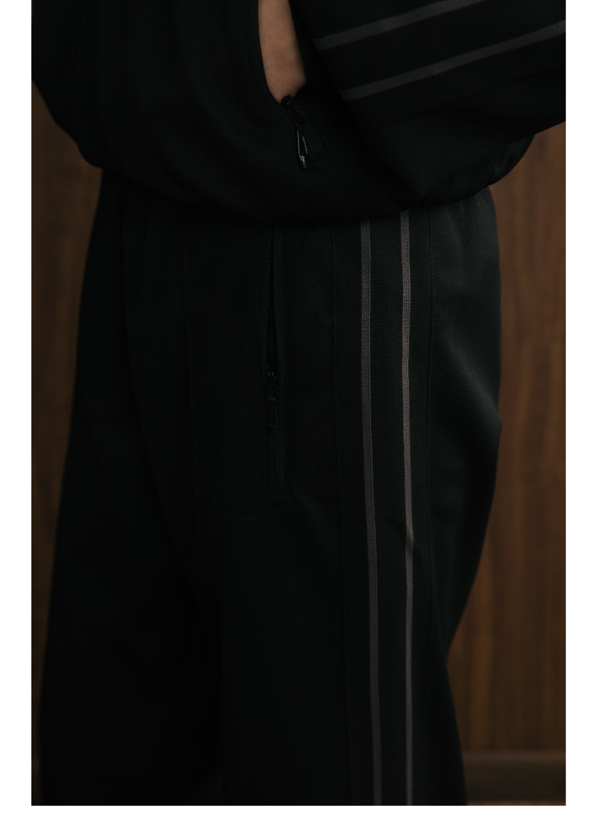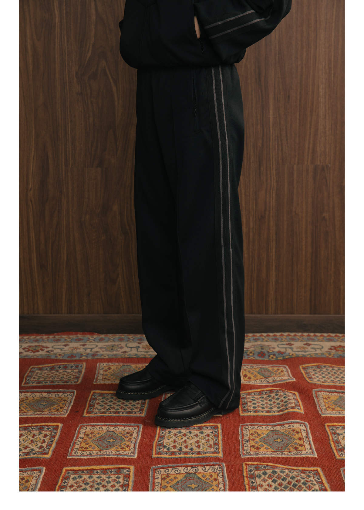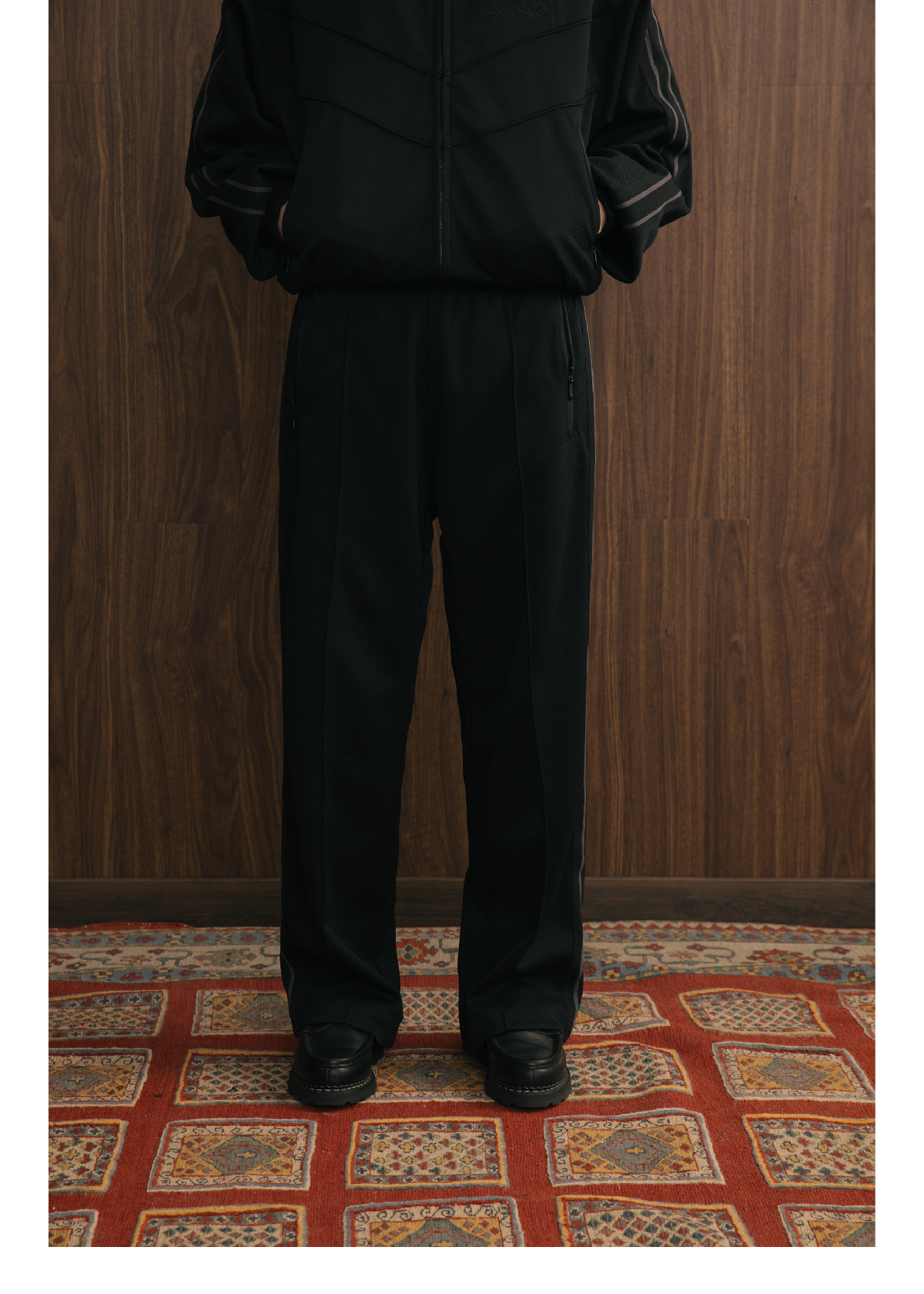 SUPERTOFU(SPTF) /YG-AW24-P073/珠地面料 刺绣LOGO 条纹织带 针织运动长裤