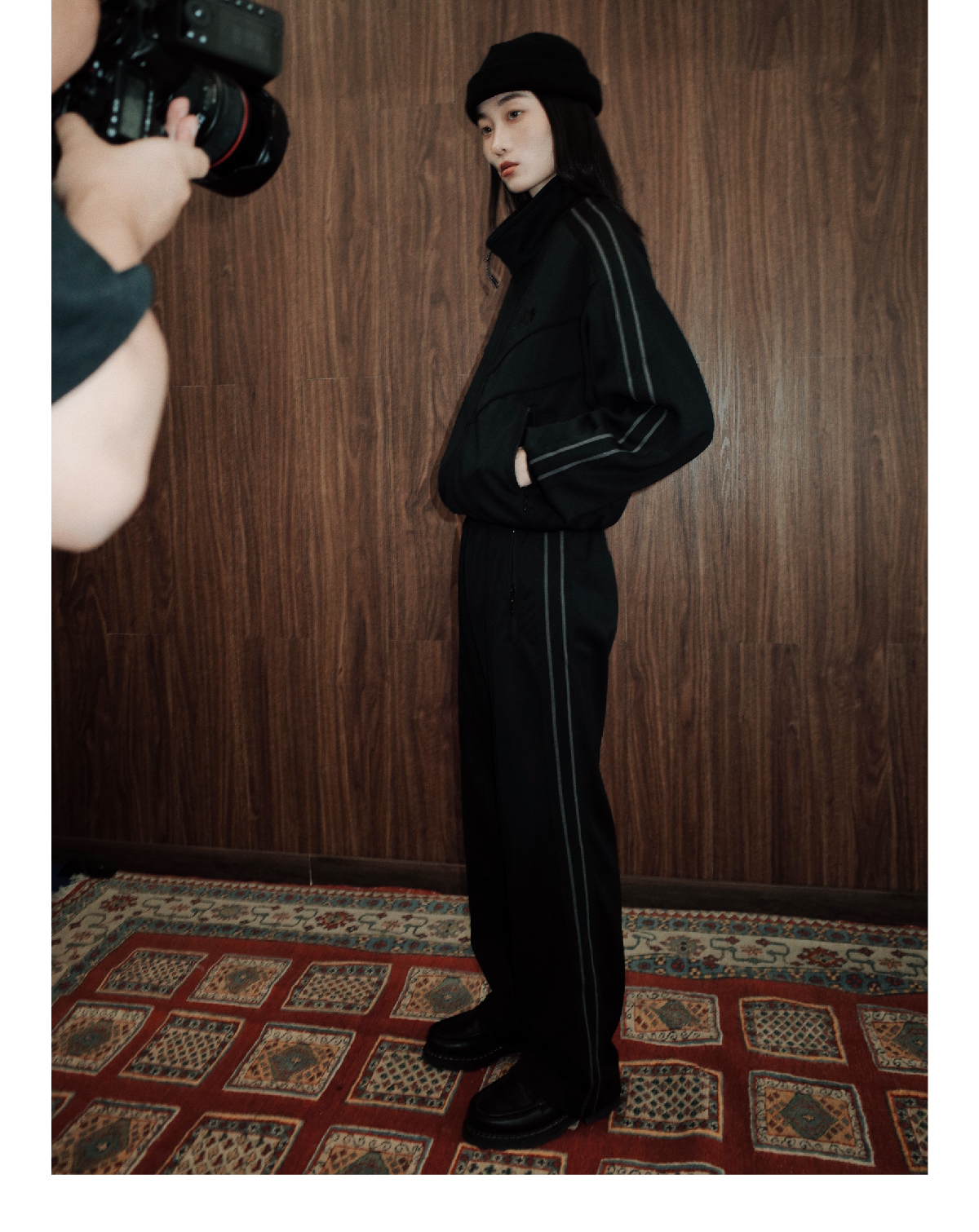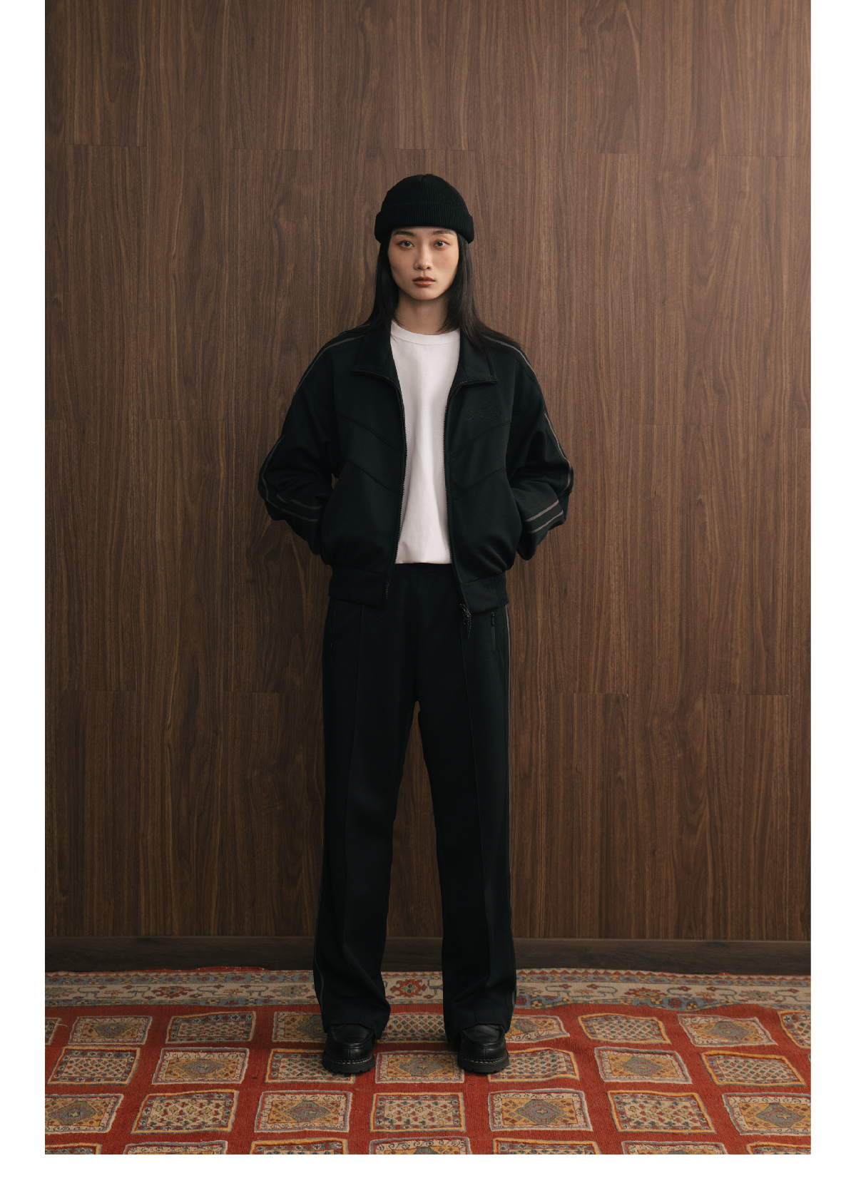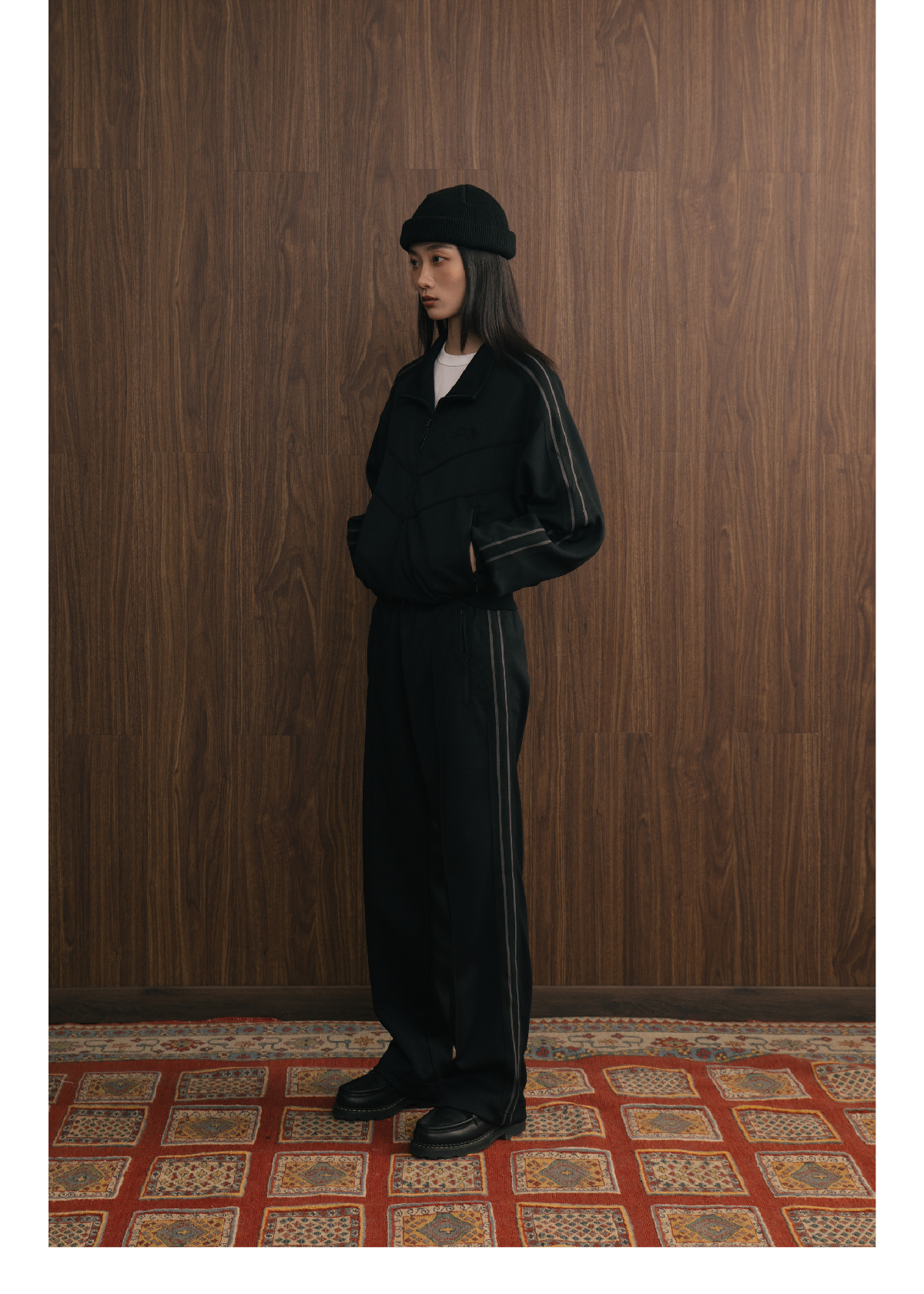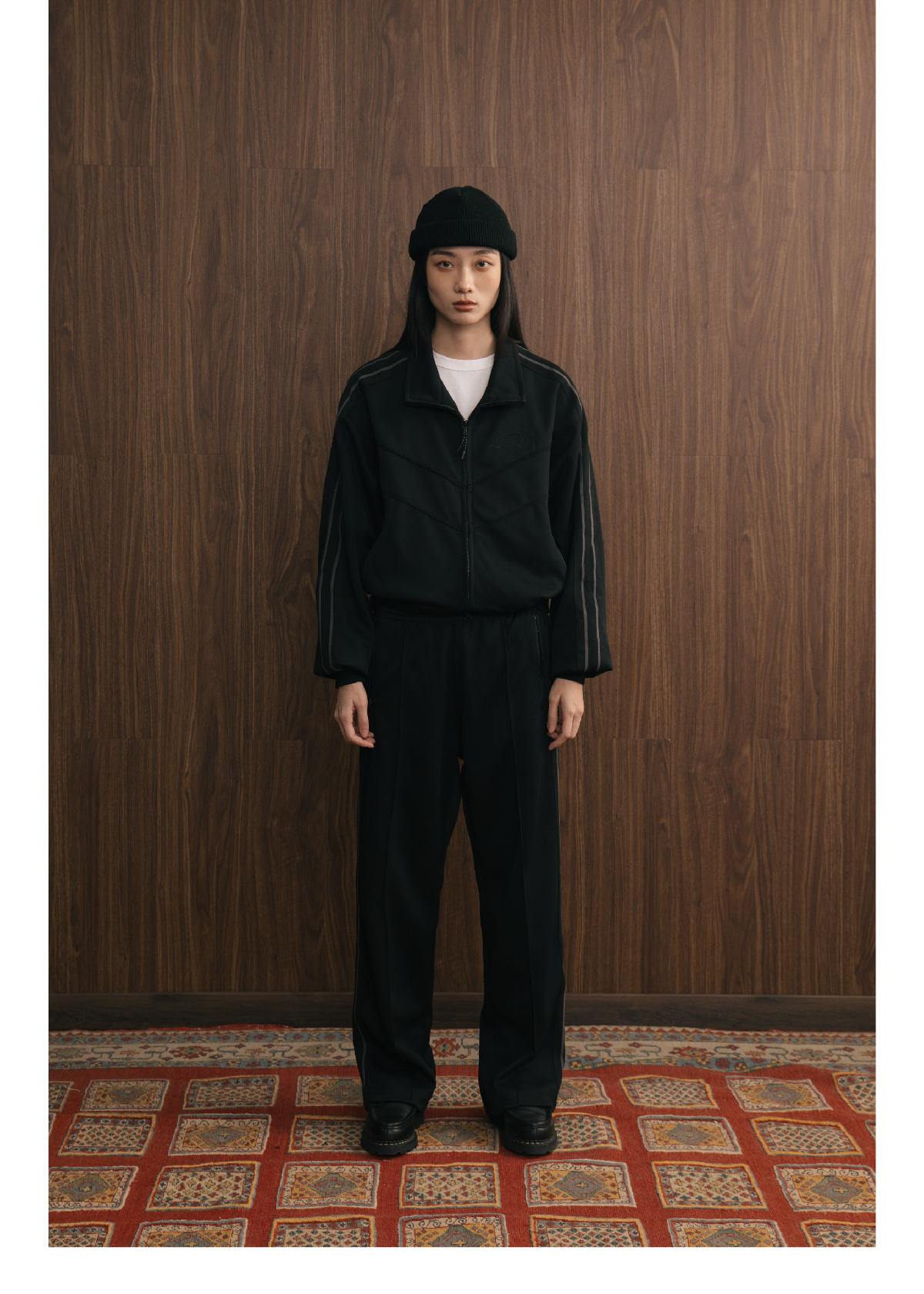 SUPERTOFU(SPTF) /YG-AW24-P073/珠地面料 刺绣LOGO 条纹织带 针织运动长裤