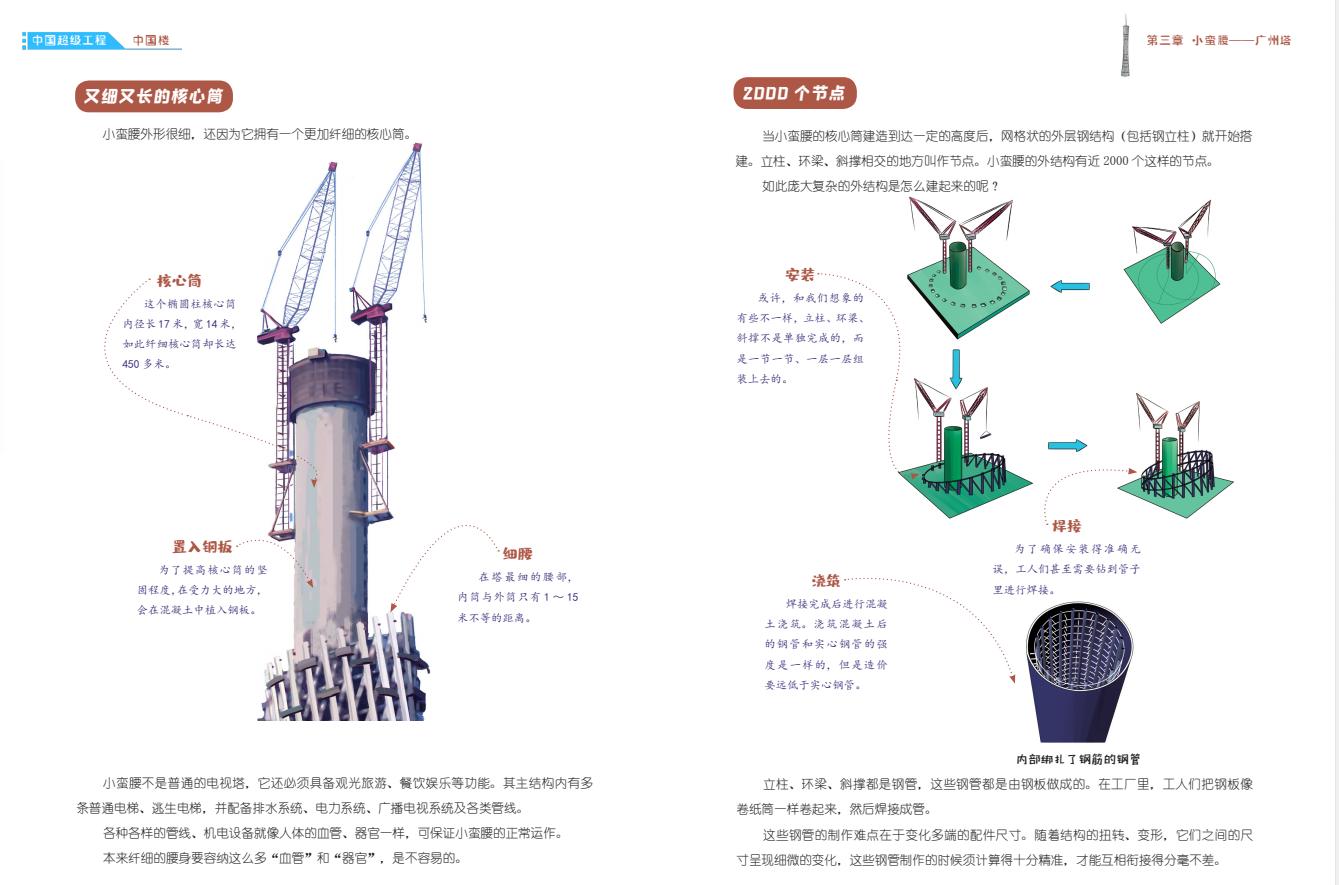 这本书基于青少年视角,从不同的信息中挑选出青少年或者普通大众感兴趣的重要信息,介绍中国尊、上海中心大厦、广州塔小蛮腰这些超级工程的施工过程与技术原理,让青少年朋友既能感受到“超级工程”的伟大,还能感受其为什么如此“恢宏”。工程师们建设这些超级工程走过了哪些不同寻常的路,其中运用了哪些先进的科技,并且分析、体会这些先进科技中存在的原理与奥秘。