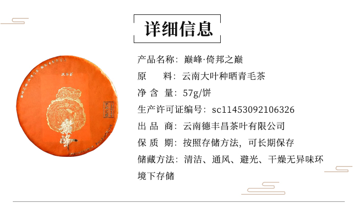 生普 | 德丰昌 2024年 巅峰 ·倚邦之巅 生茶 100g/饼