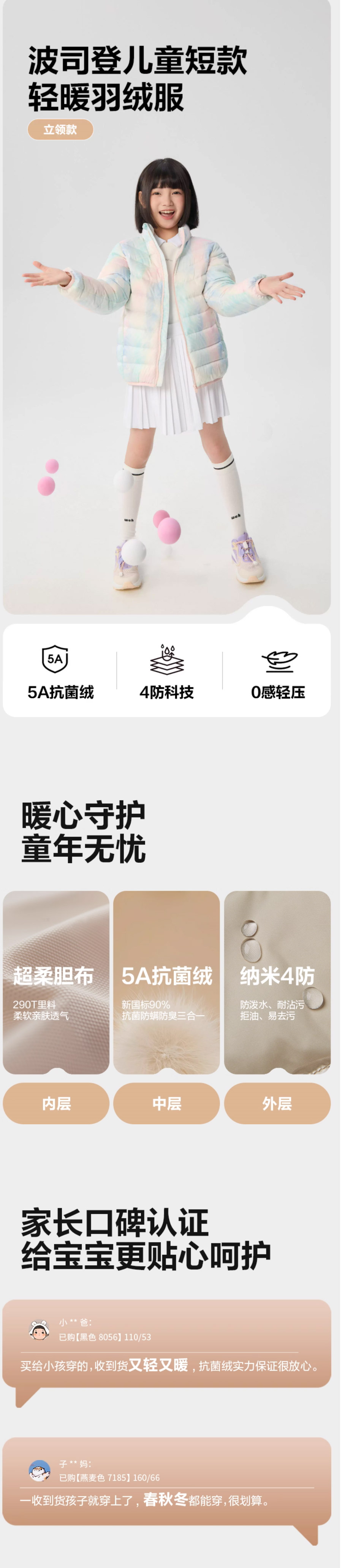 波司登2025新款儿童羽绒服轻薄款秋冬装T250135530