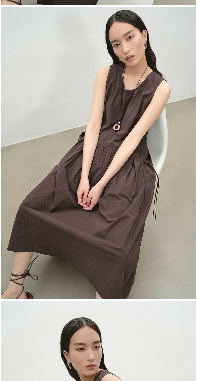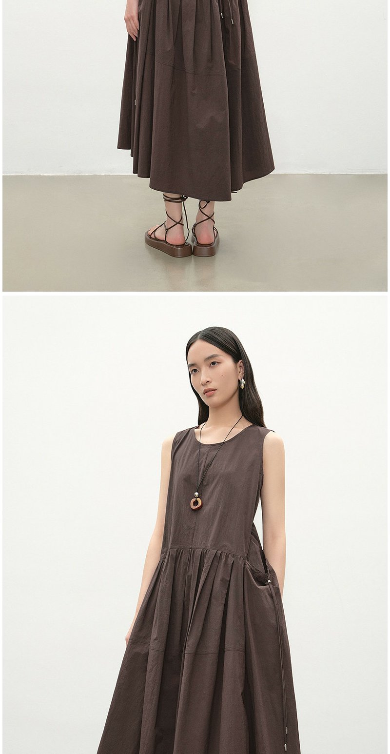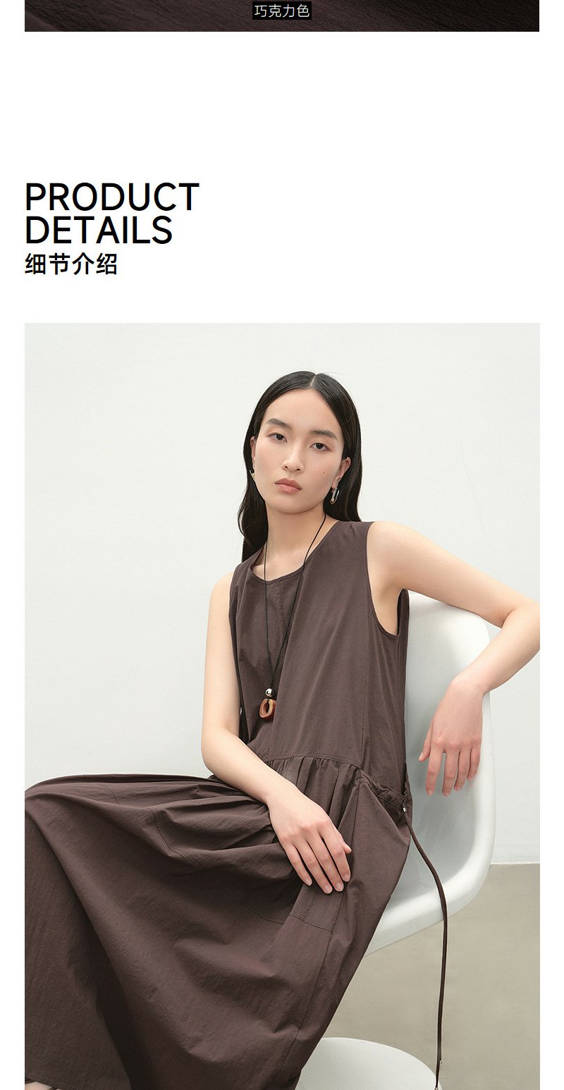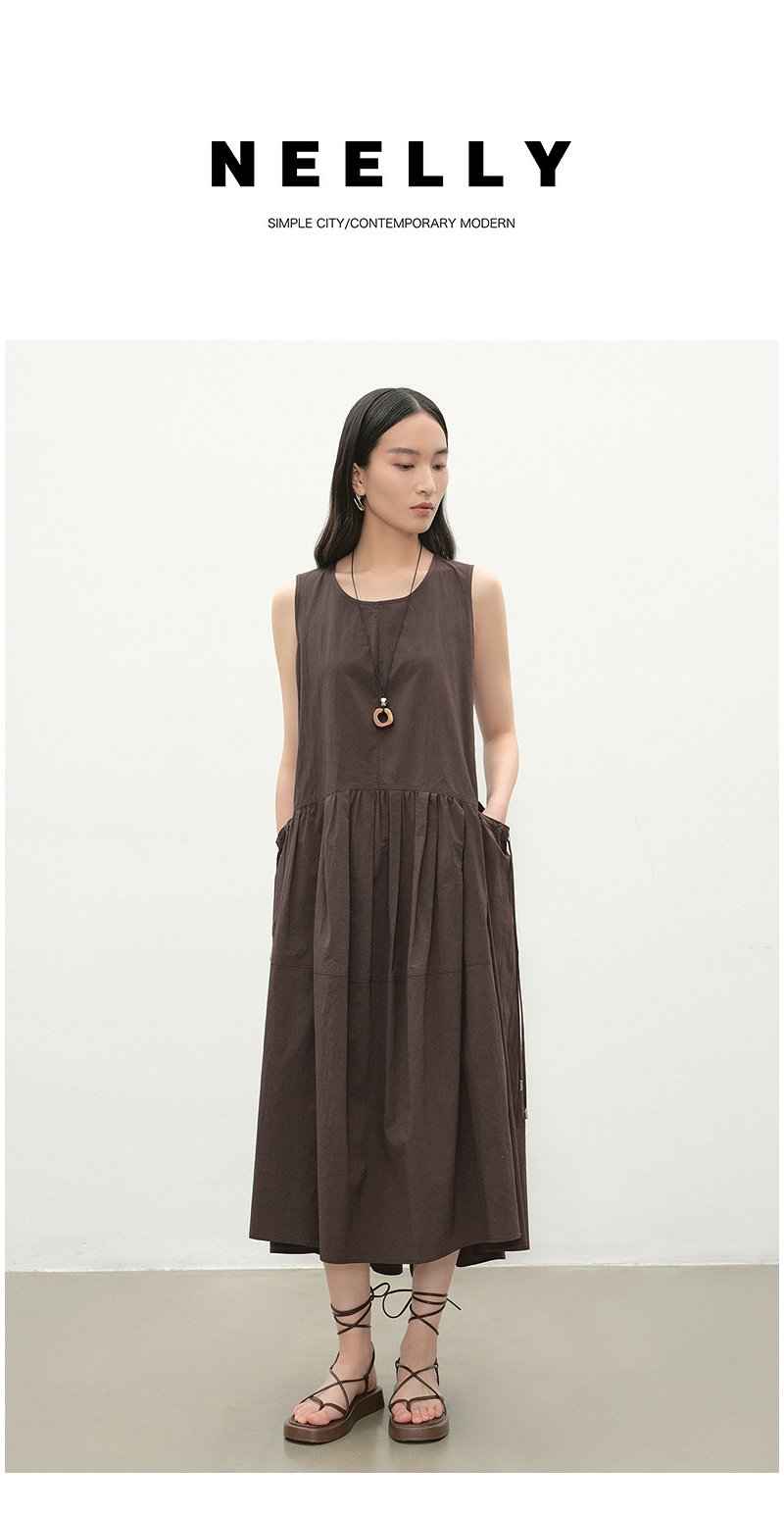 NEELLY纳俪商场同款夏季新款复古圆领背心连衣裙女宽松休闲长裙N26054Y04618