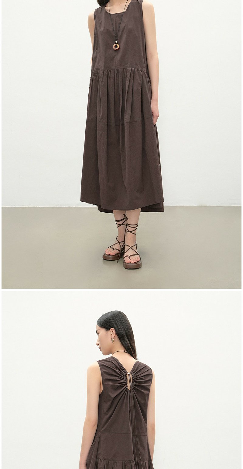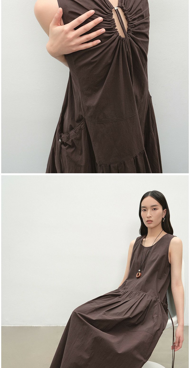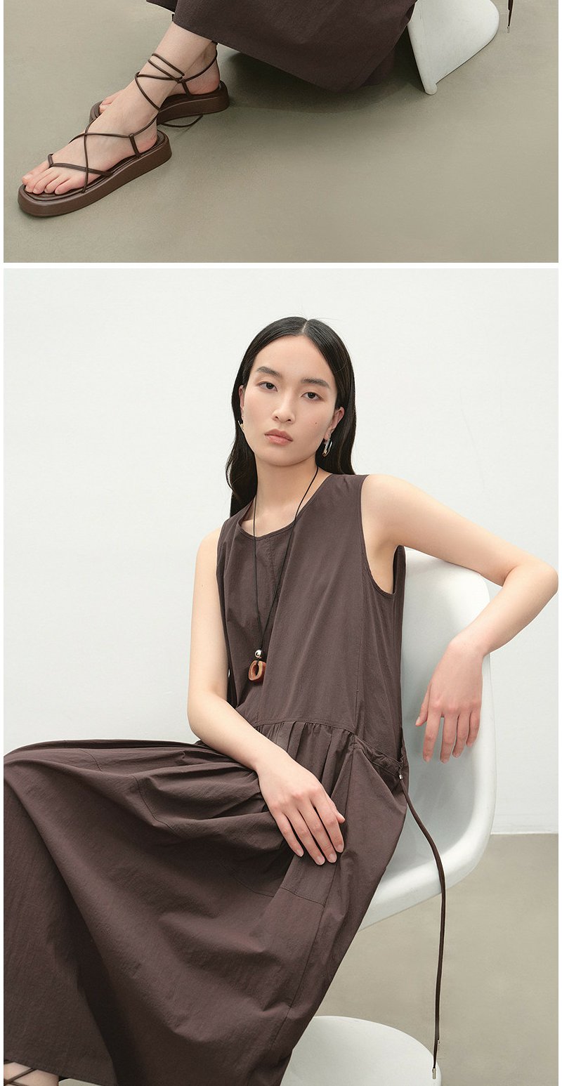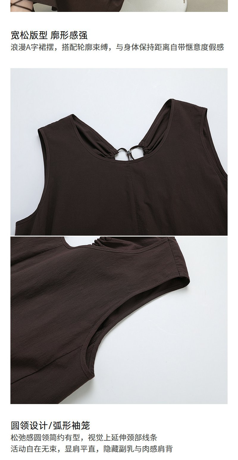 NEELLY纳俪商场同款夏季新款复古圆领背心连衣裙女宽松休闲长裙N26054Y04618