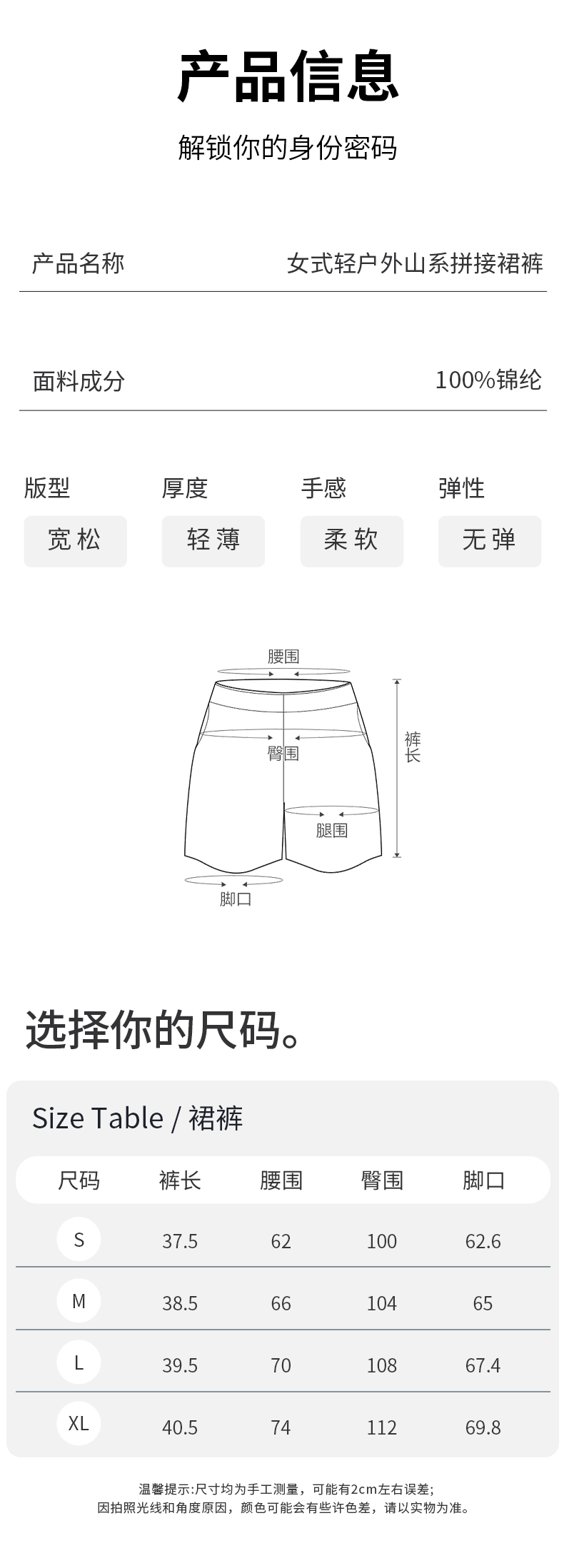 I'd爱帝假两件拼色裙裤夏季户外休闲登山短裙防晒防走光工装裙裤