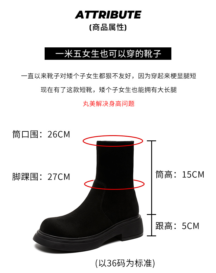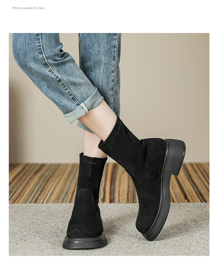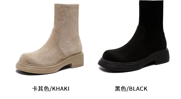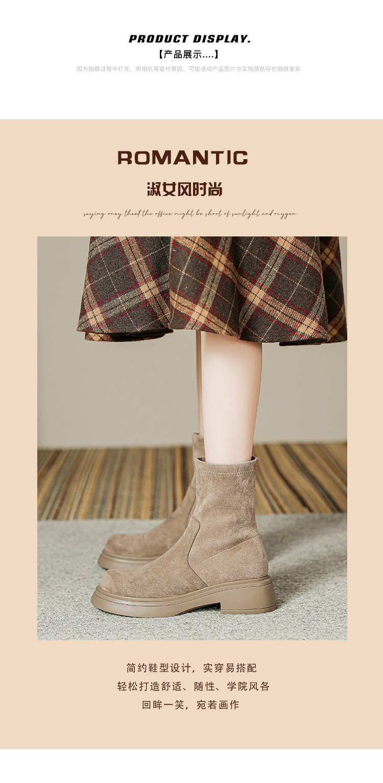 短靴女2023年秋冬新款复古圆头粗跟短筒骑士靴绒面百搭瘦瘦靴女鞋