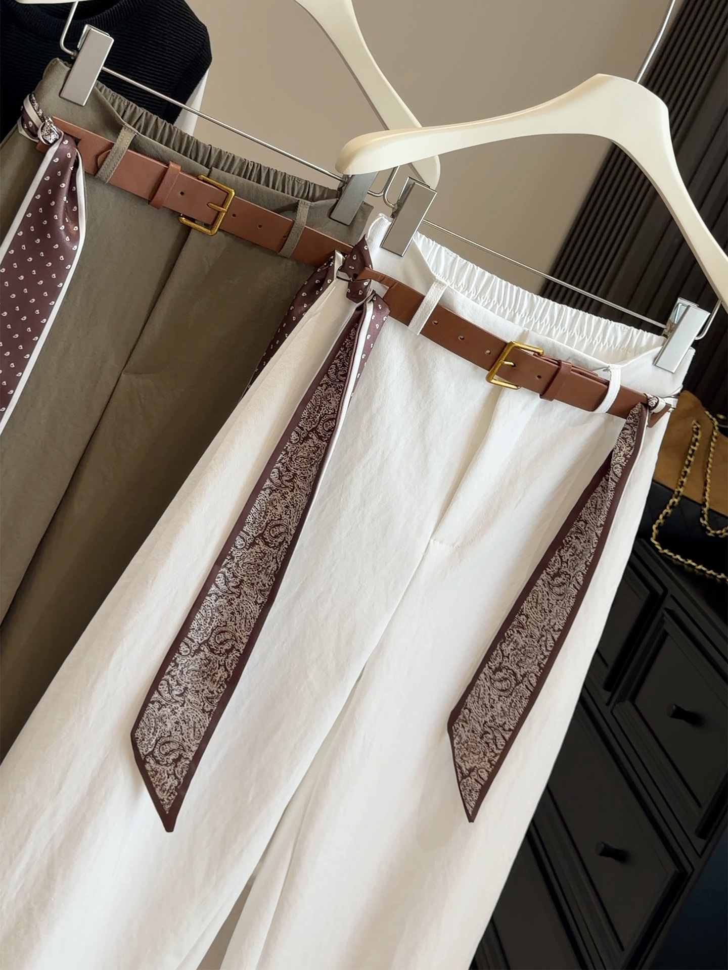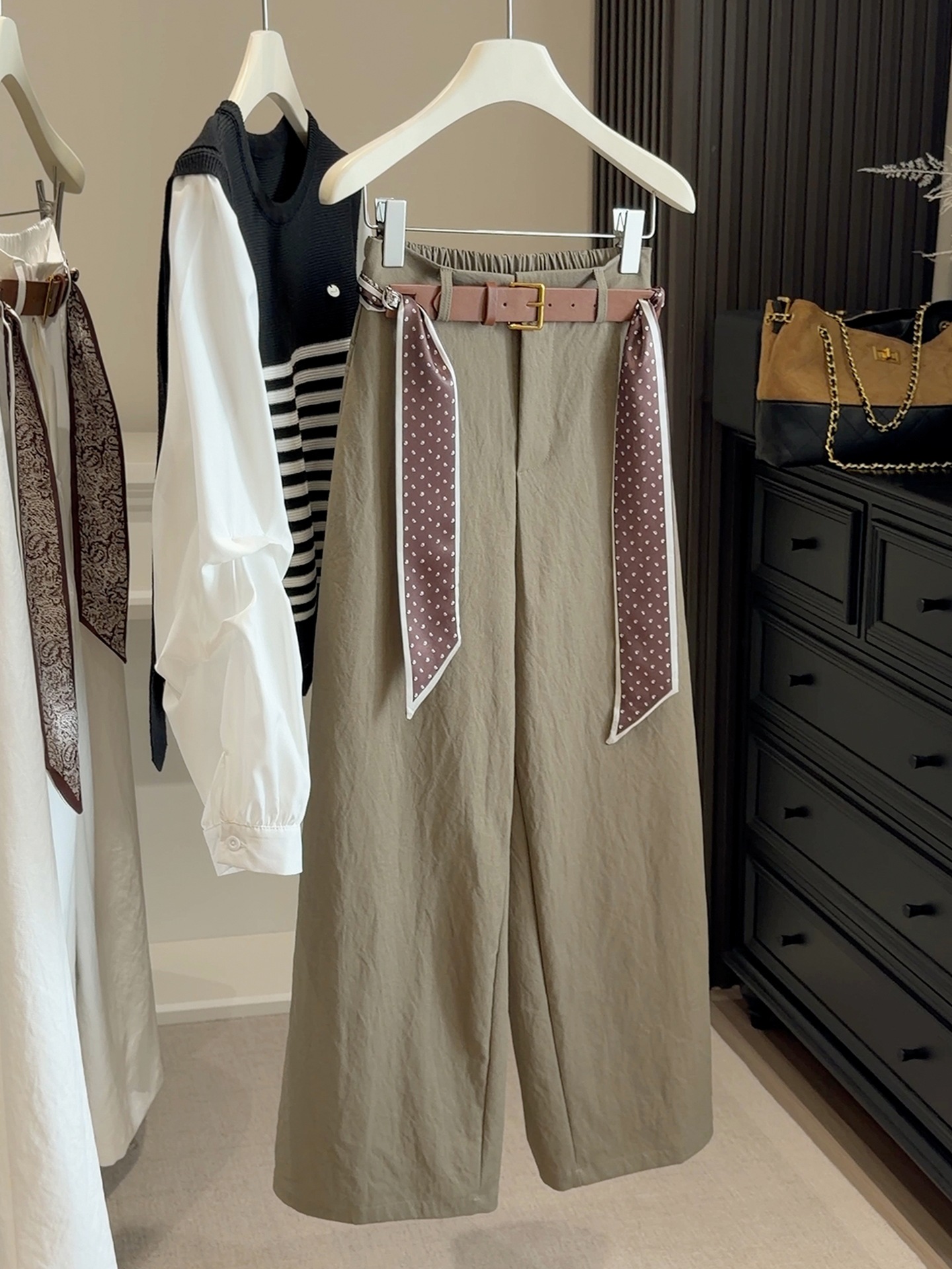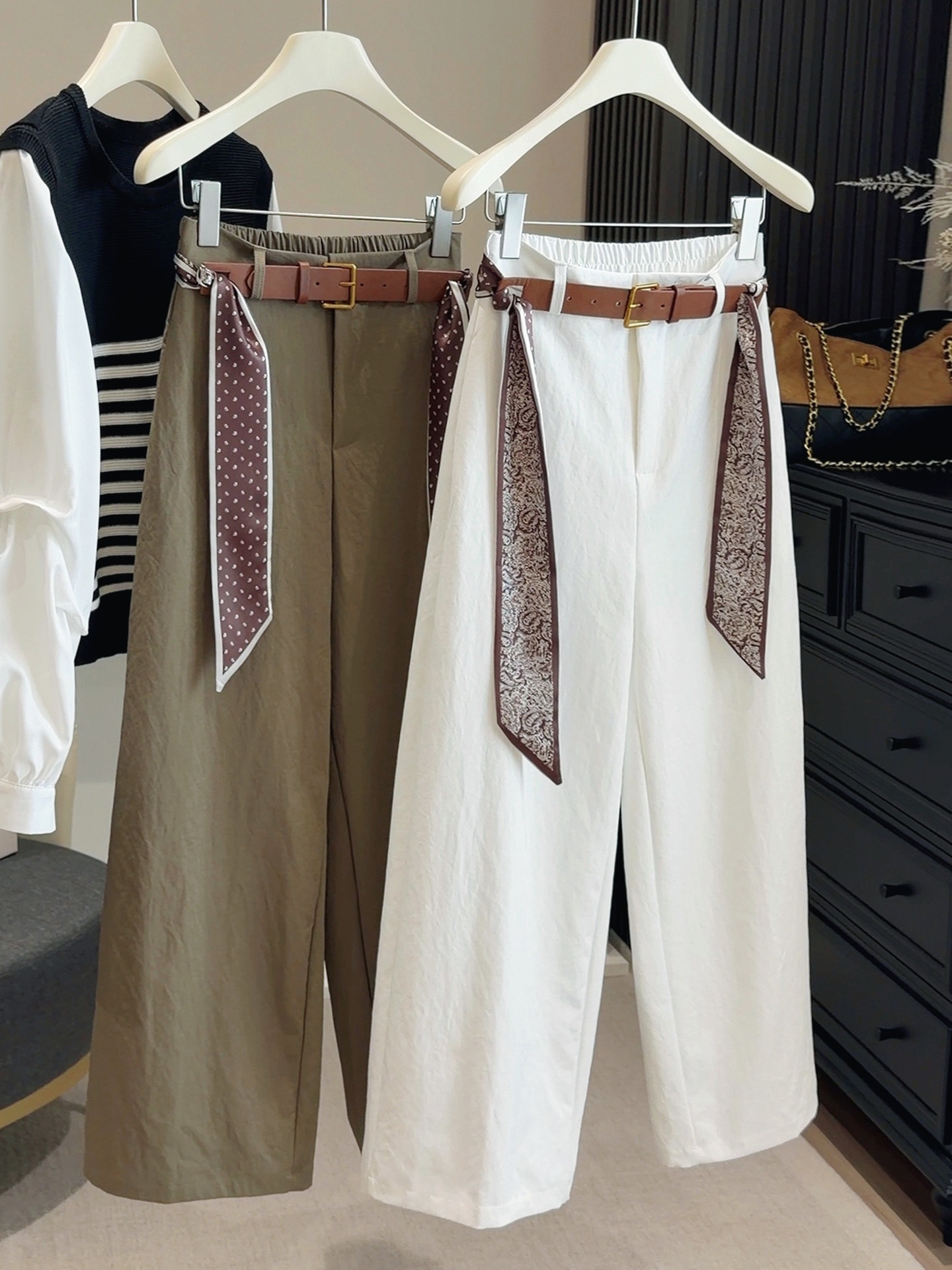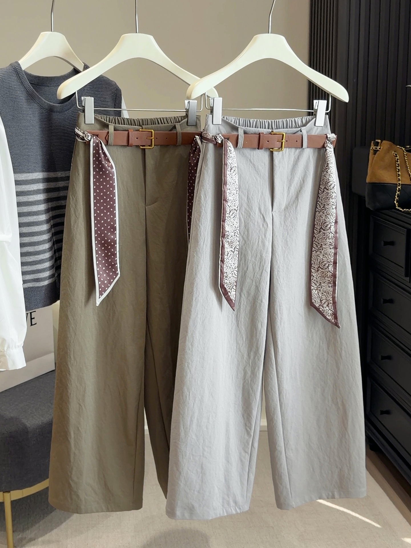 【太金棉休闲阔腿裤】春韩版设计感丝巾系带 高腰百搭直筒裤潮