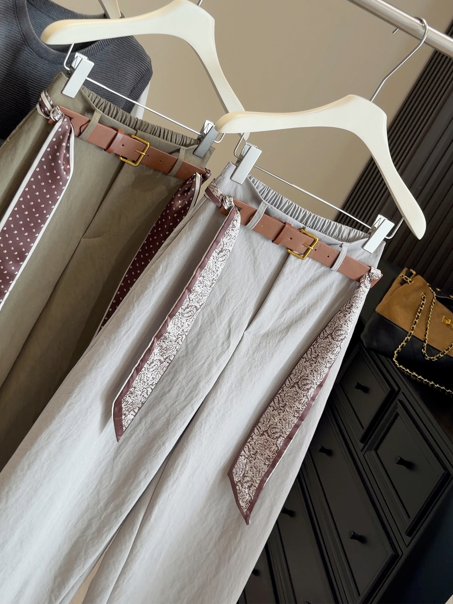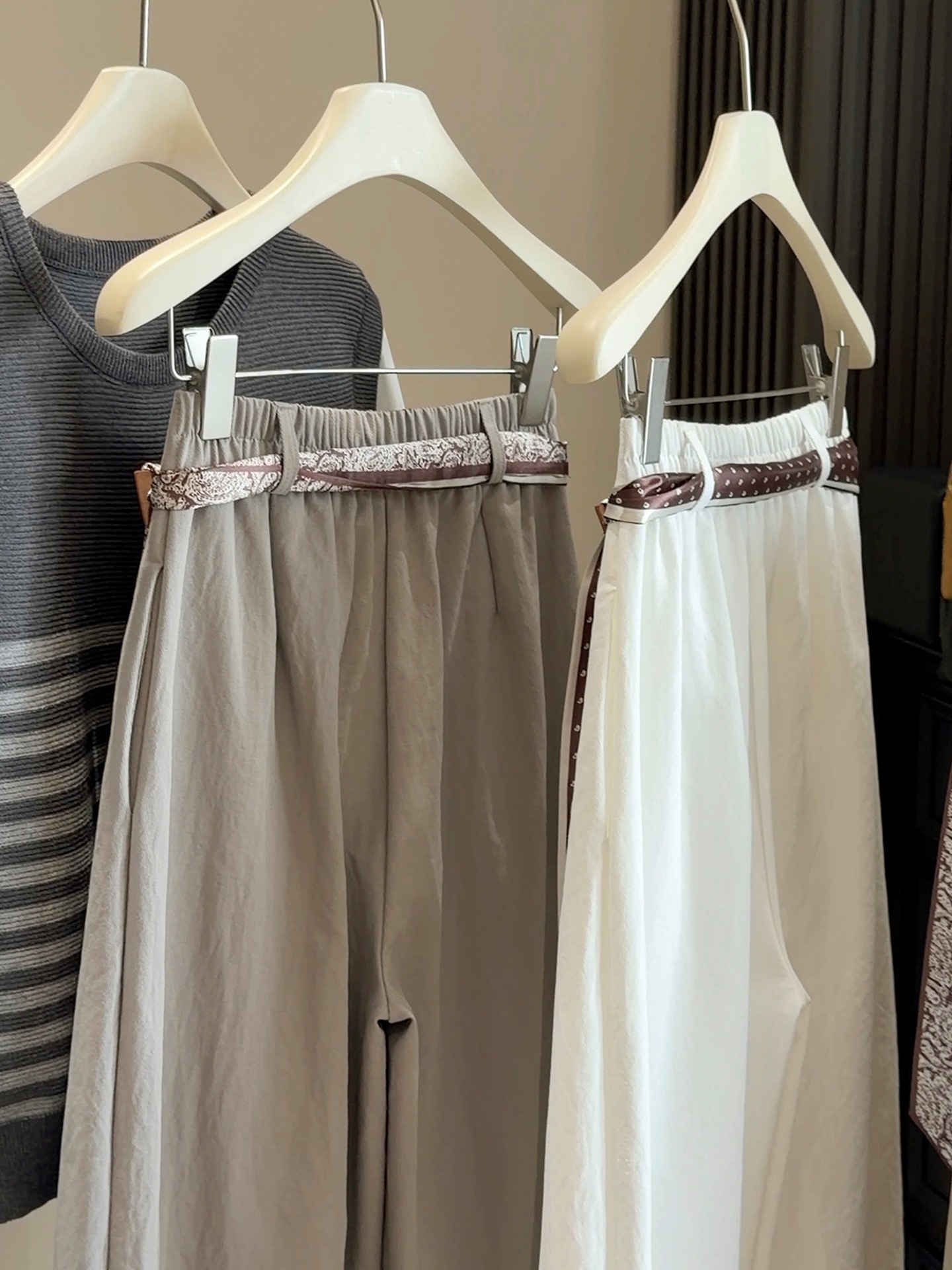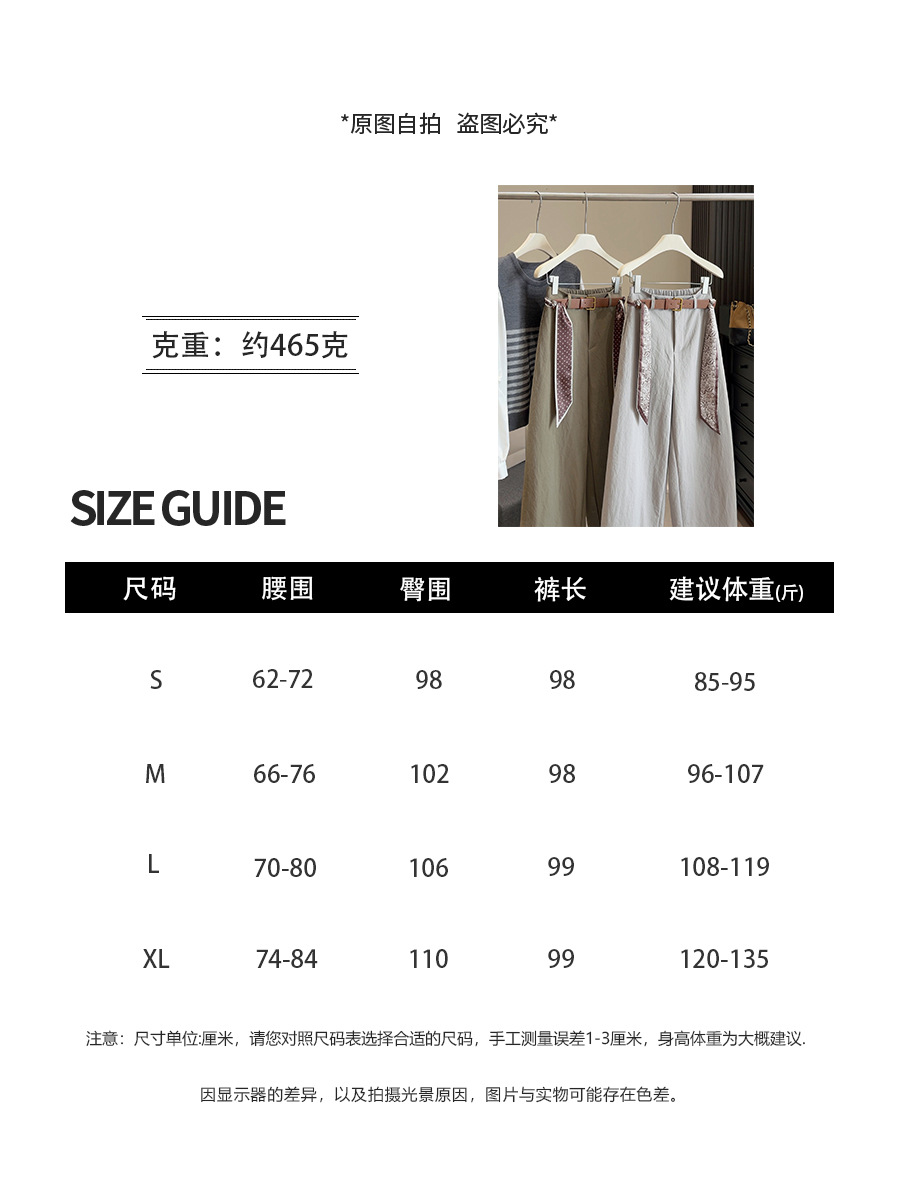 【太金棉休闲阔腿裤】春韩版设计感丝巾系带 高腰百搭直筒裤潮