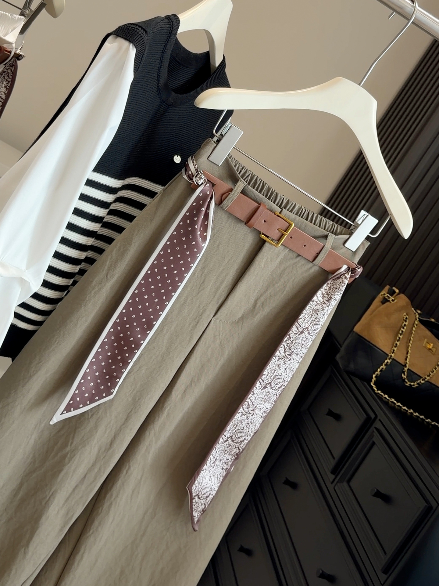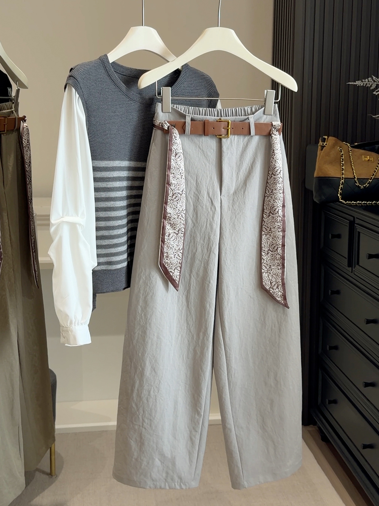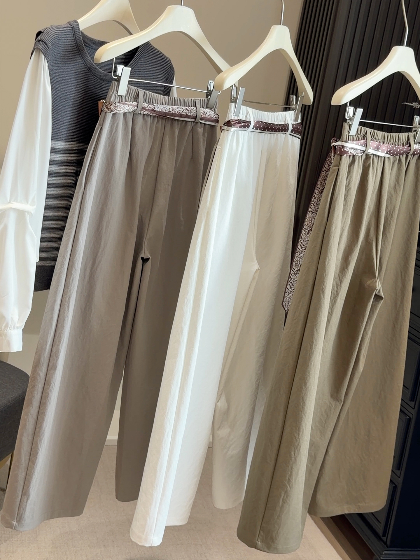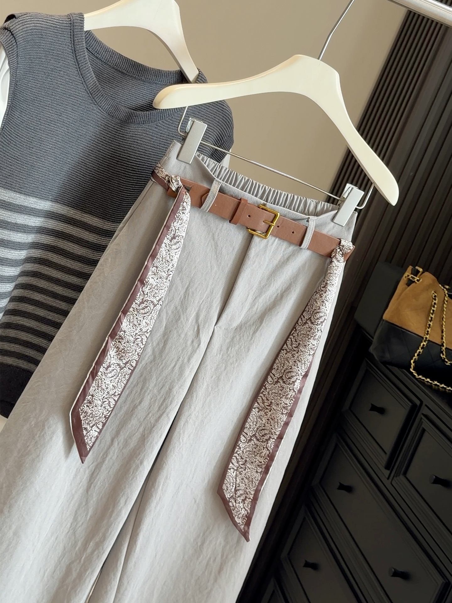 【太金棉休闲阔腿裤】春韩版设计感丝巾系带 高腰百搭直筒裤潮