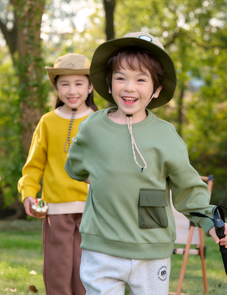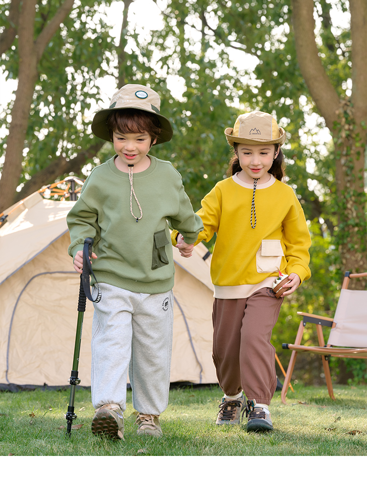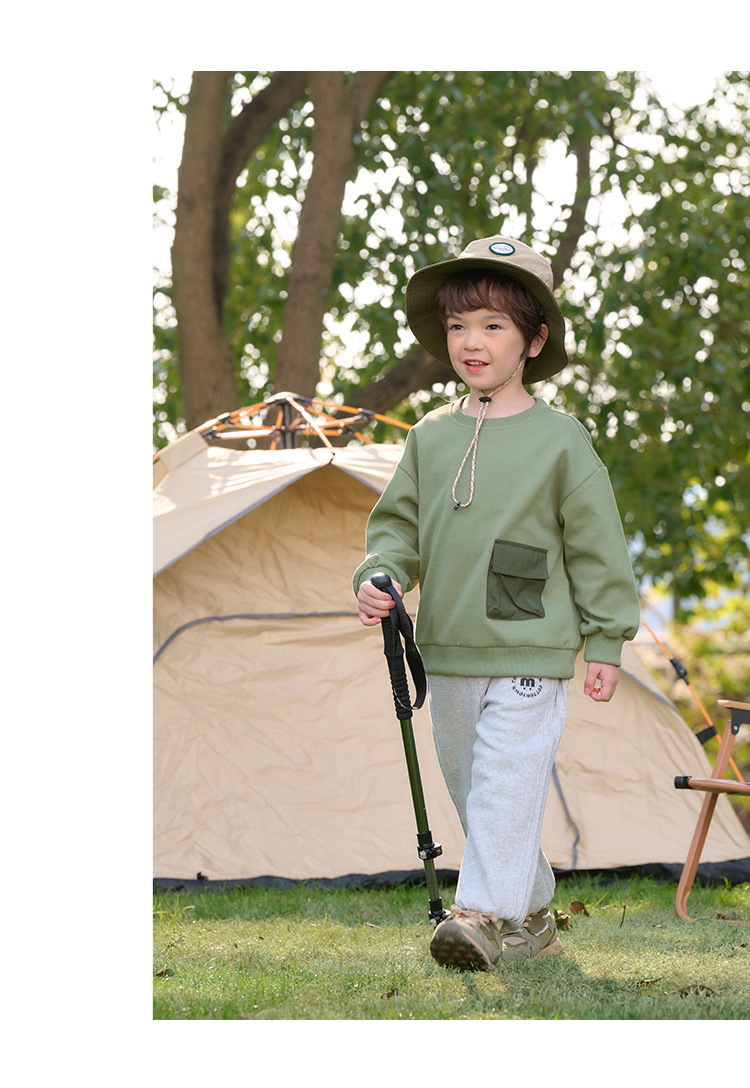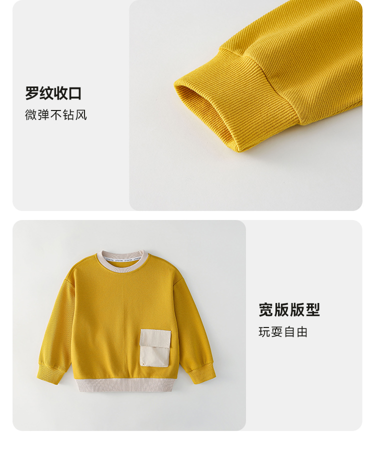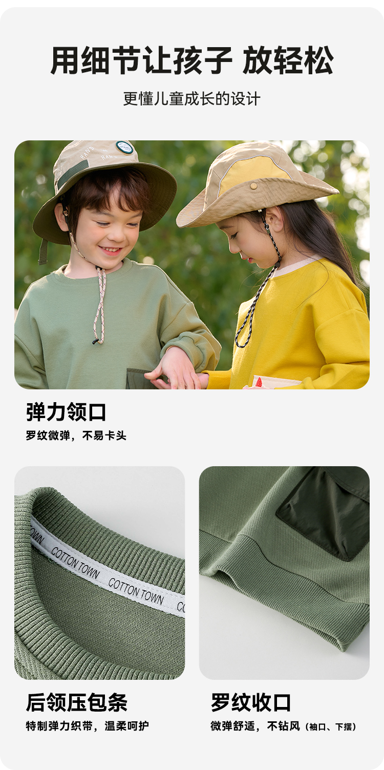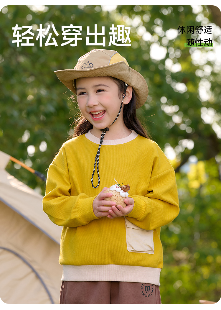 棉花堂2025年春款针织圆领贴袋童趣卫衣F251022