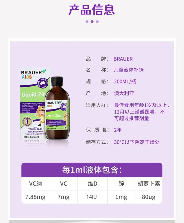 【保税】Brauer儿童液体锌口服液200ml/盒