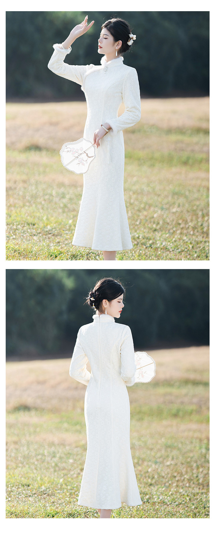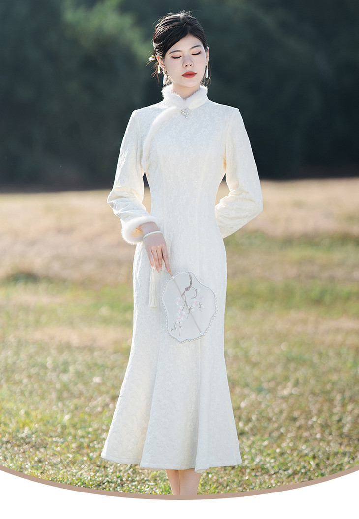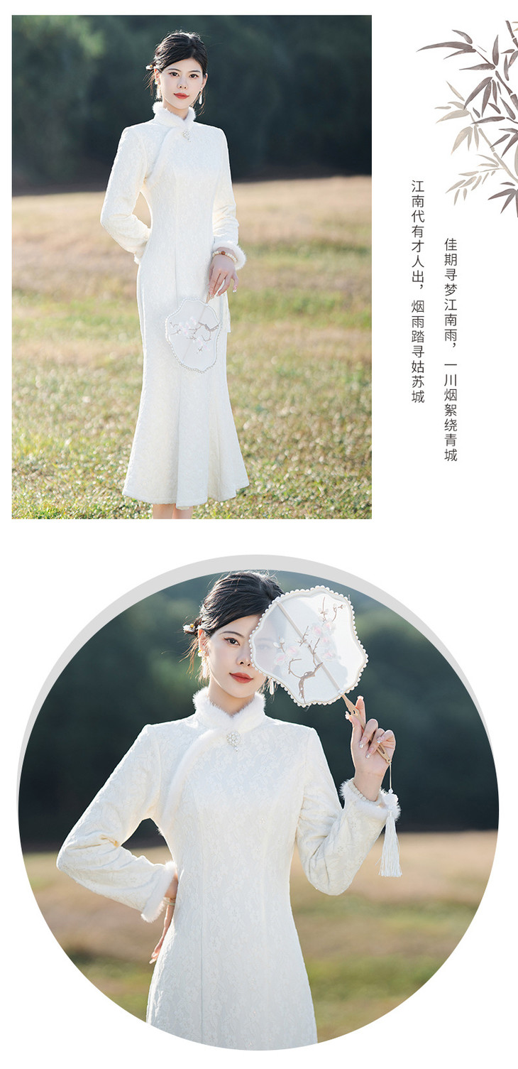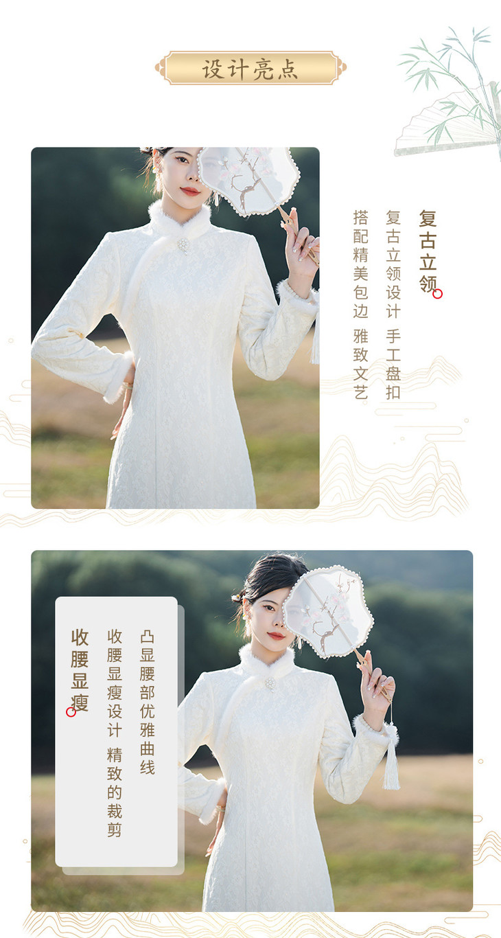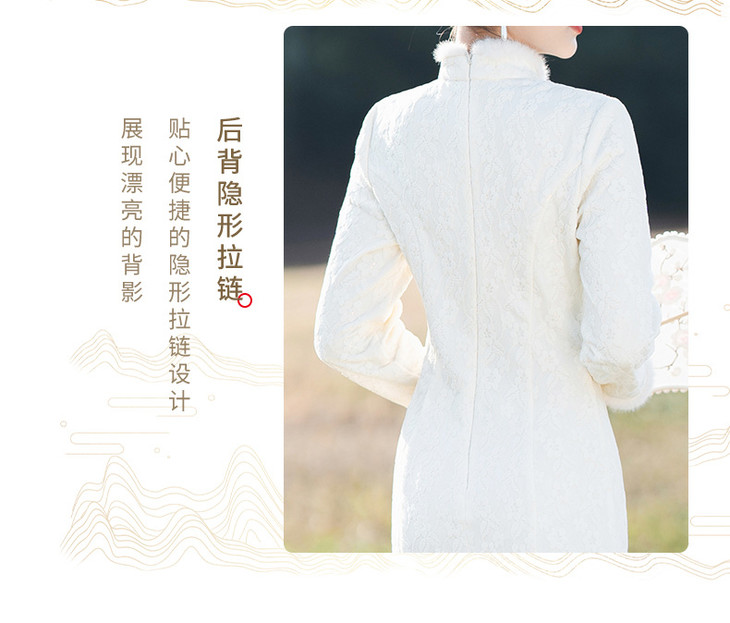 冬季加绒加厚保暖旗袍大摆裙,日常改良优雅大码修身显瘦减龄XS857