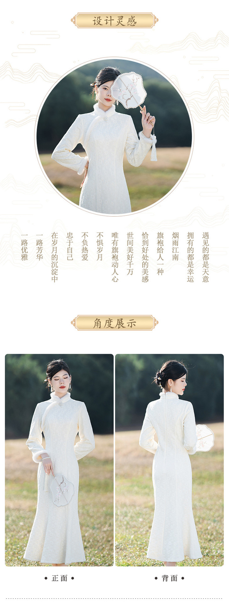 老上海复古改良新中式长款七分袖旗袍大摆裙2023冬新款旗袍GX-21804