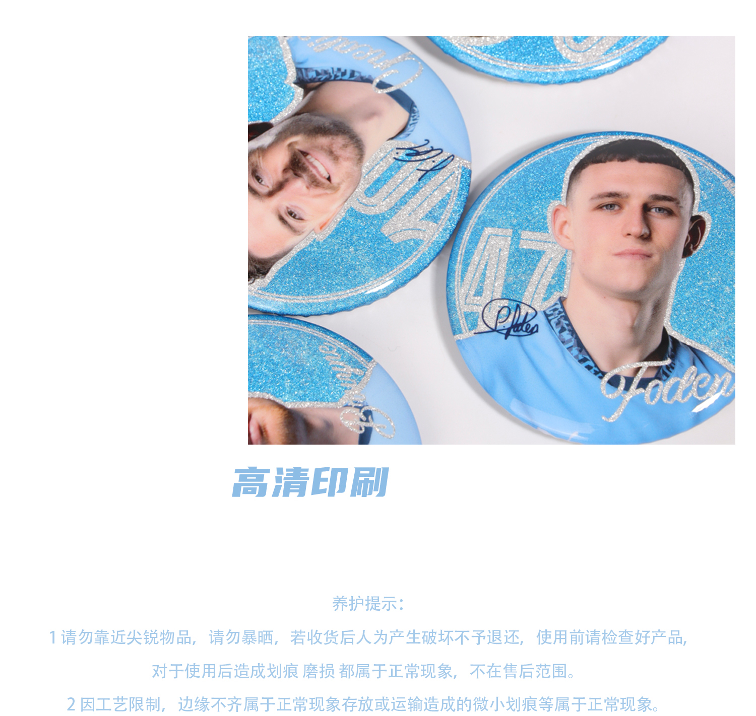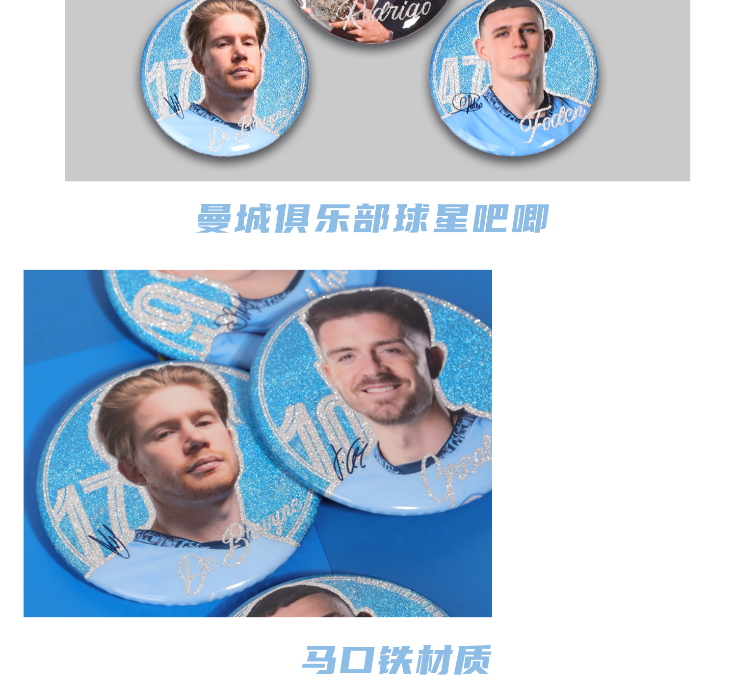 【官方正版】曼城俱乐部 | 球星吧唧加厚马口铁徽章纪念礼物