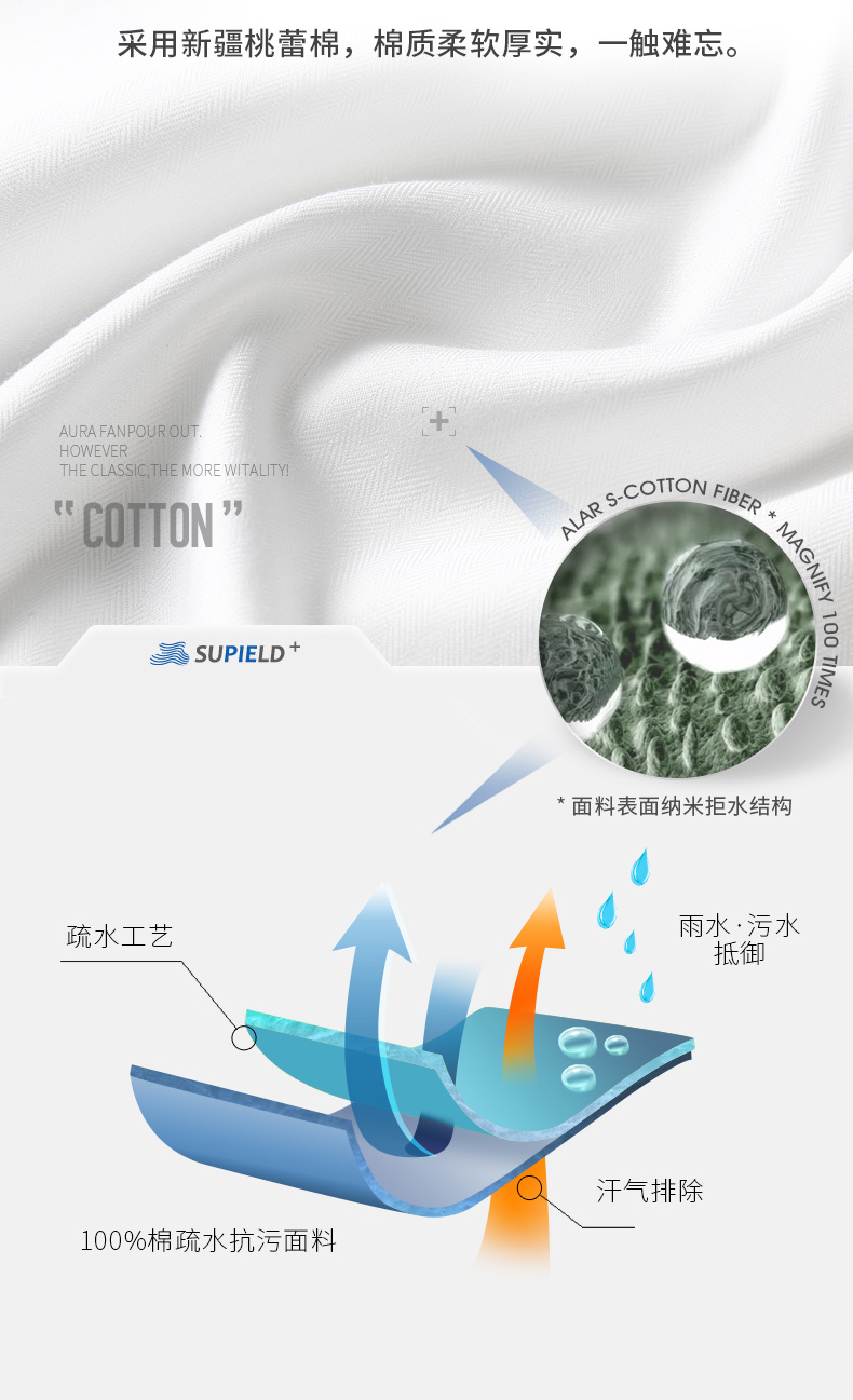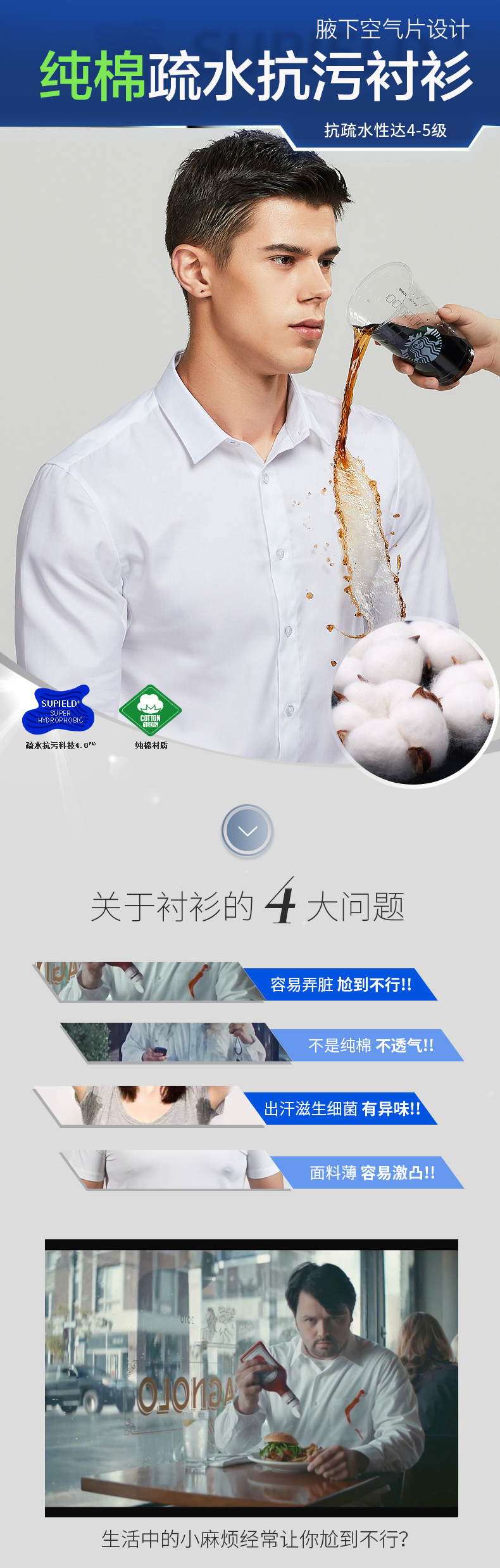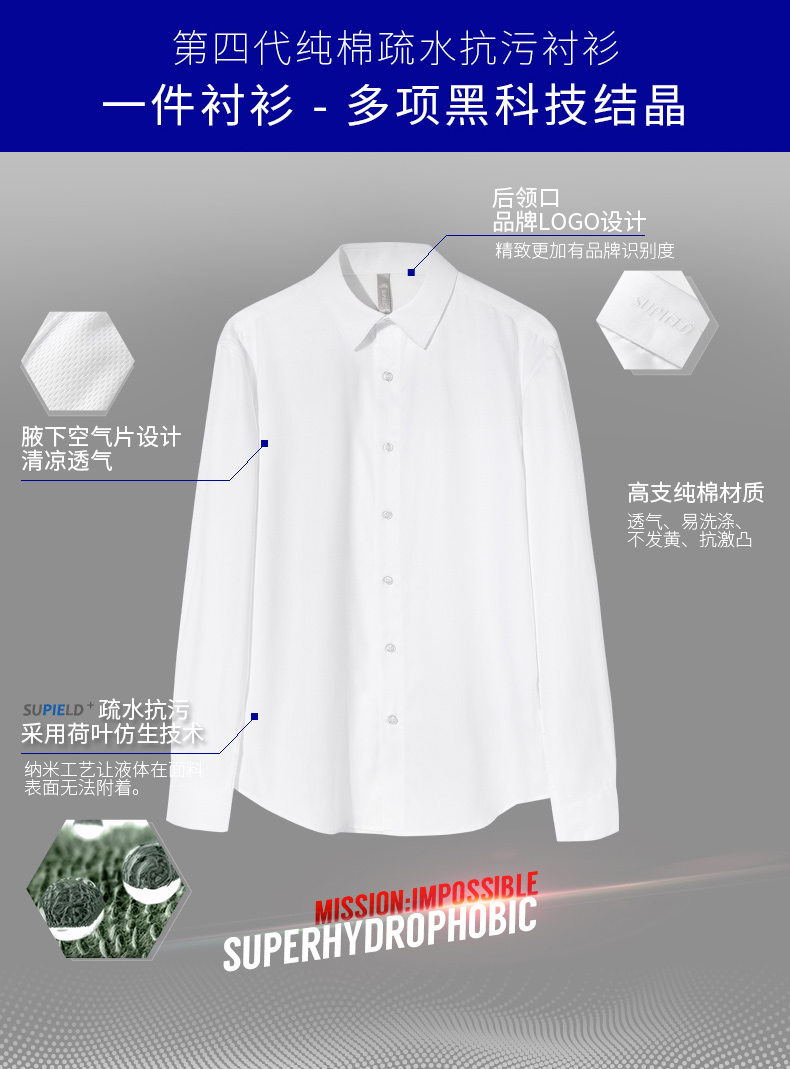 Supield素湃黑科技纯棉疏水男士长袖衬衫韩版潮流帅气白衬衫男