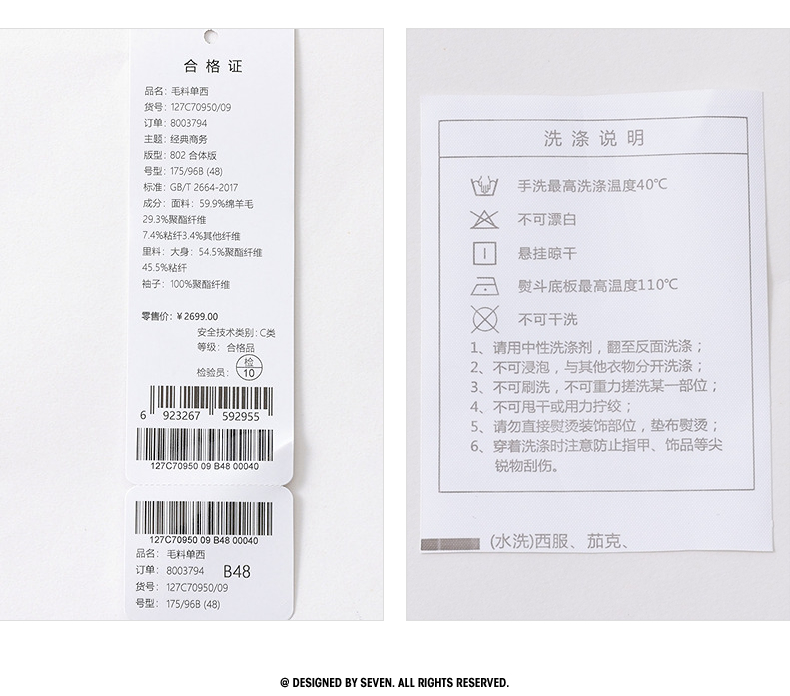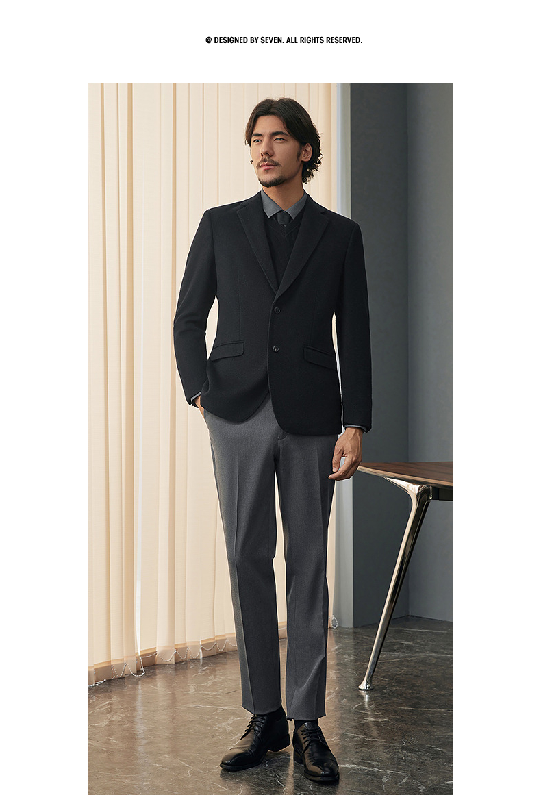 【毛料单西】柒牌西服男2024秋冬新款商务正装含羊毛男士西装外套 127C70950