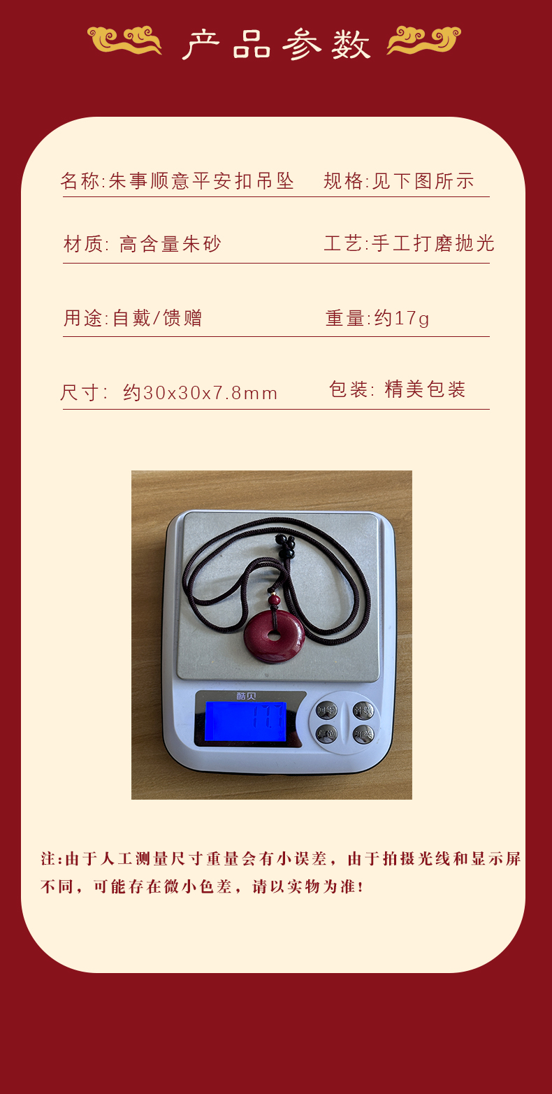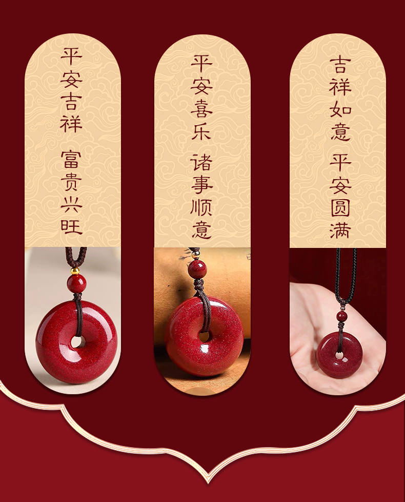 高含量天然朱砂平安扣吊坠护身符父亲节礼物母亲节礼物紫金砂项链男女挂件情侣礼物过生日情人节异地恋七夕